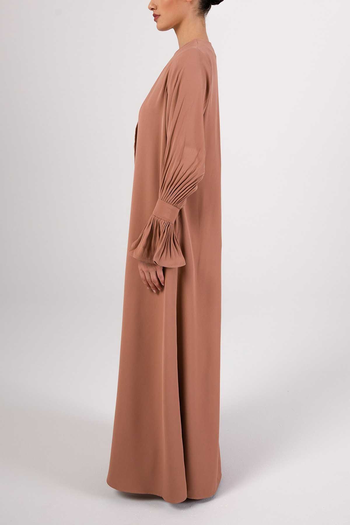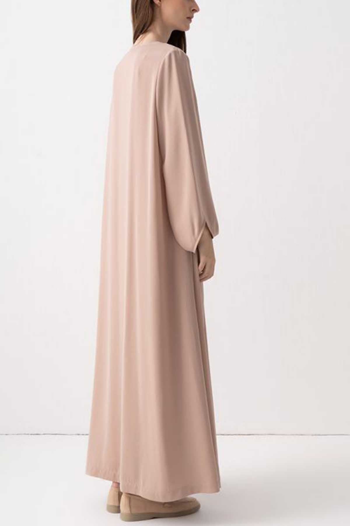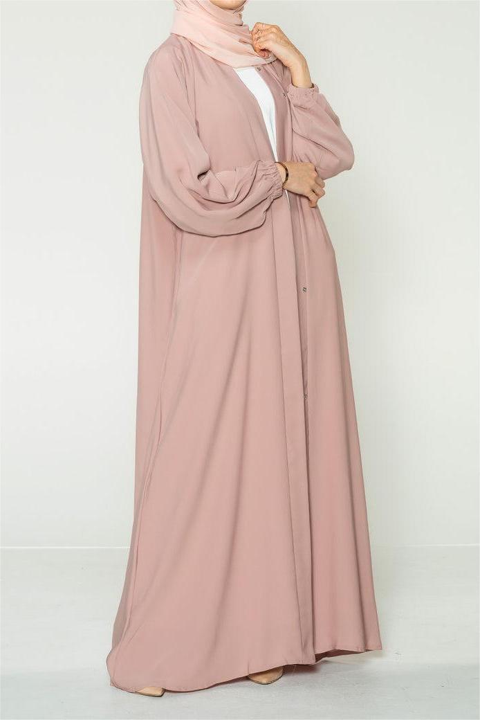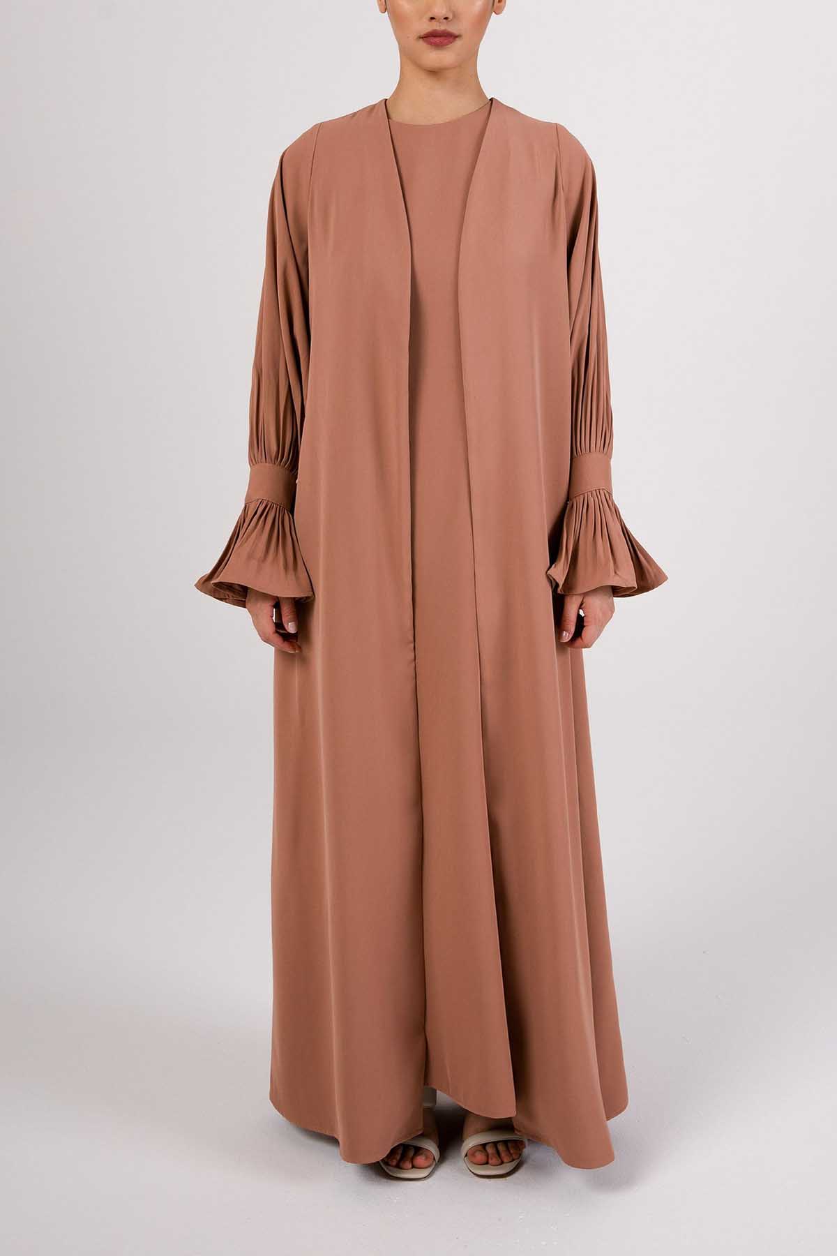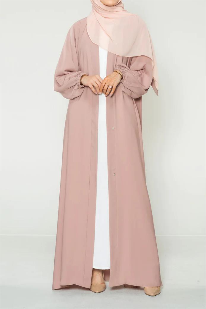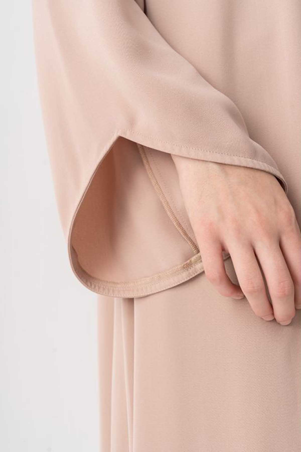 Nude Plain Open Abaya With Elasticated Cuff Sleeves (Premium)