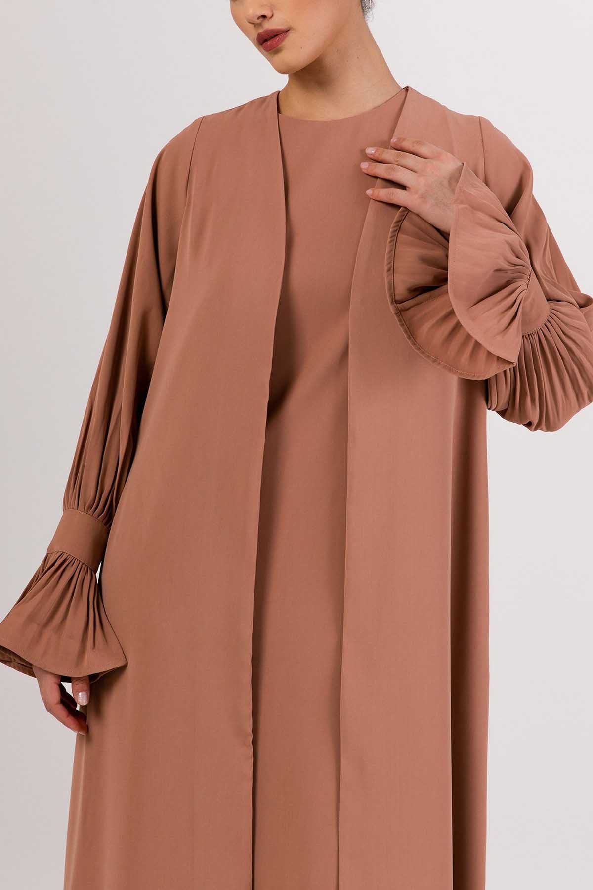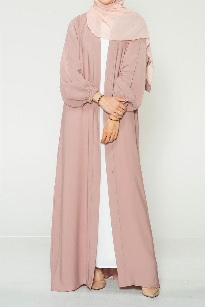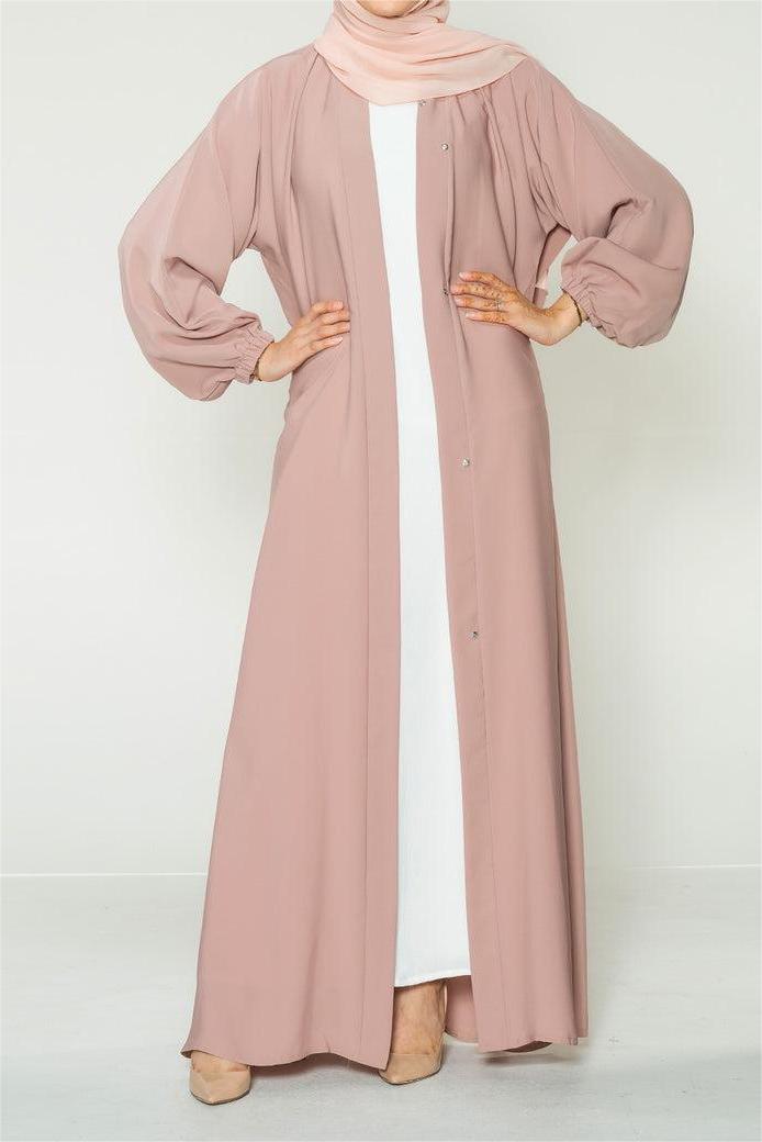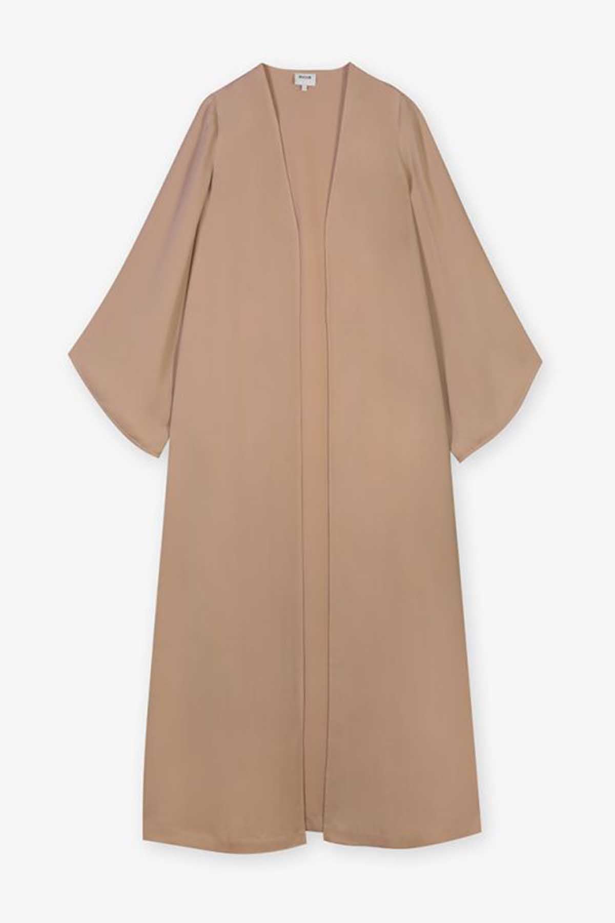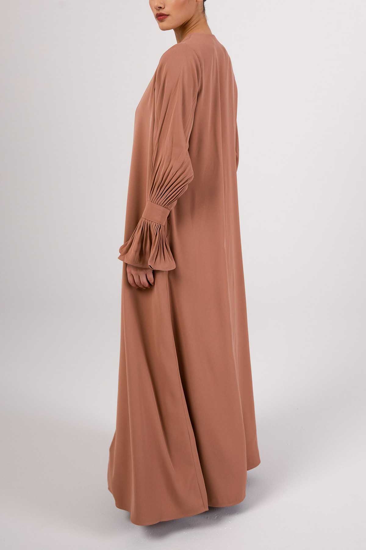 Nude Plain Open Abaya With Elasticated Cuff Sleeves (Premium)