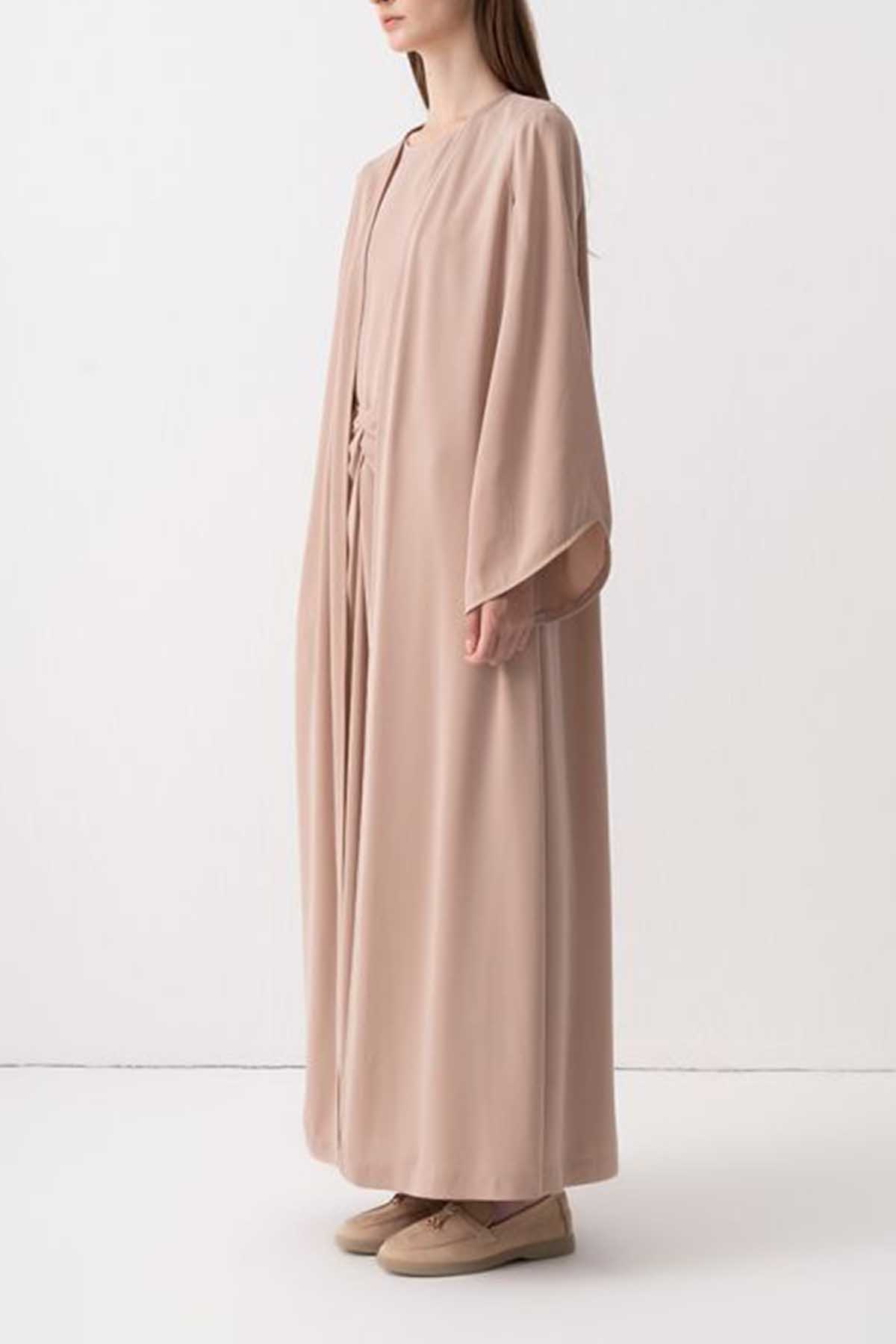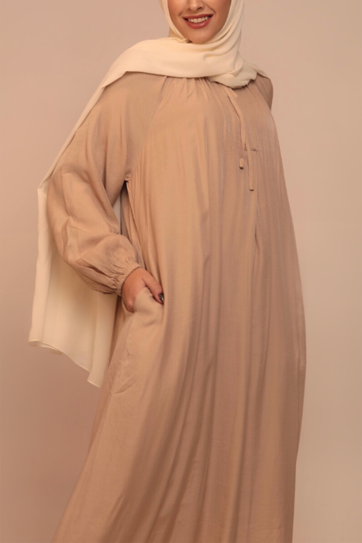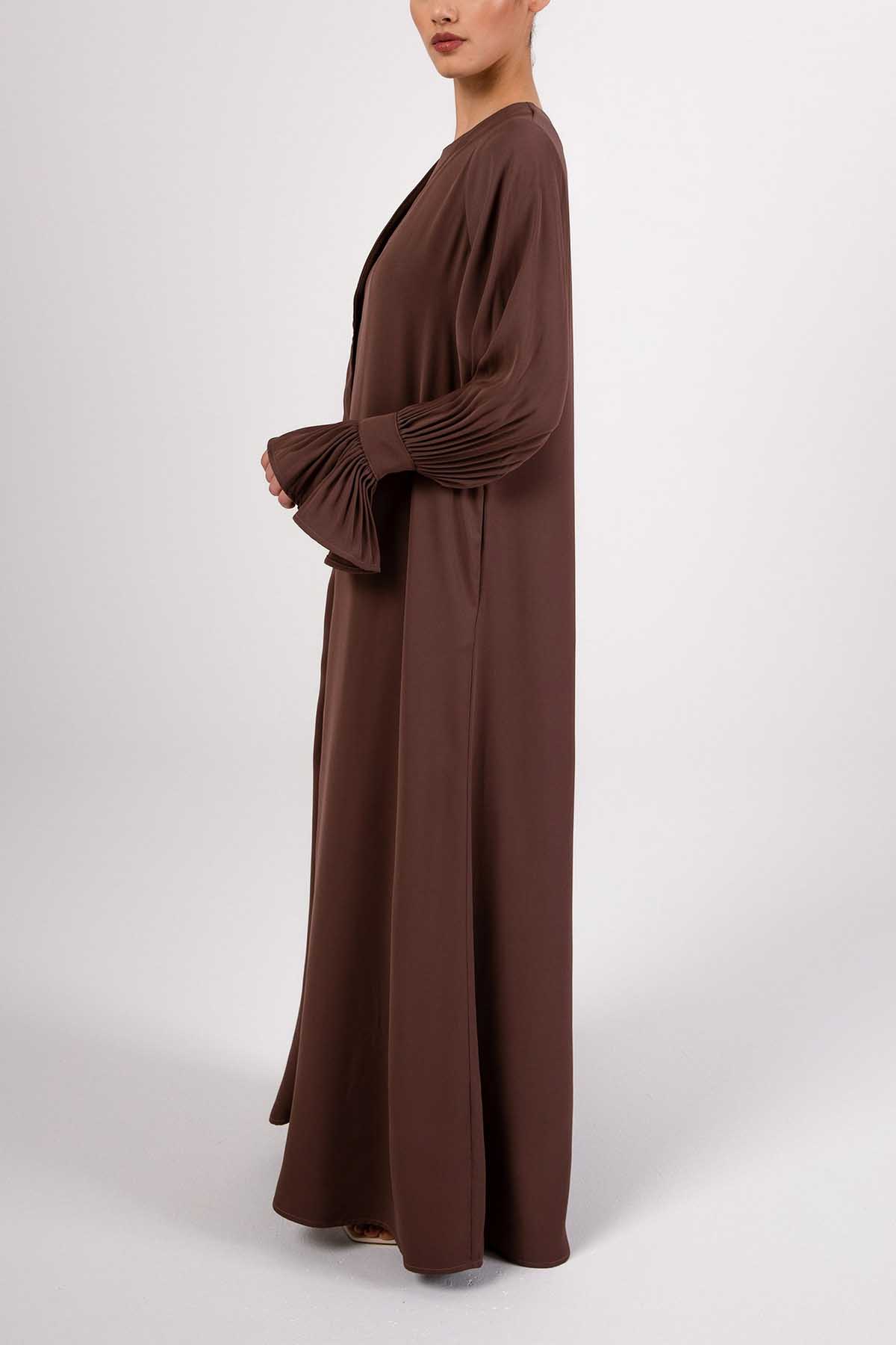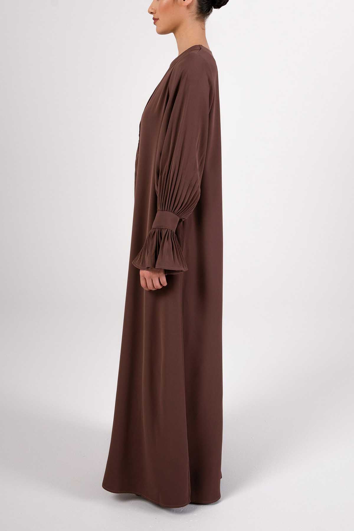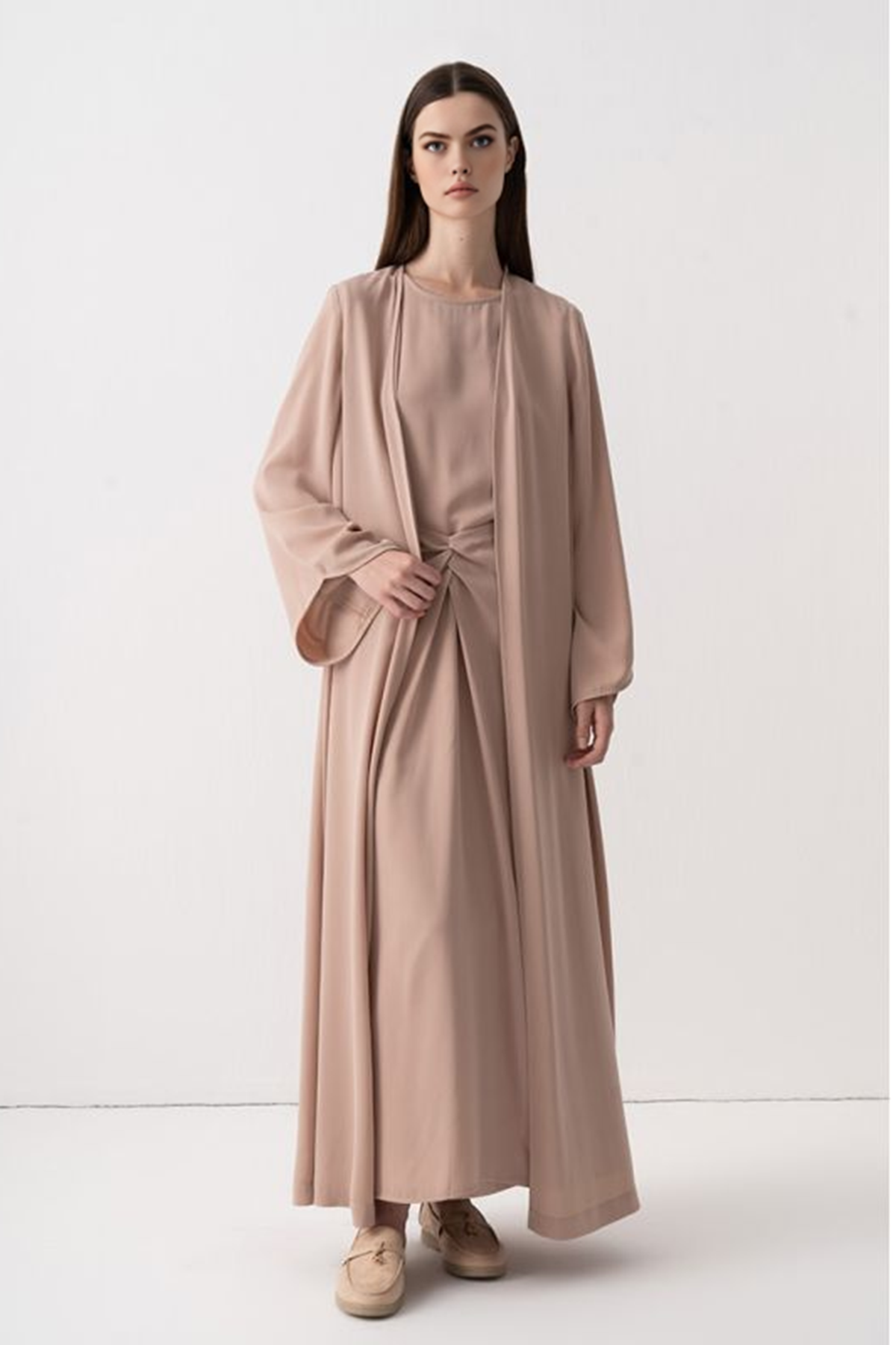 Nude Plain Open Abaya With Elasticated Cuff Sleeves (Premium)