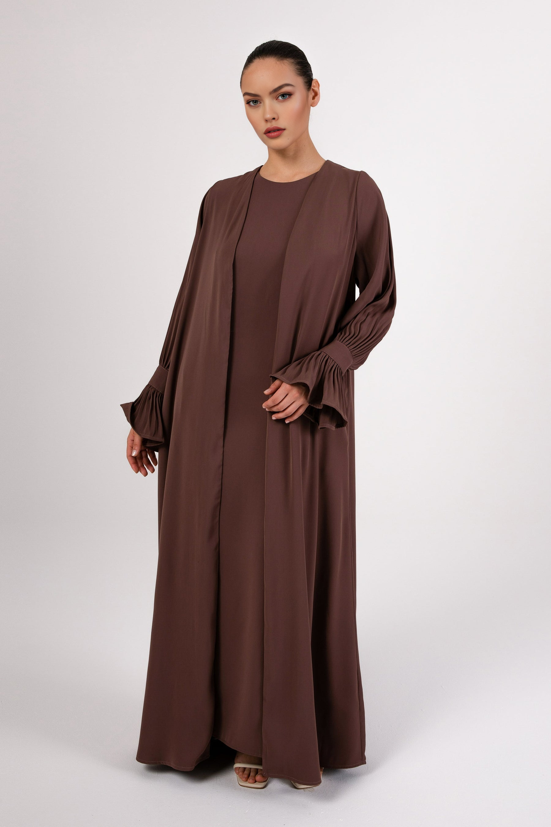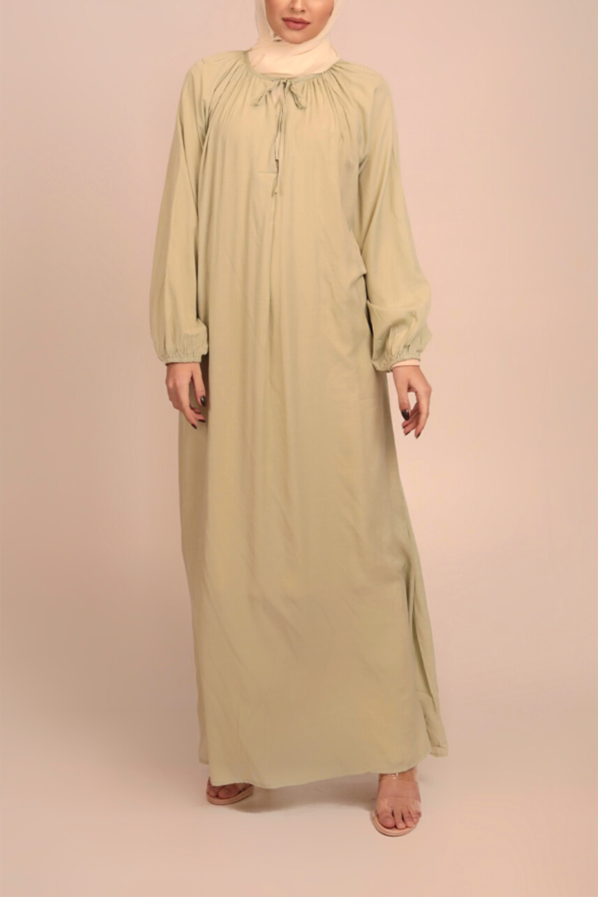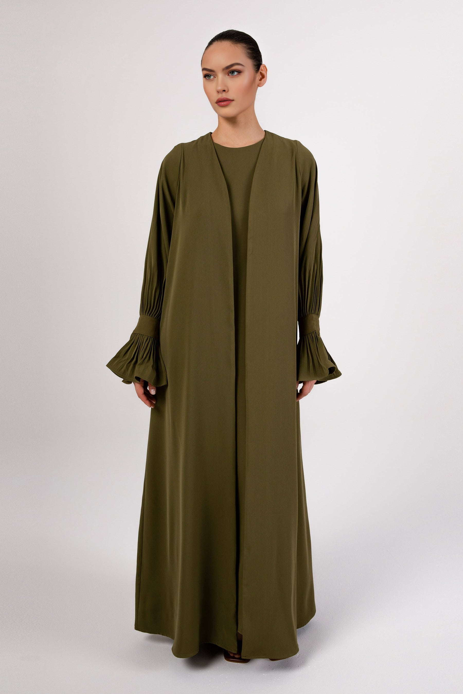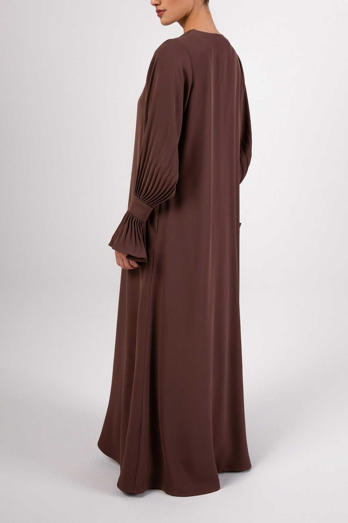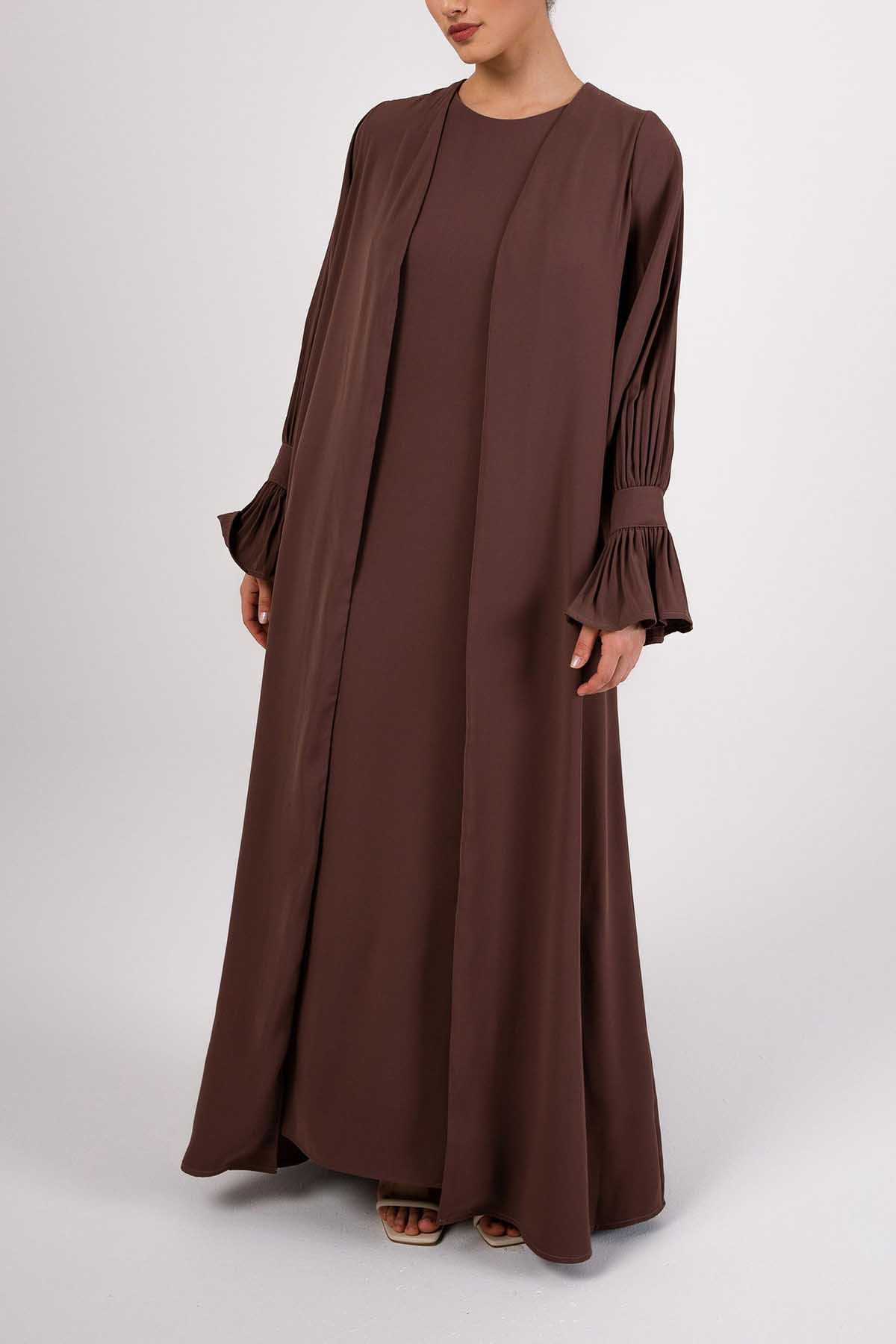 Nude Plain Open Abaya With Elasticated Cuff Sleeves (Premium)