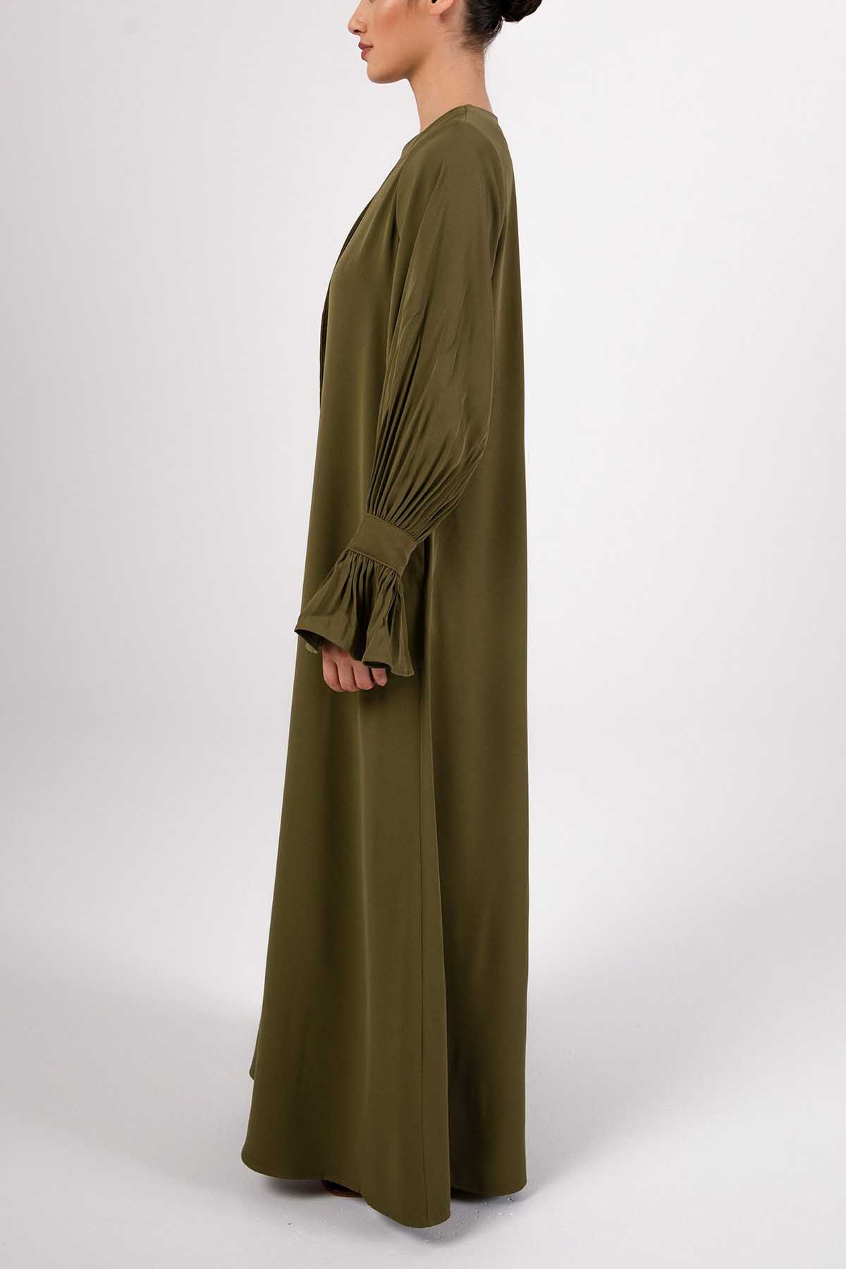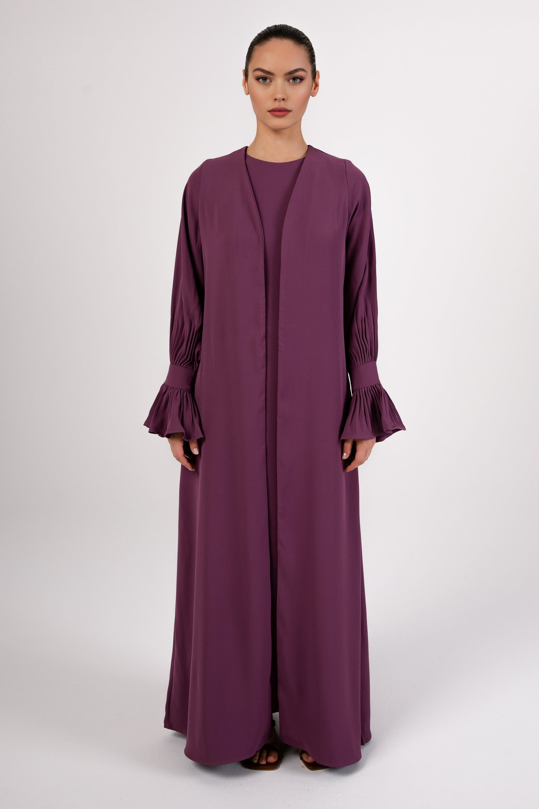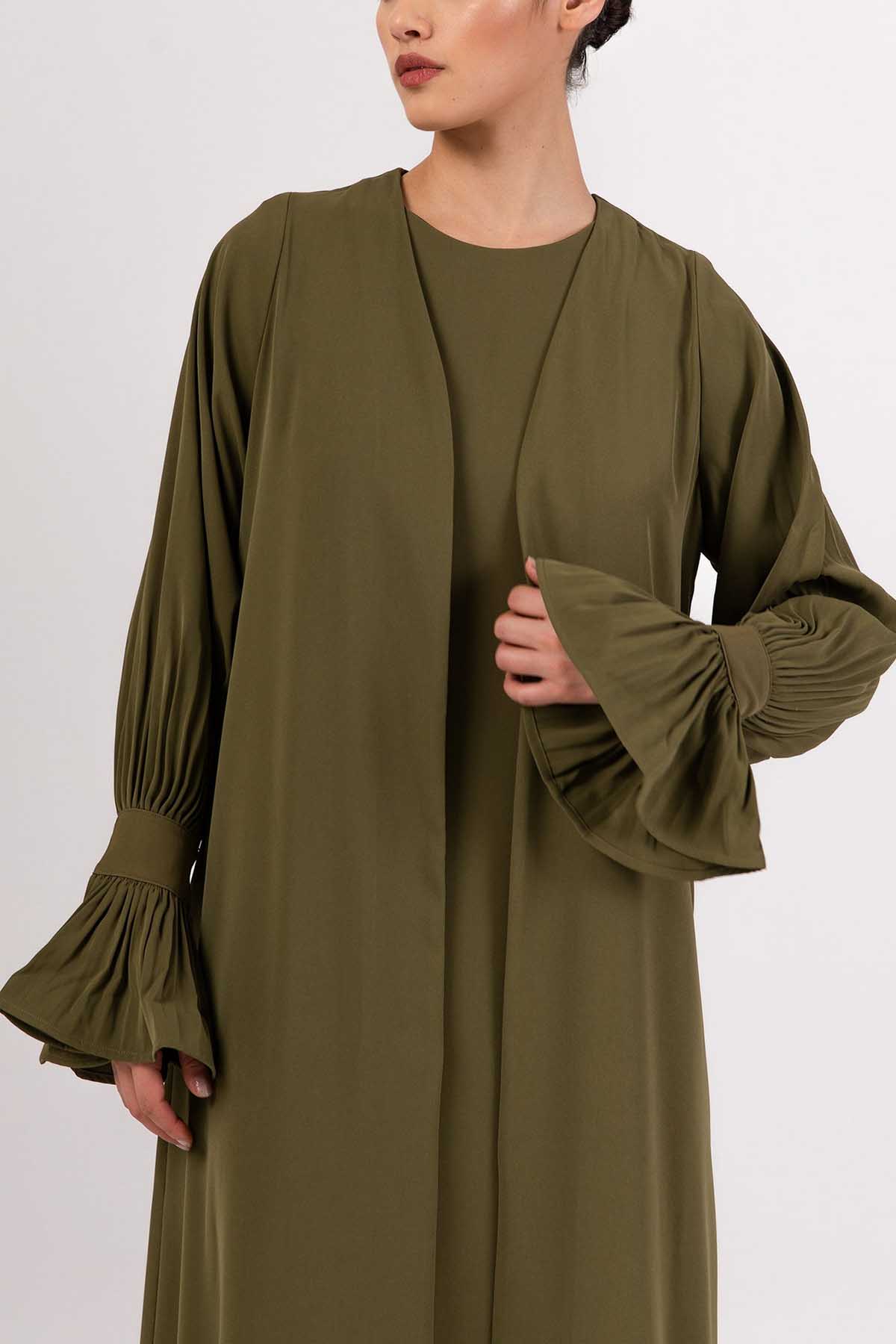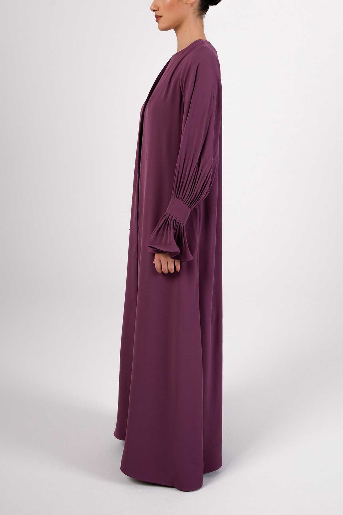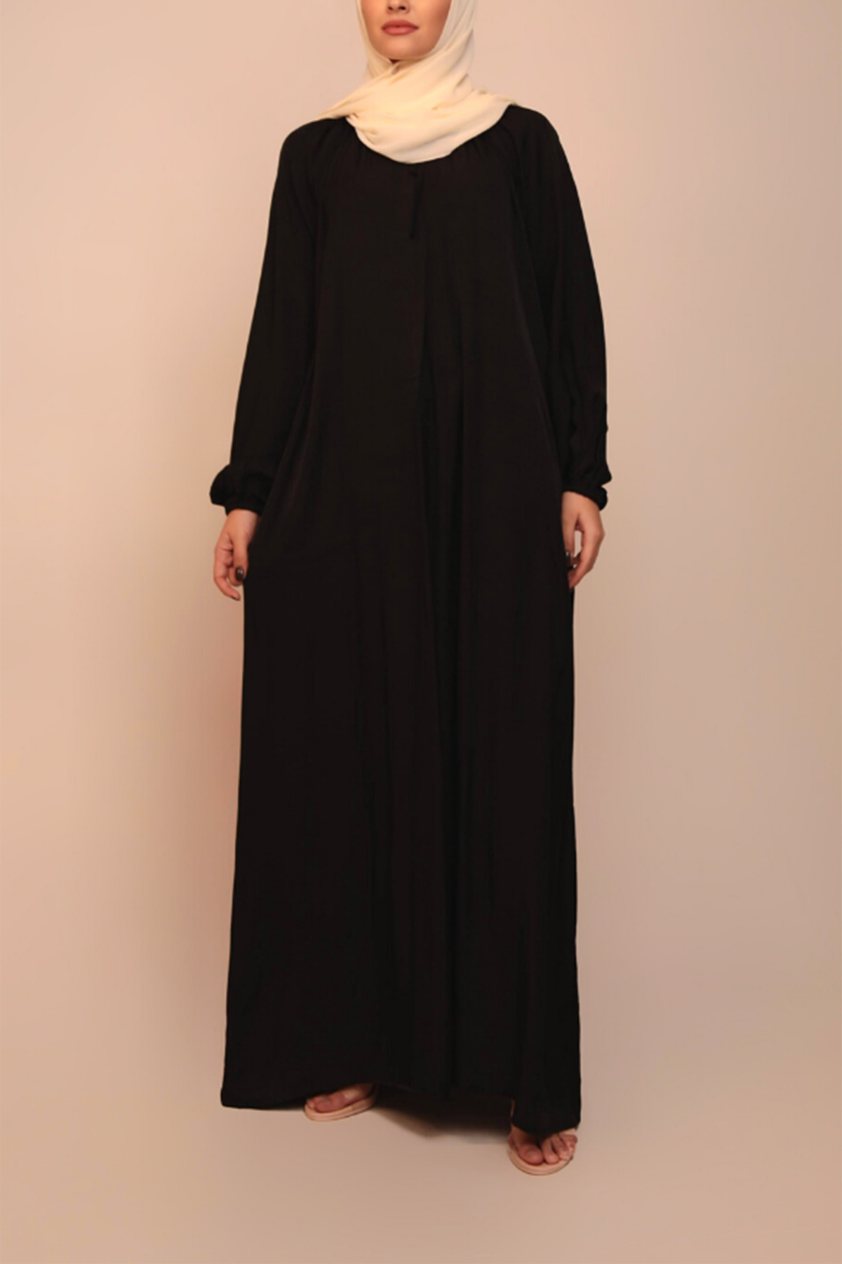 Nude Plain Open Abaya With Elasticated Cuff Sleeves (Premium)
