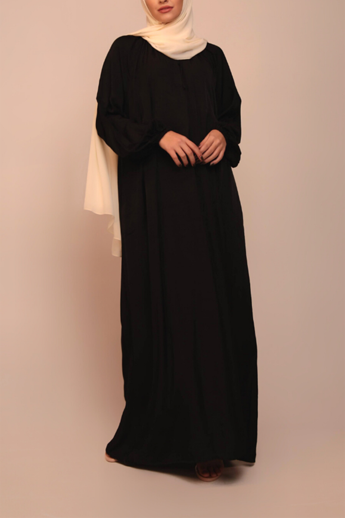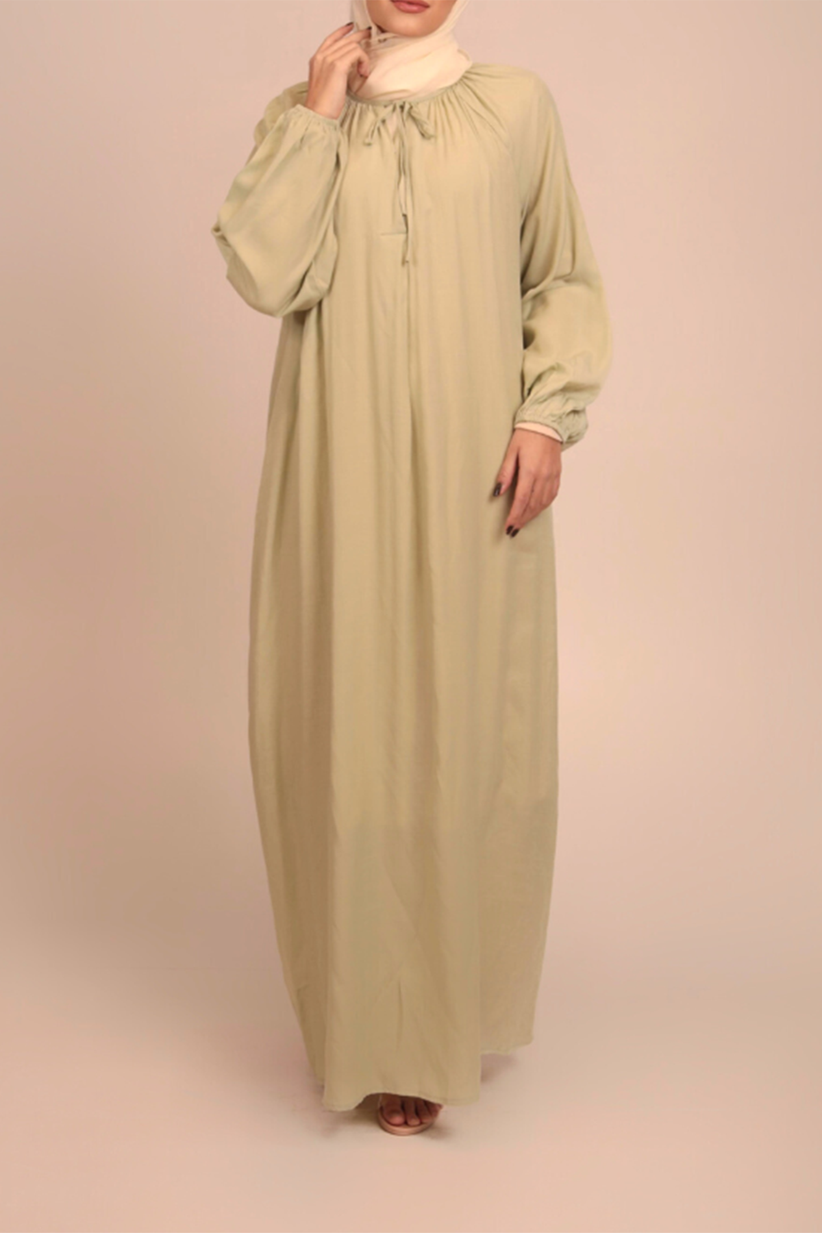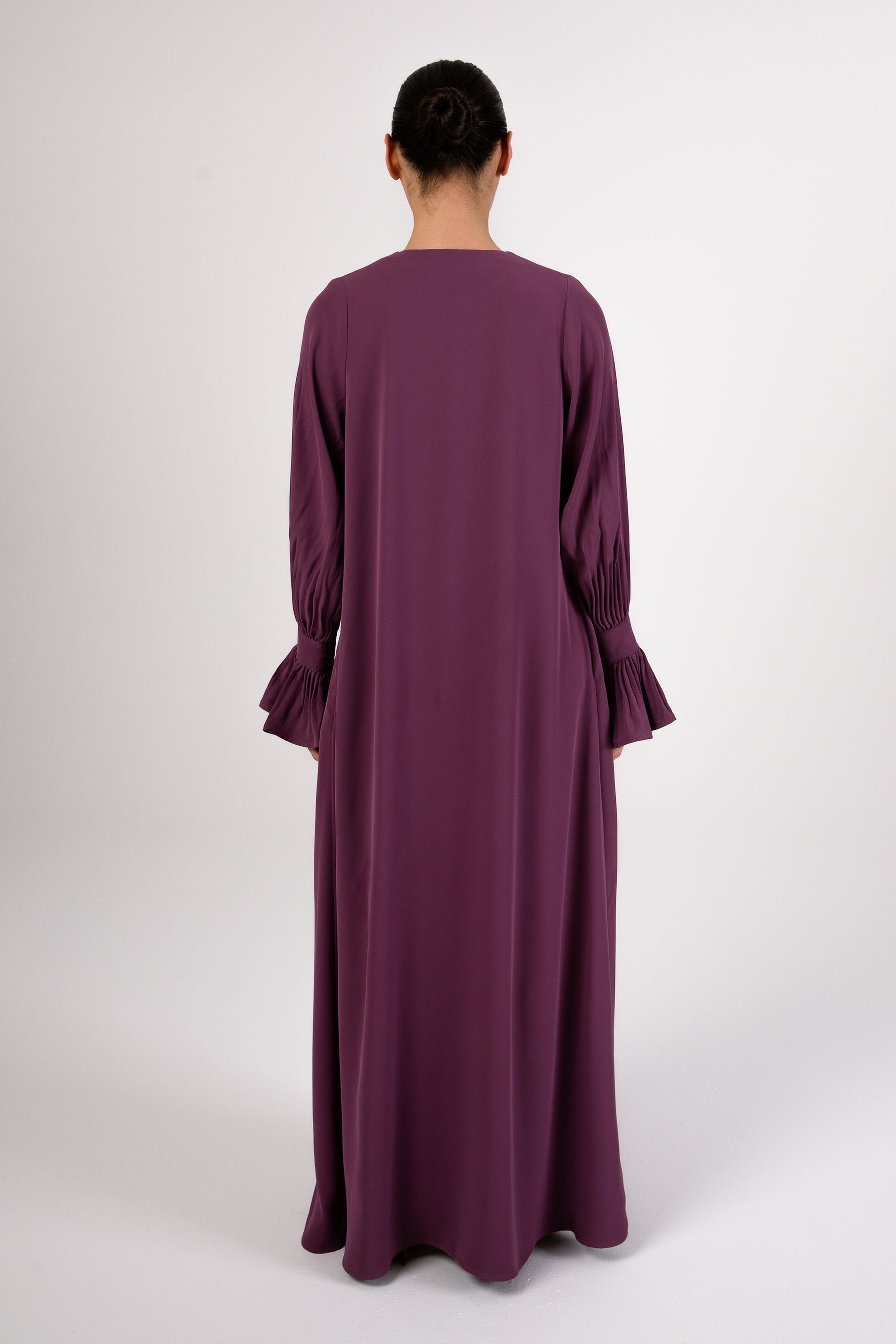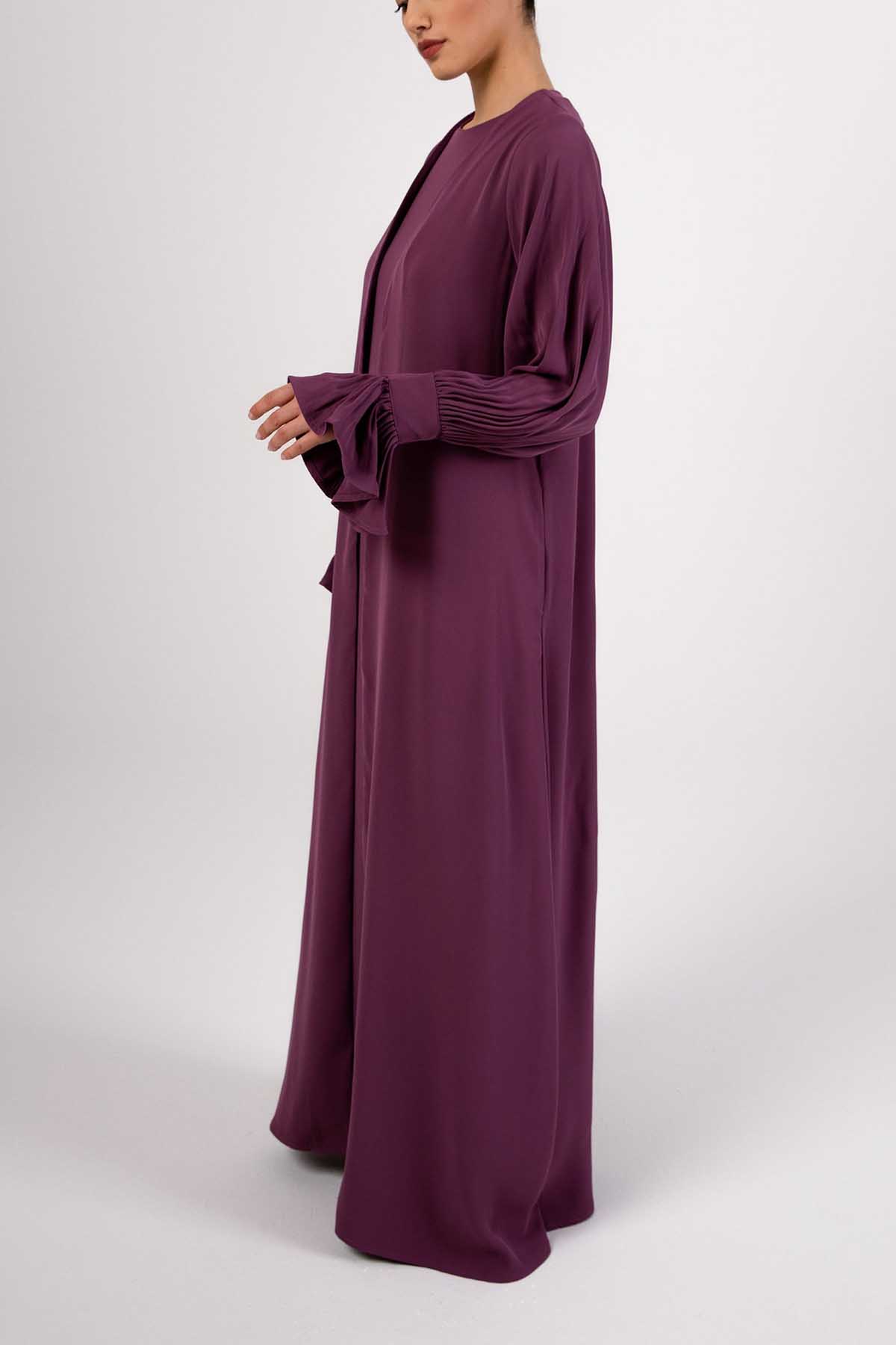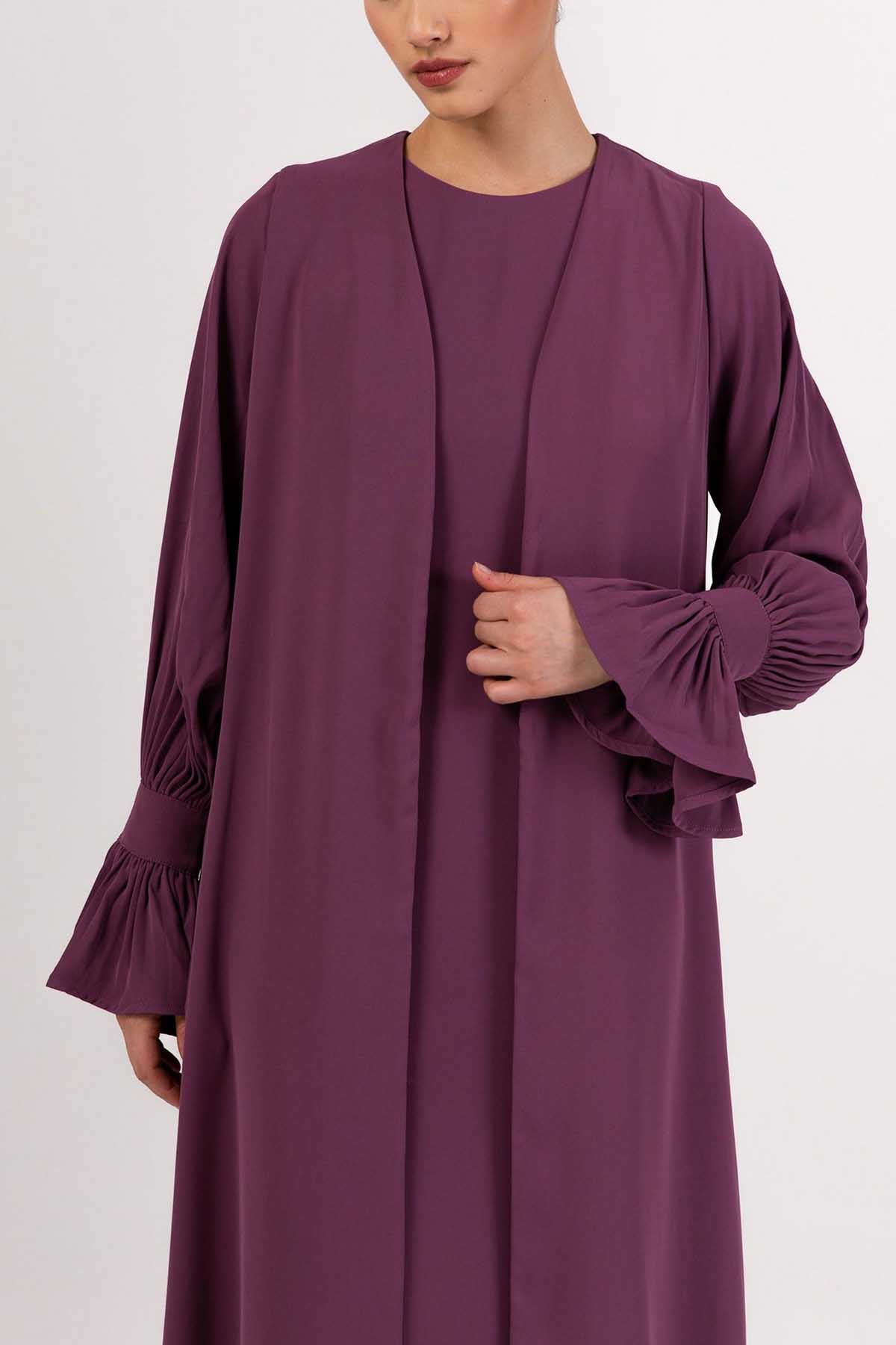 Nude Plain Open Abaya With Elasticated Cuff Sleeves (Premium)