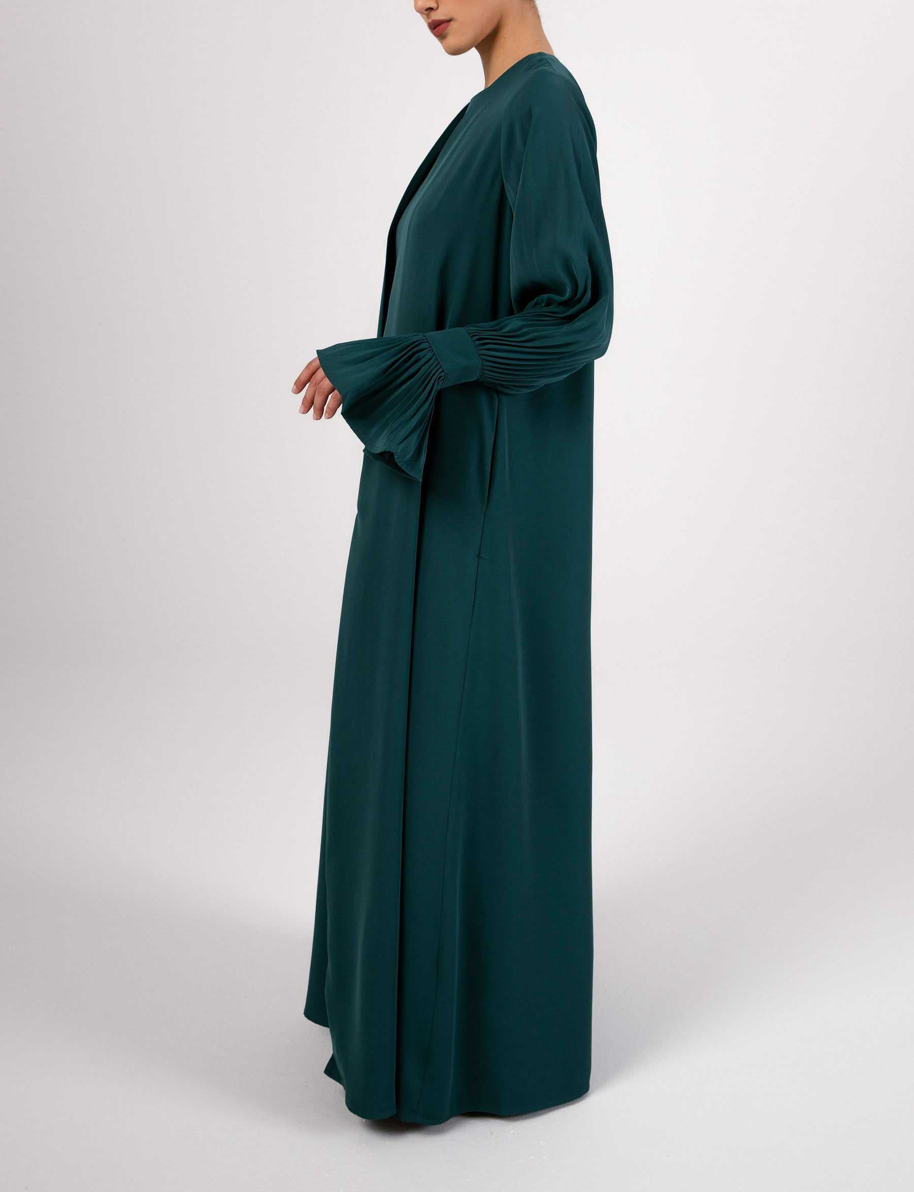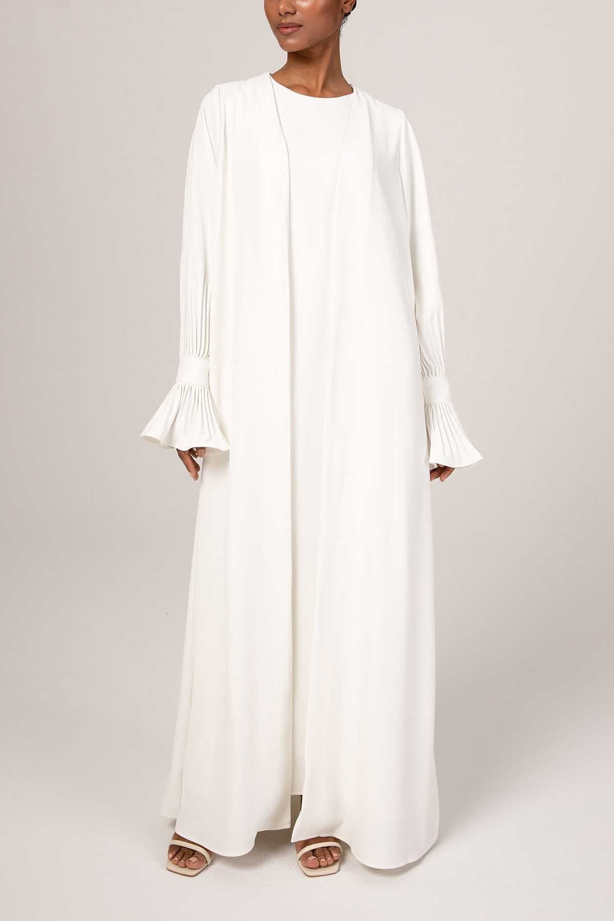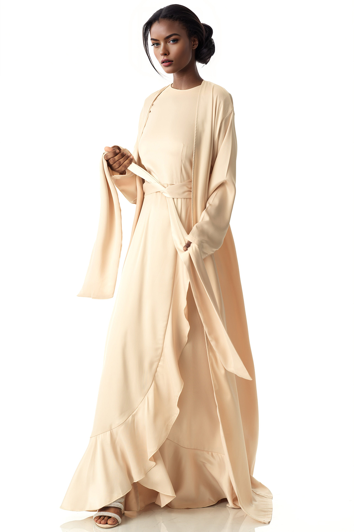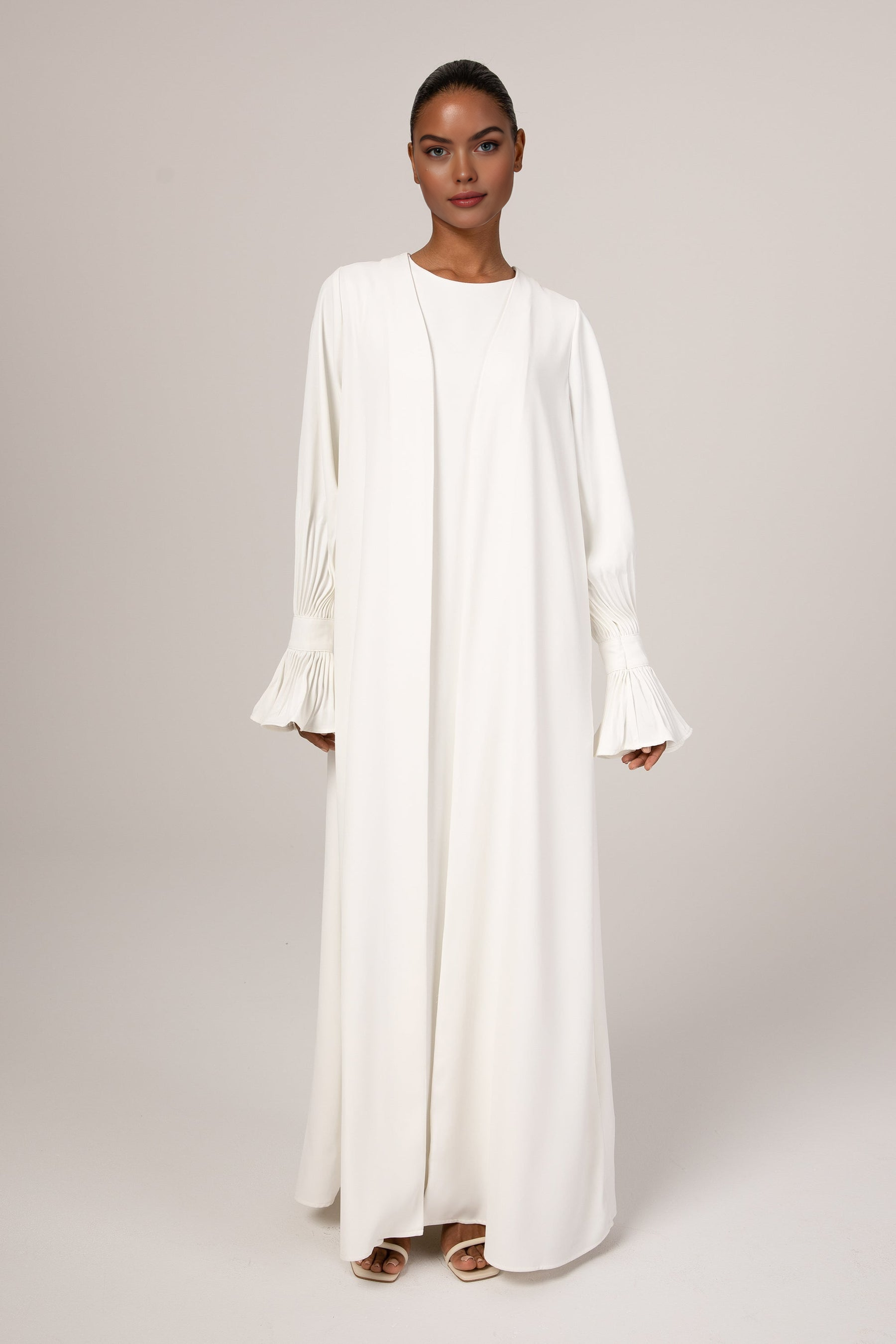 Nude Plain Open Abaya With Elasticated Cuff Sleeves (Premium)