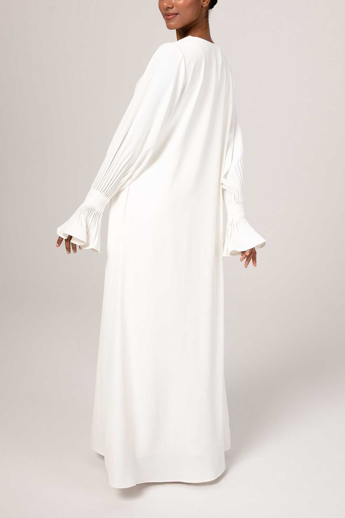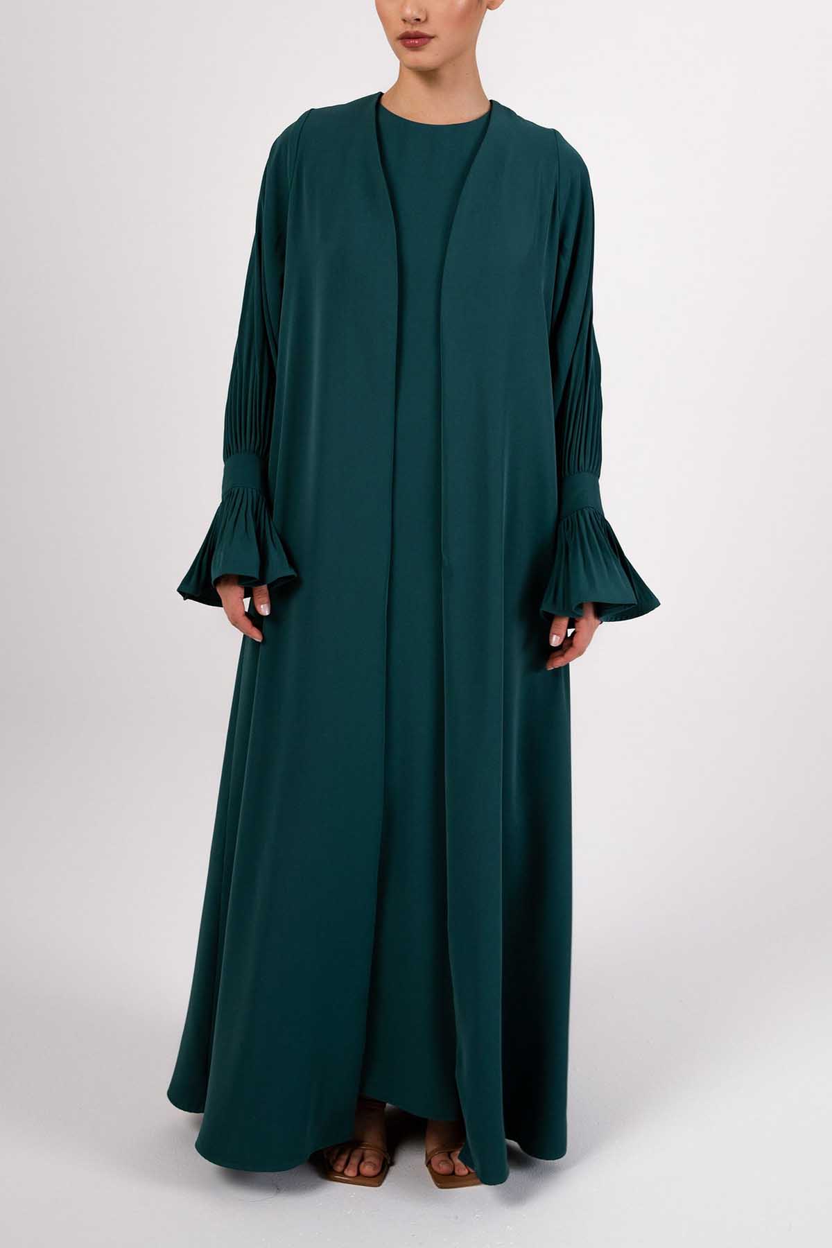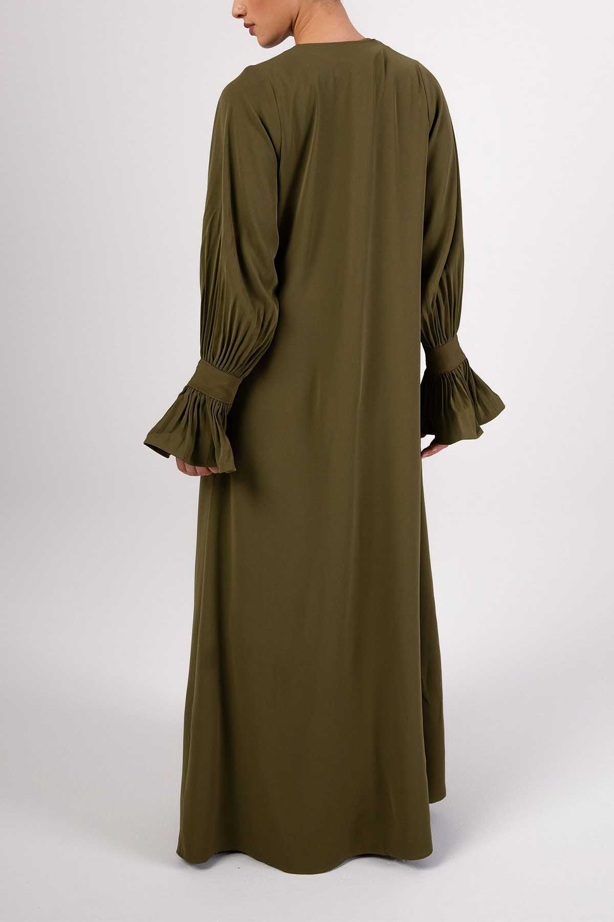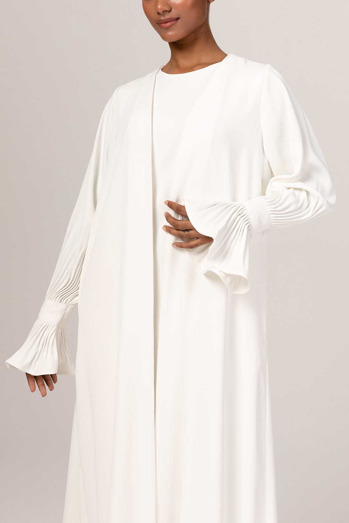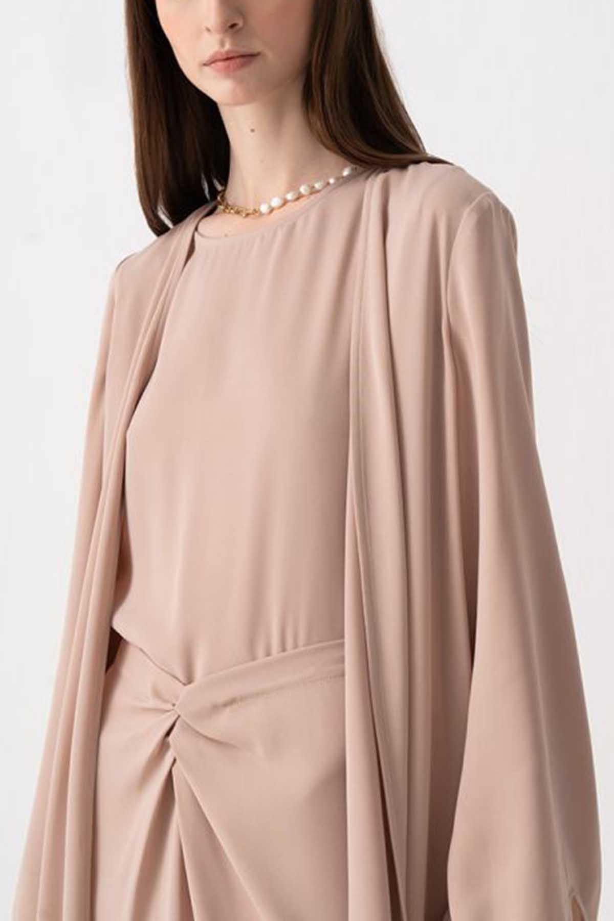 Nude Plain Open Abaya With Elasticated Cuff Sleeves (Premium)