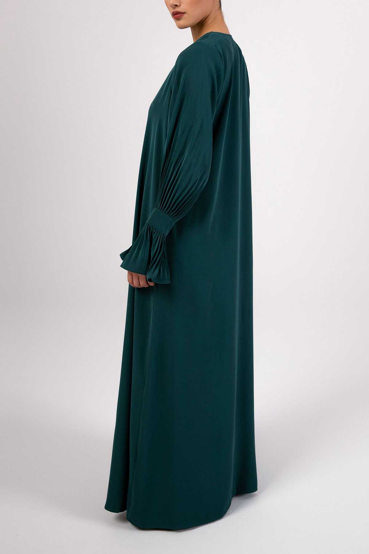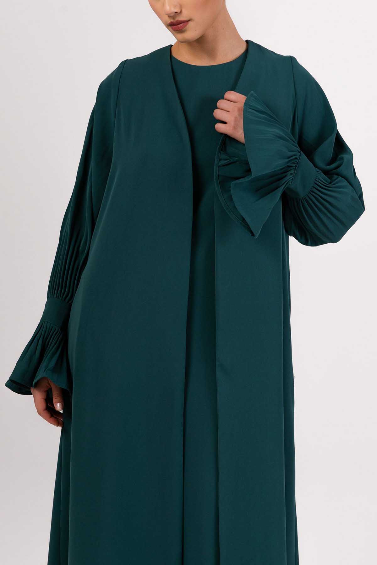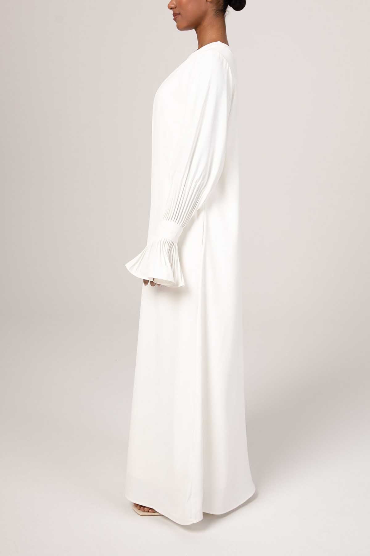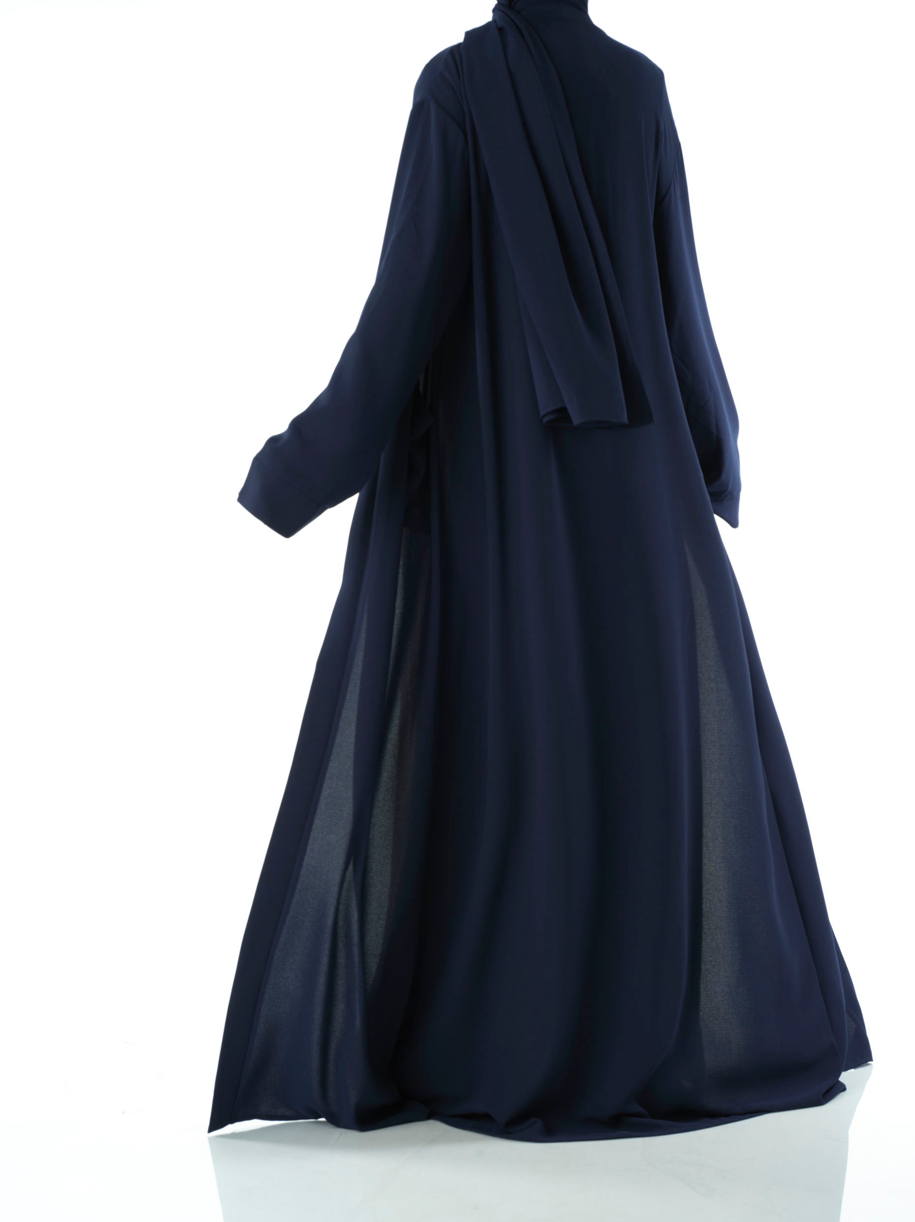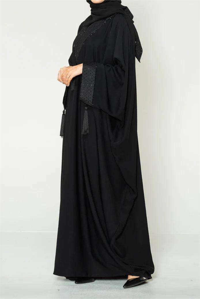 Nude Plain Open Abaya With Elasticated Cuff Sleeves (Premium)