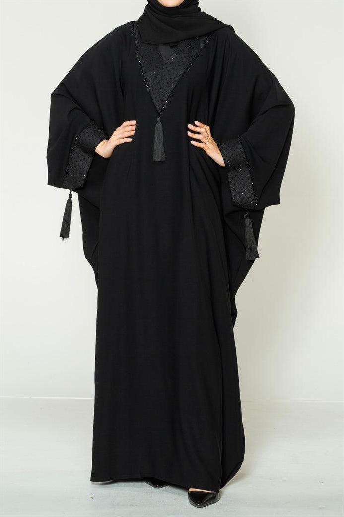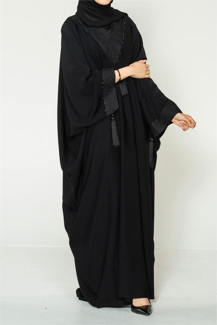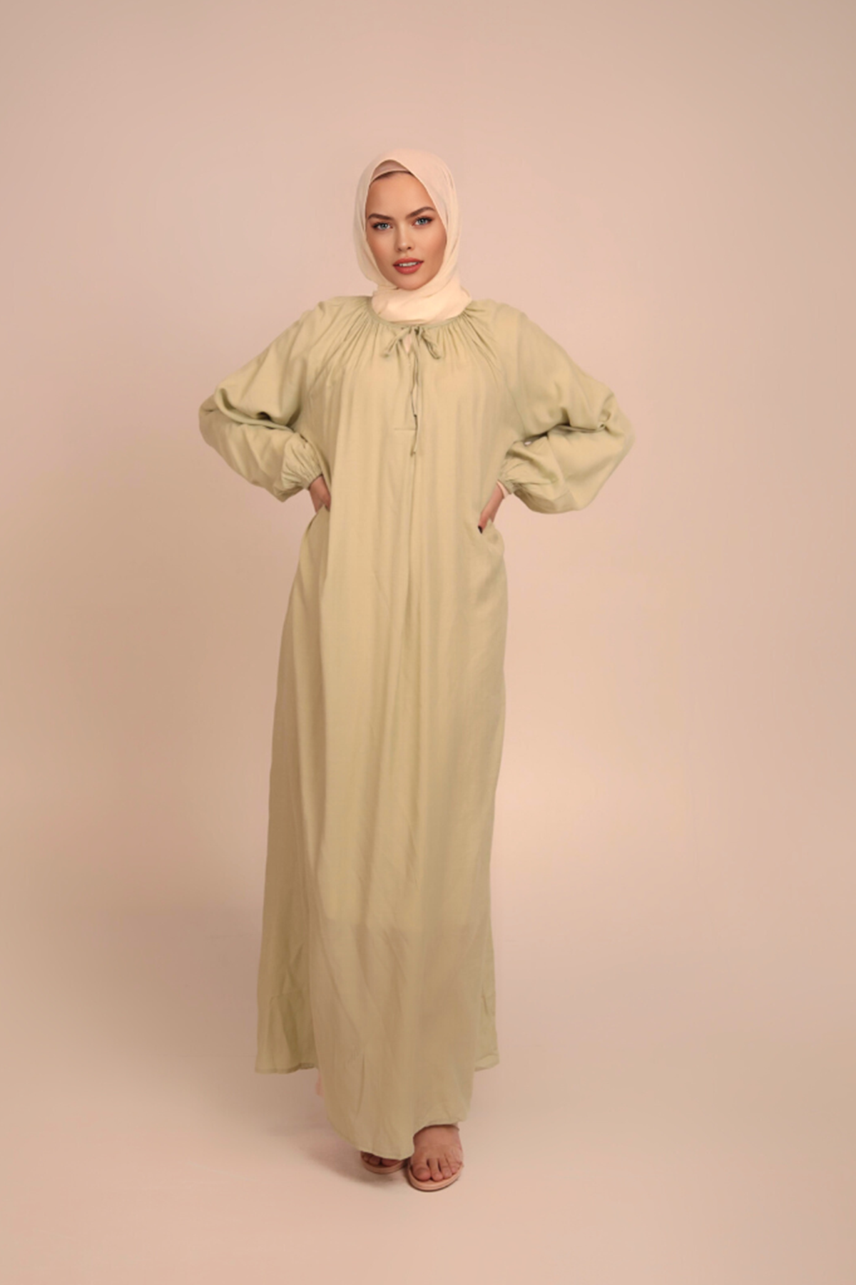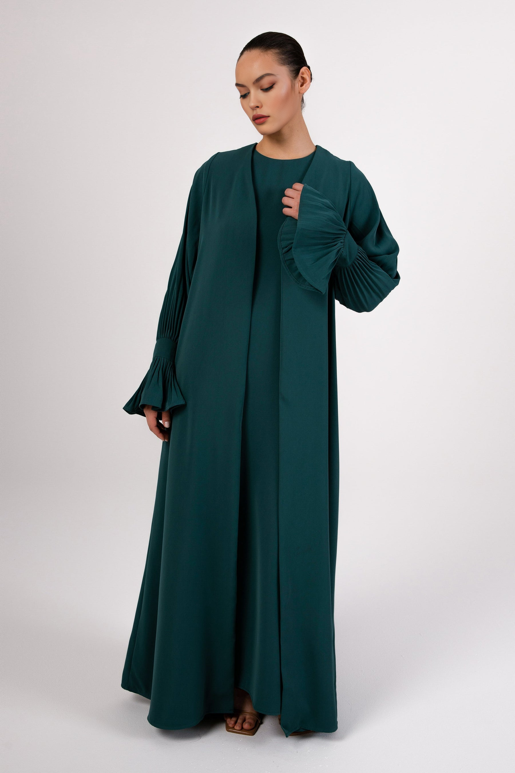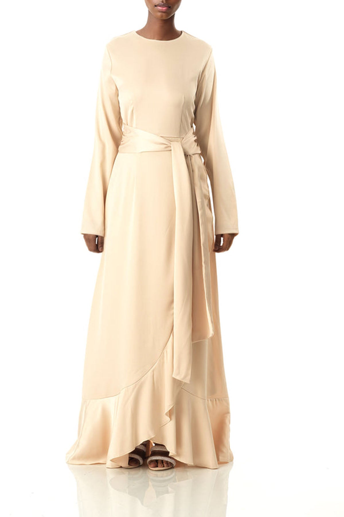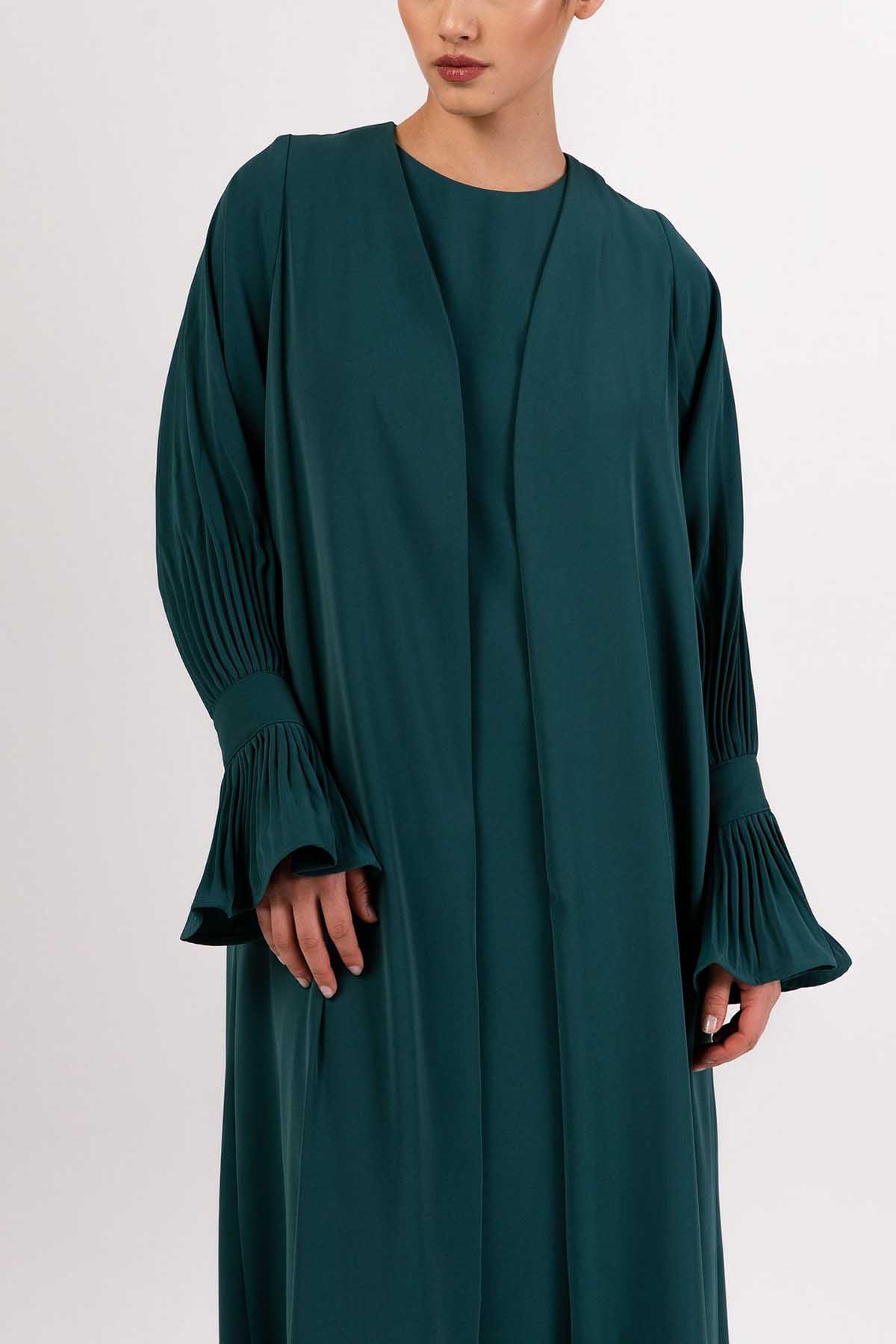 Nude Plain Open Abaya With Elasticated Cuff Sleeves (Premium)