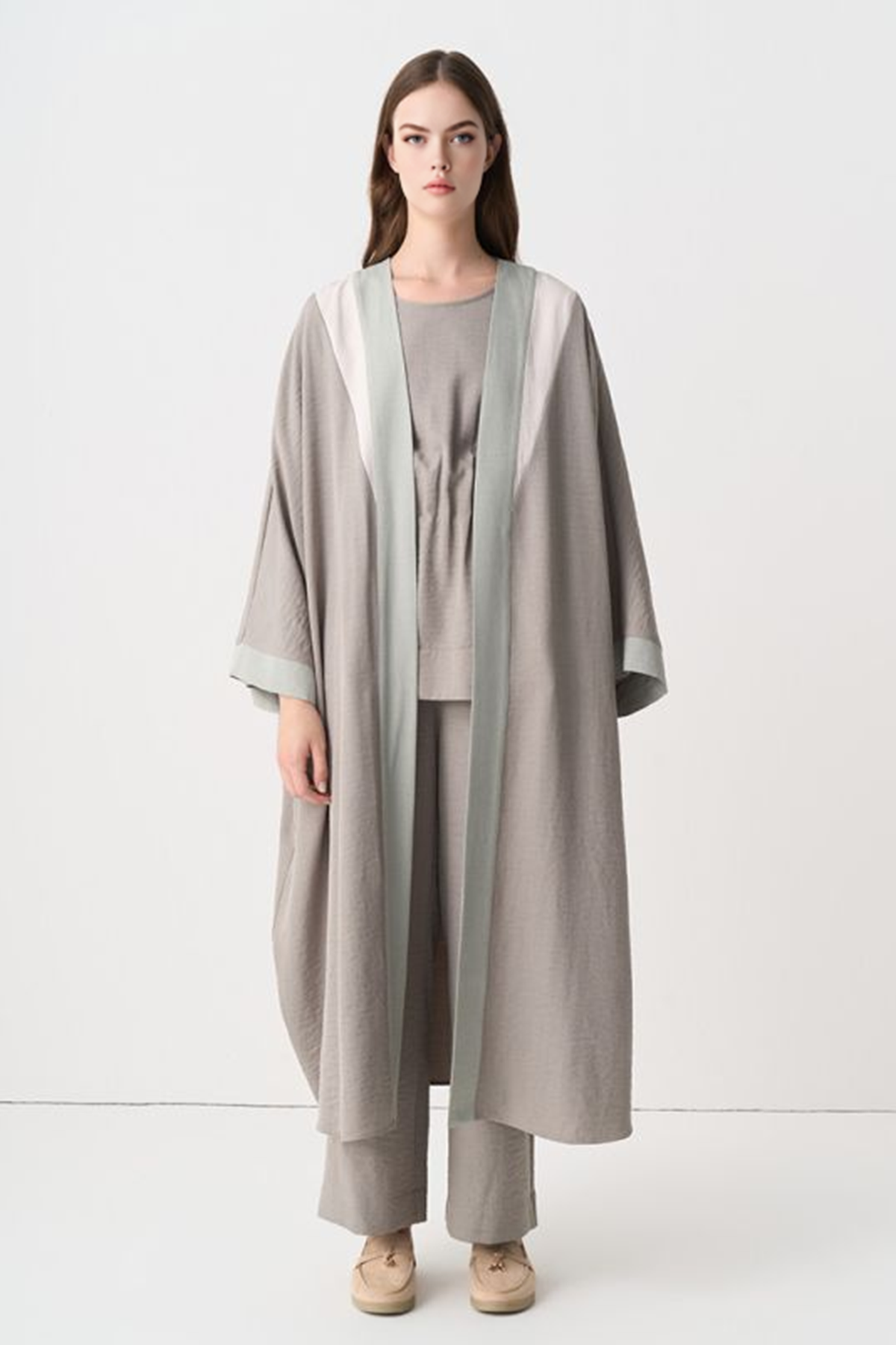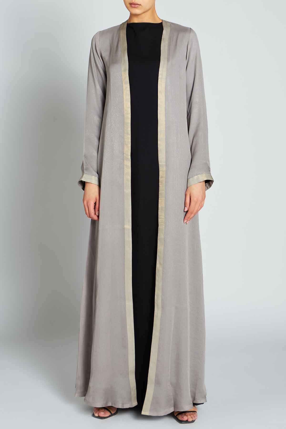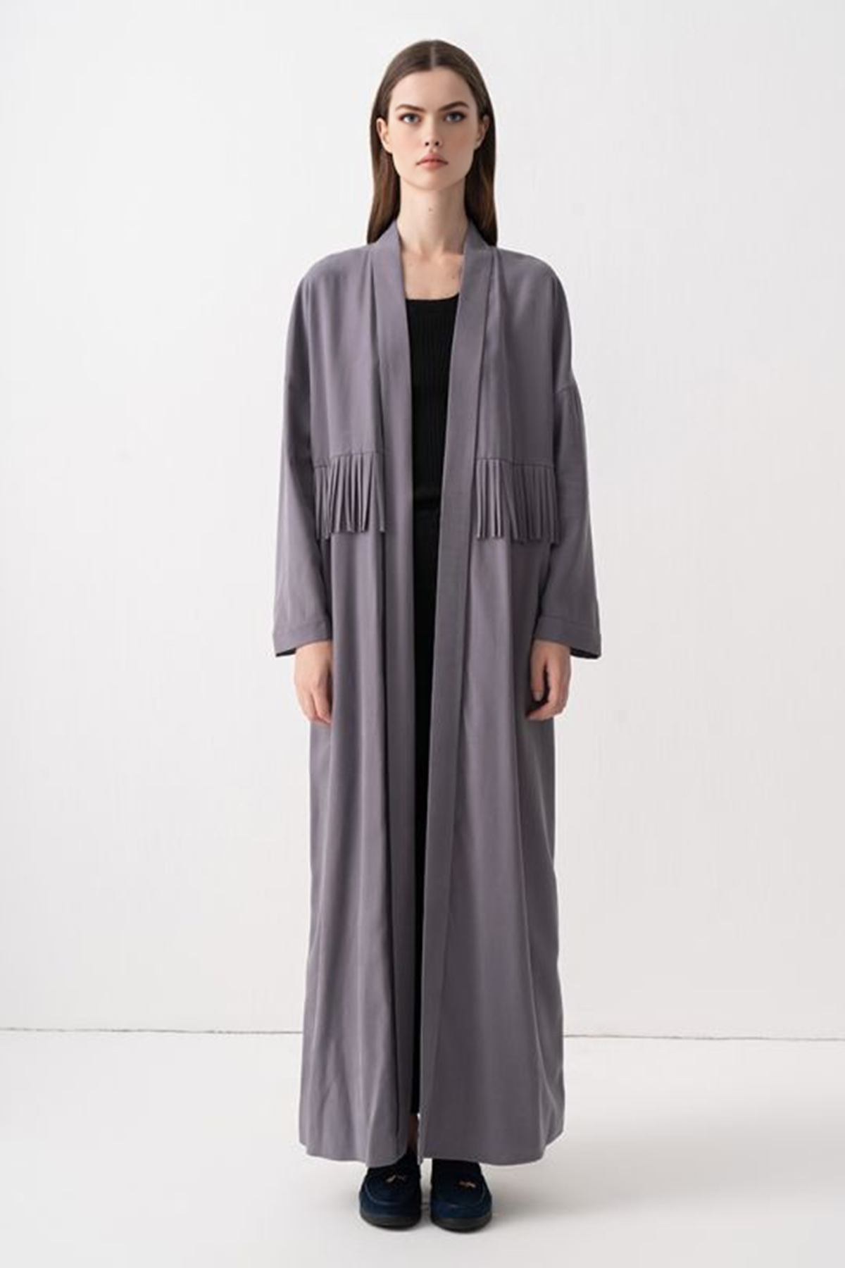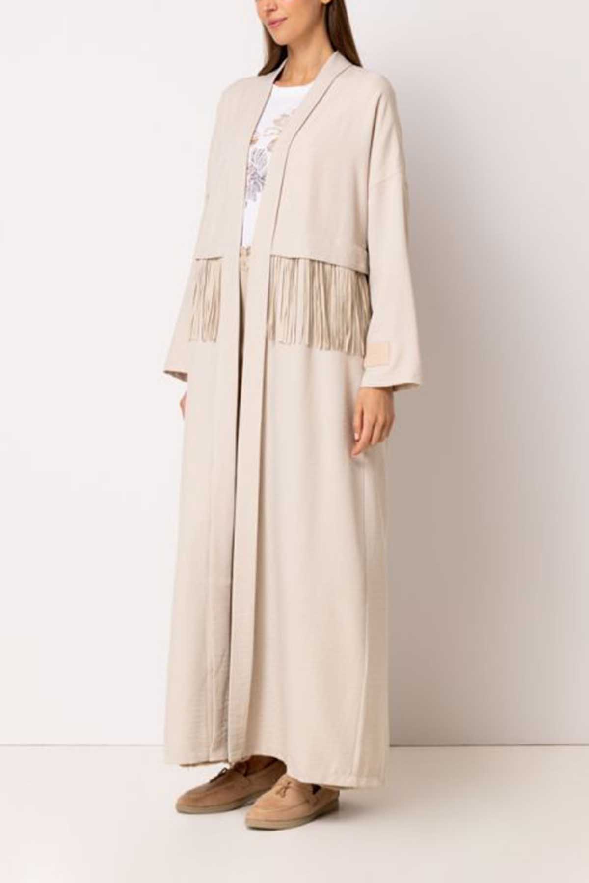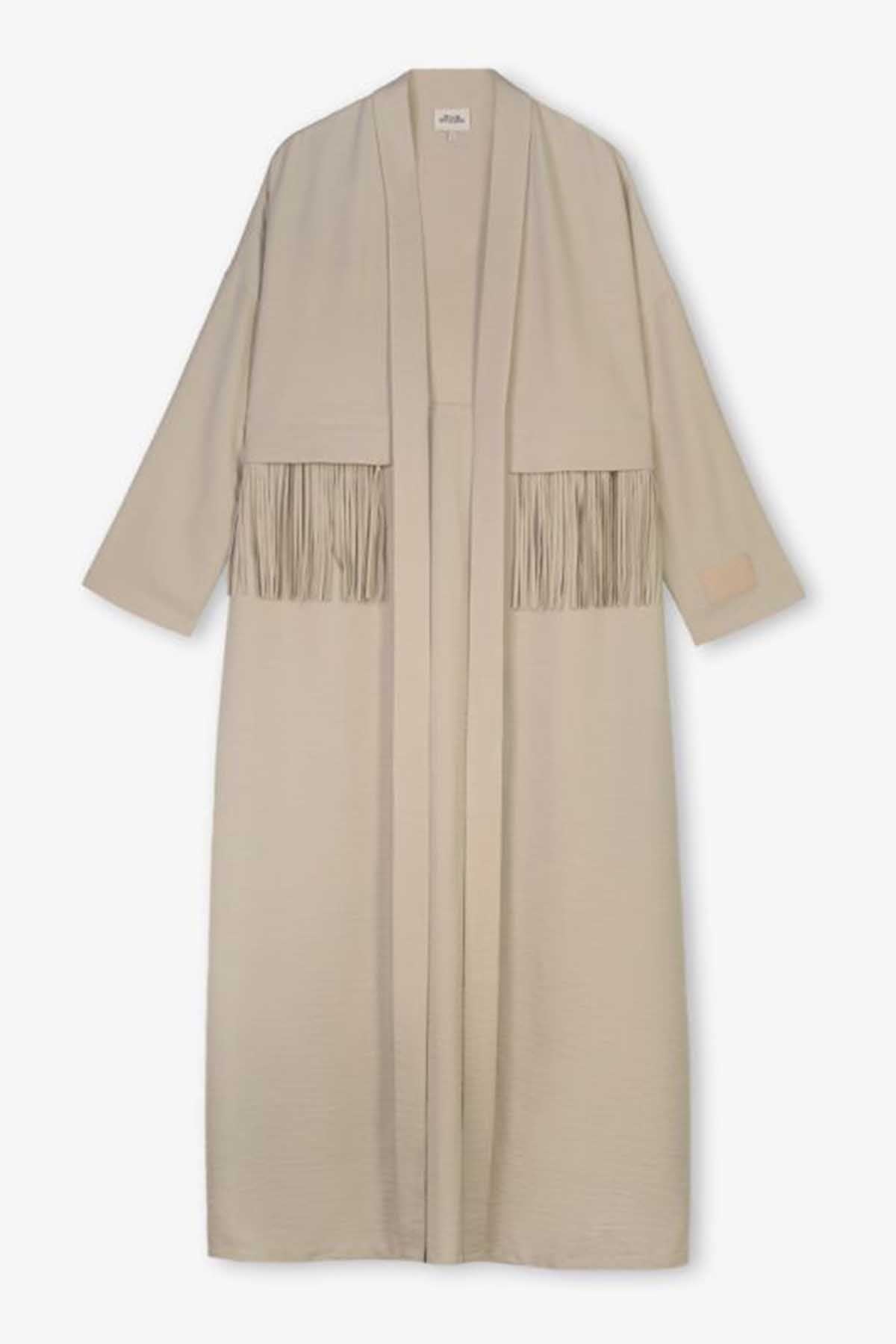 BEDROCK TAUPE TEXTURED ABAYA WITH ZIP POCKETS (PREMIUM)