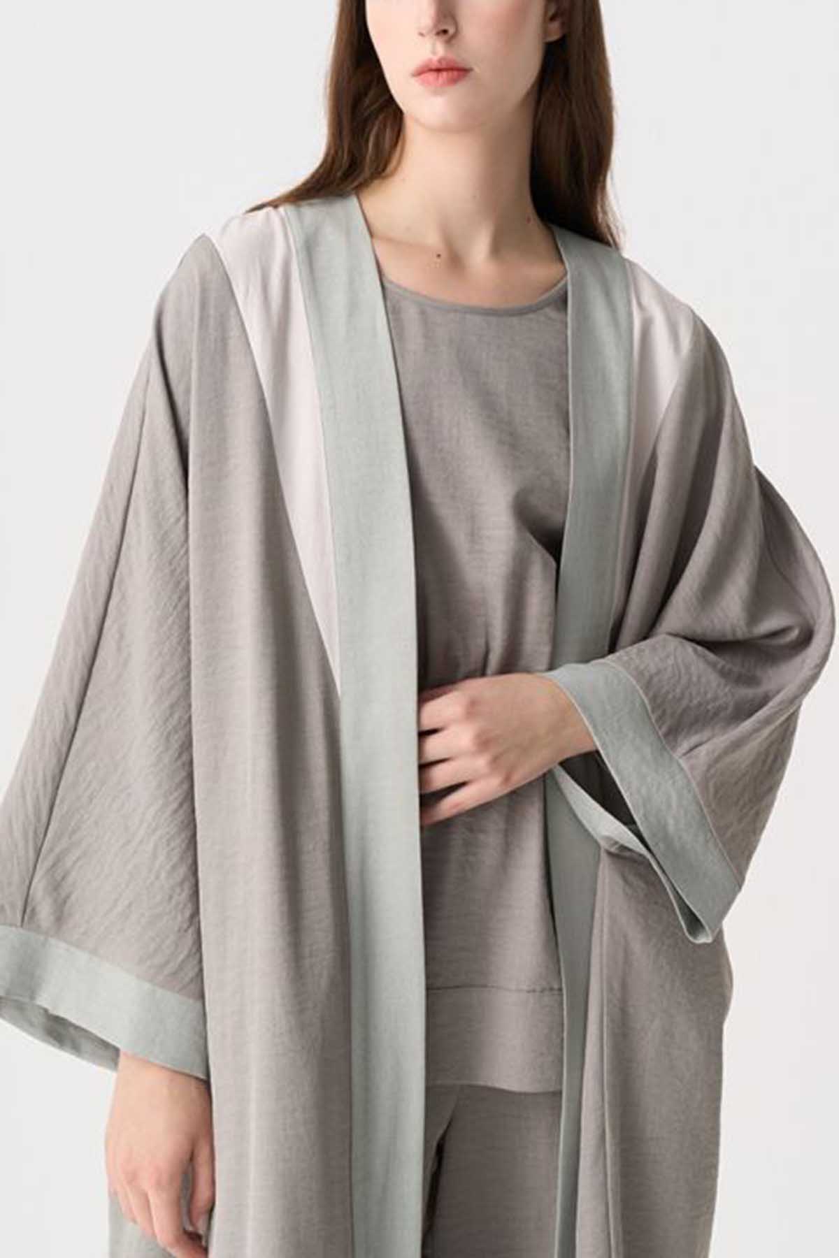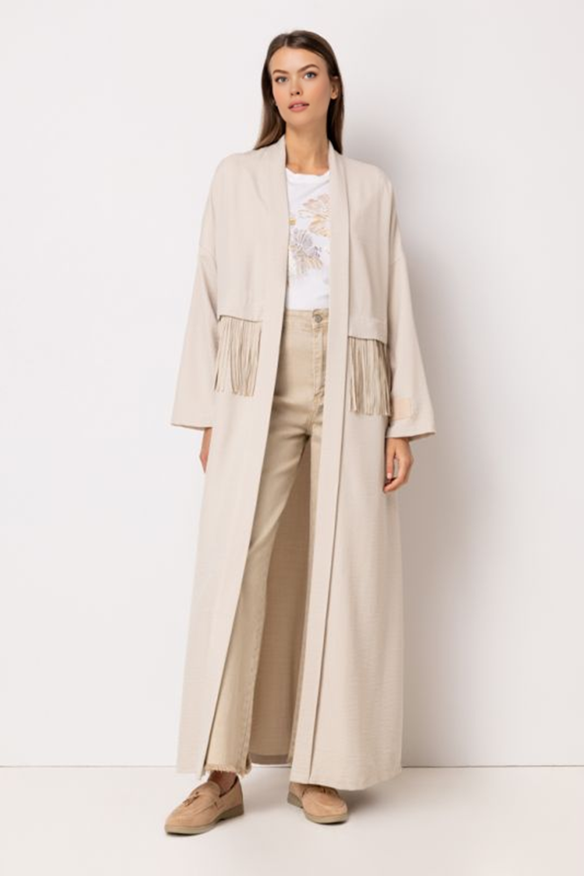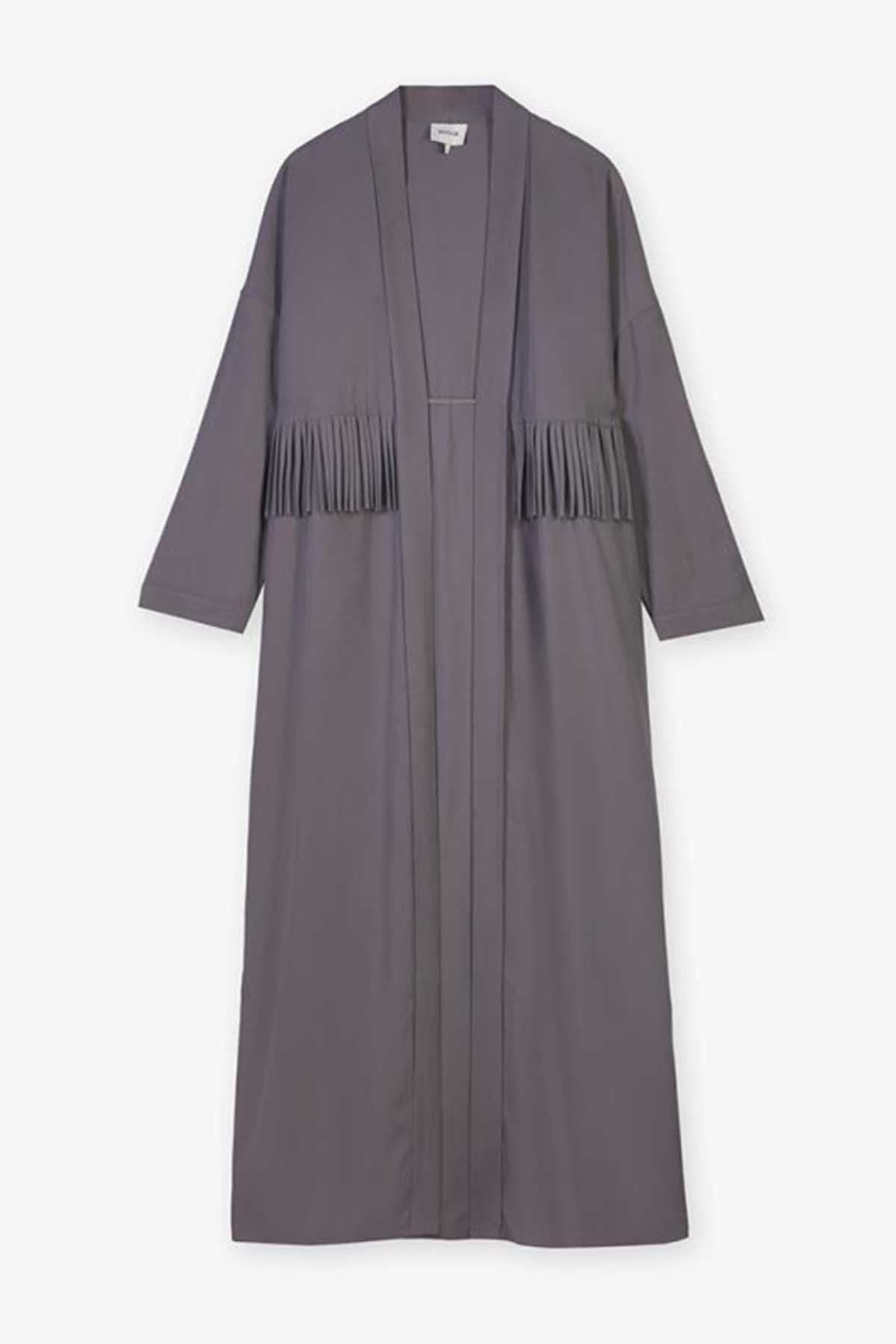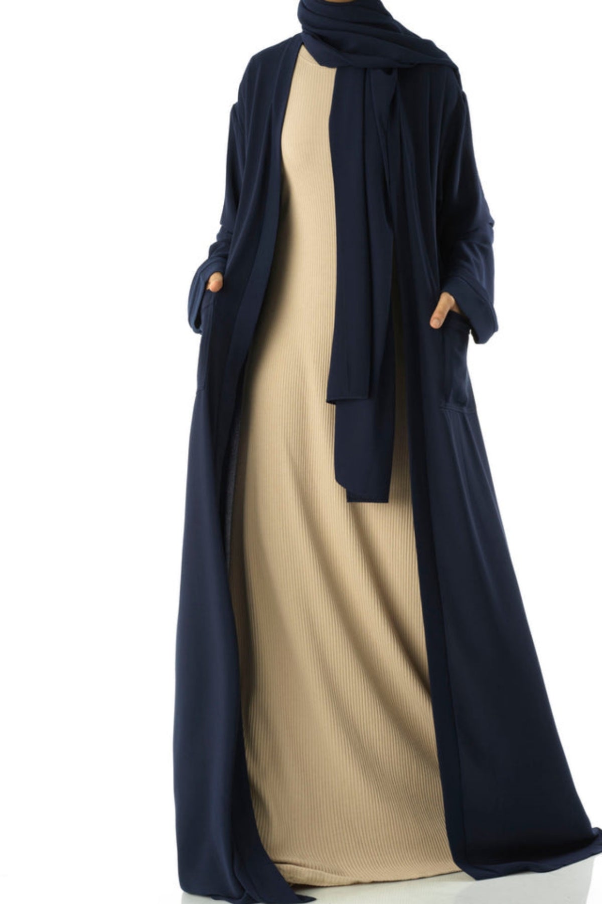 BEDROCK TAUPE TEXTURED ABAYA WITH ZIP POCKETS (PREMIUM)