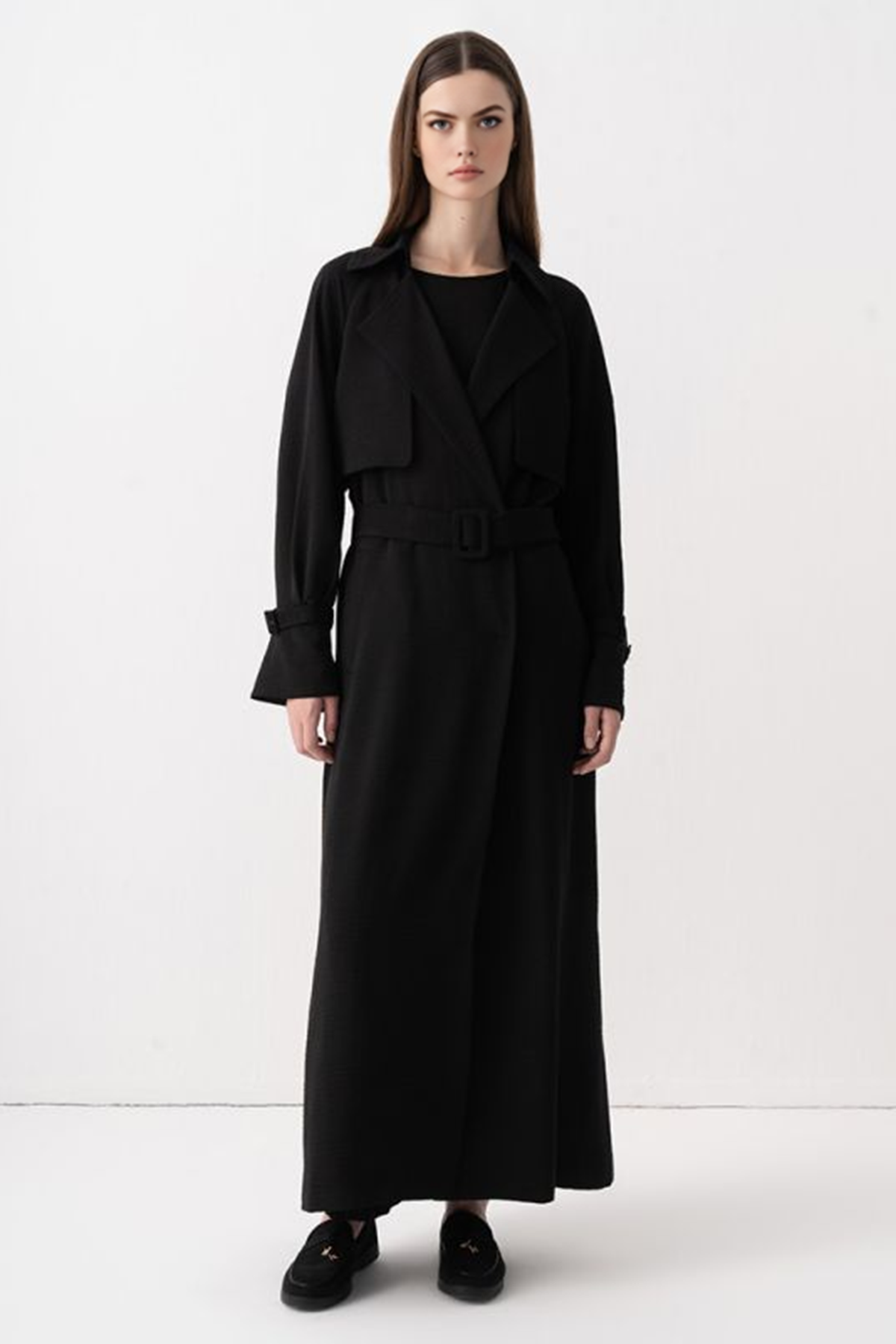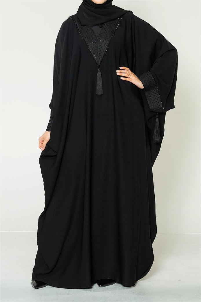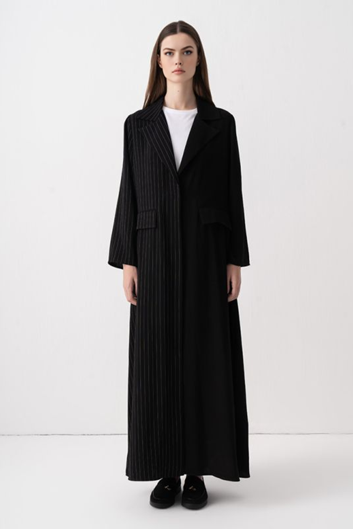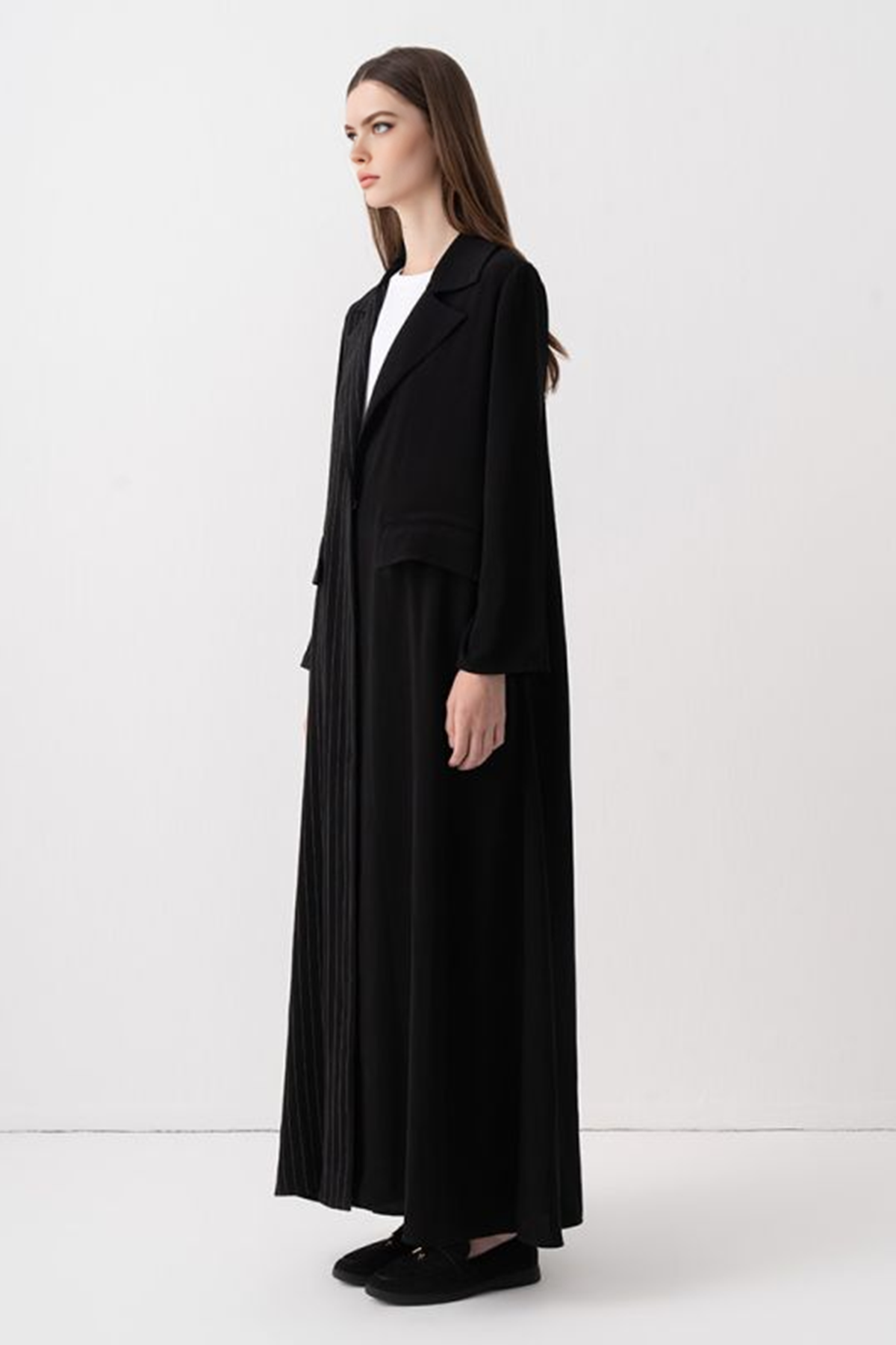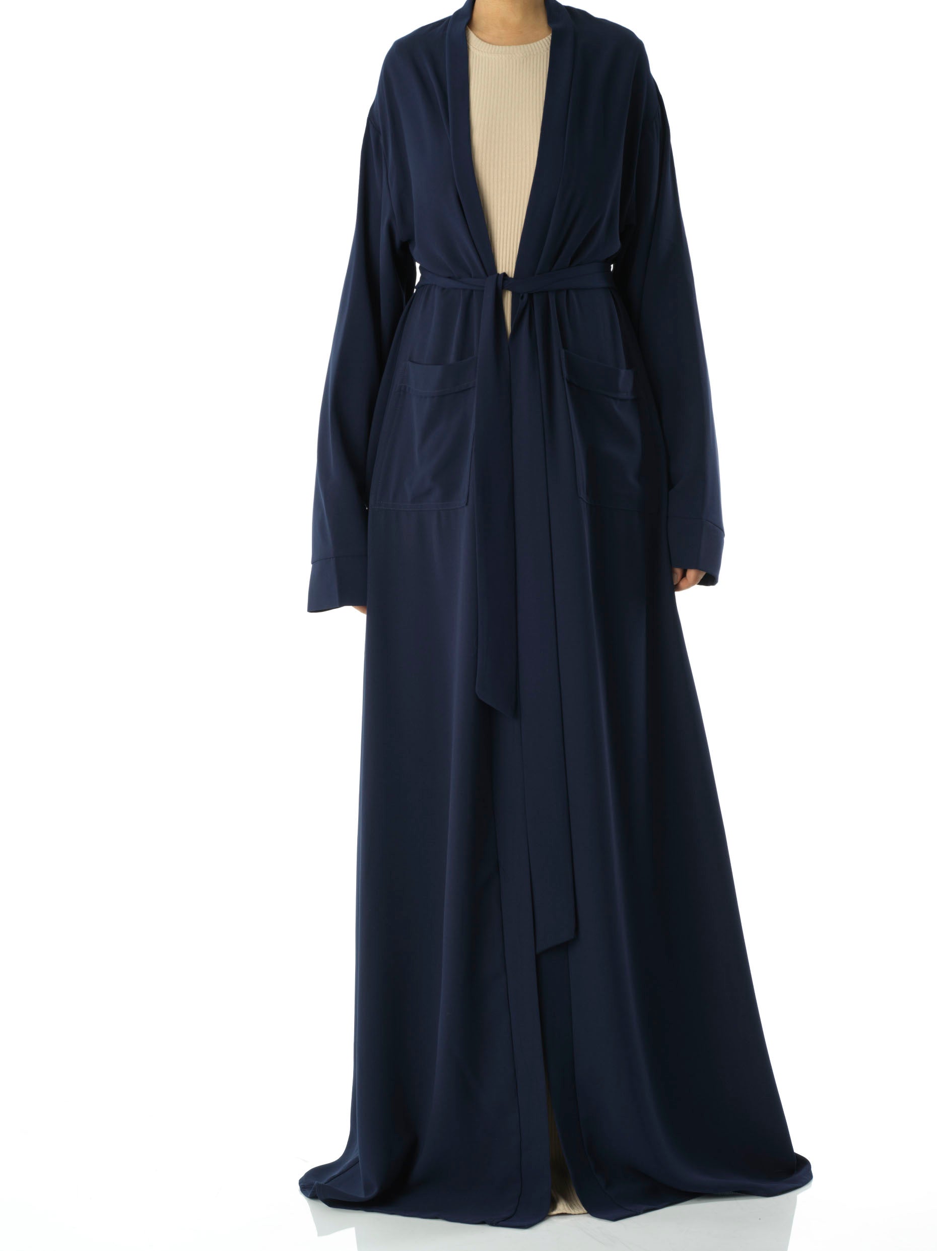 BEDROCK TAUPE TEXTURED ABAYA WITH ZIP POCKETS (PREMIUM)