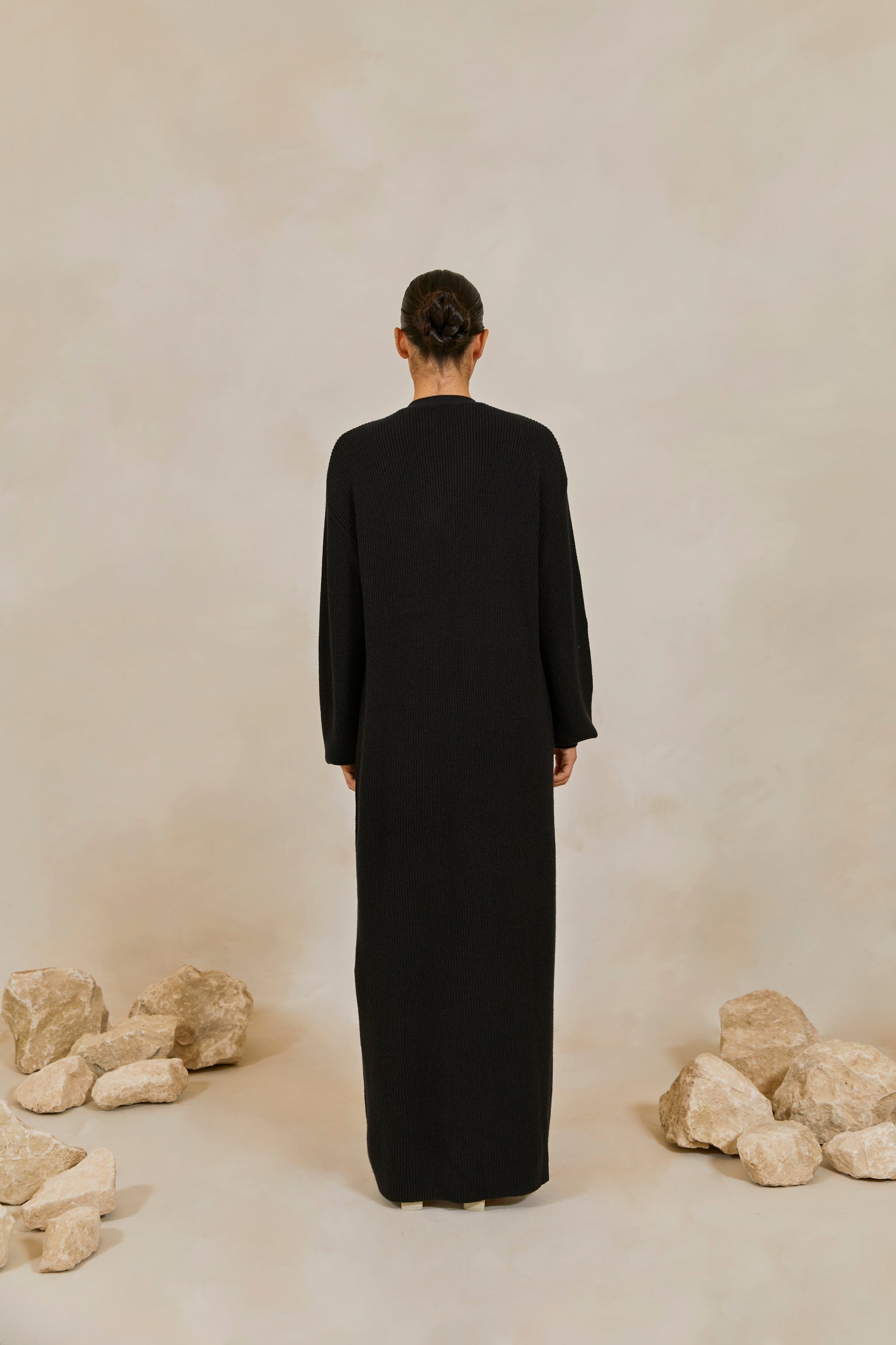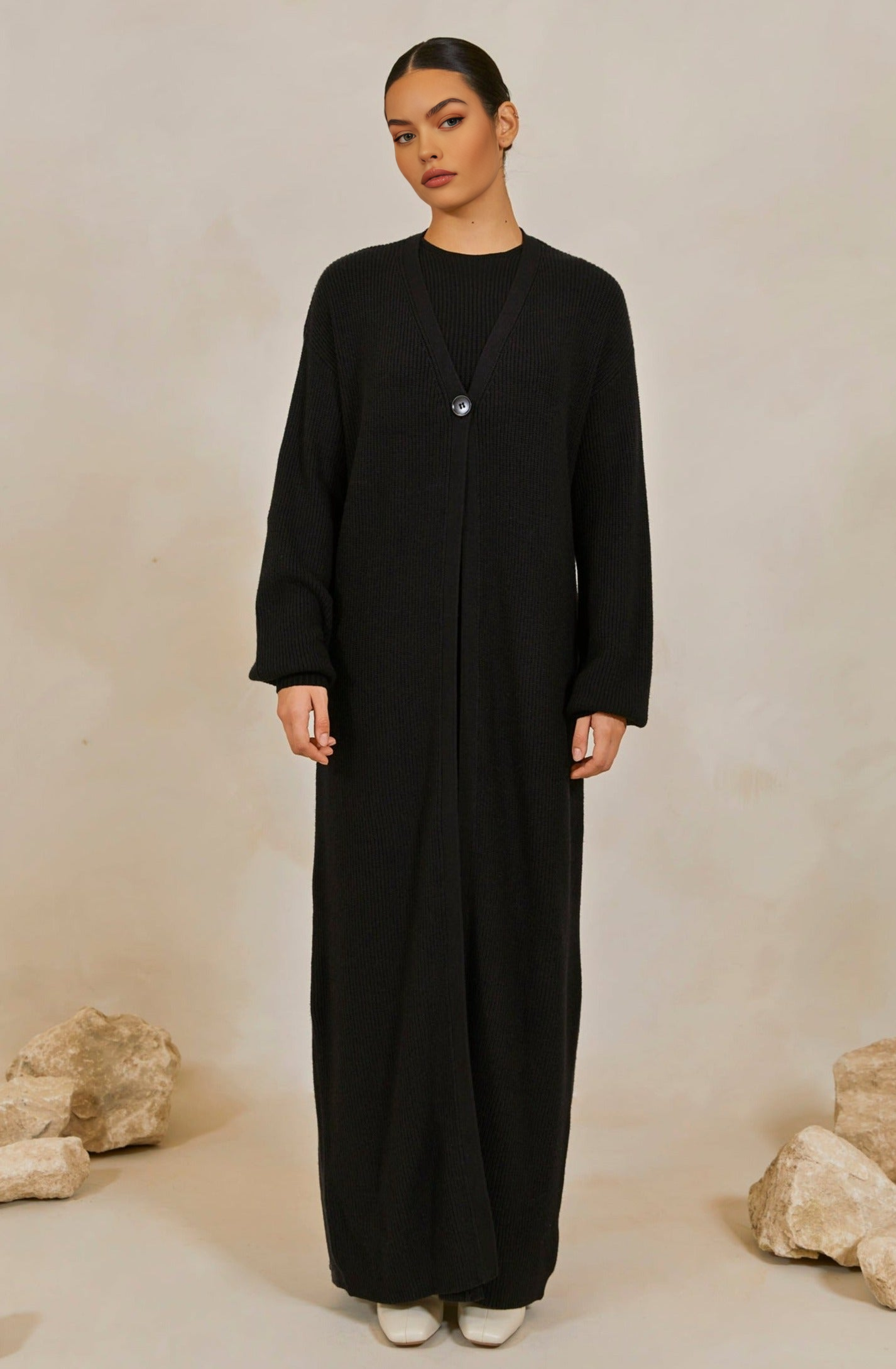 Balloon Sleeve Knit Maxi Cardigan - Black