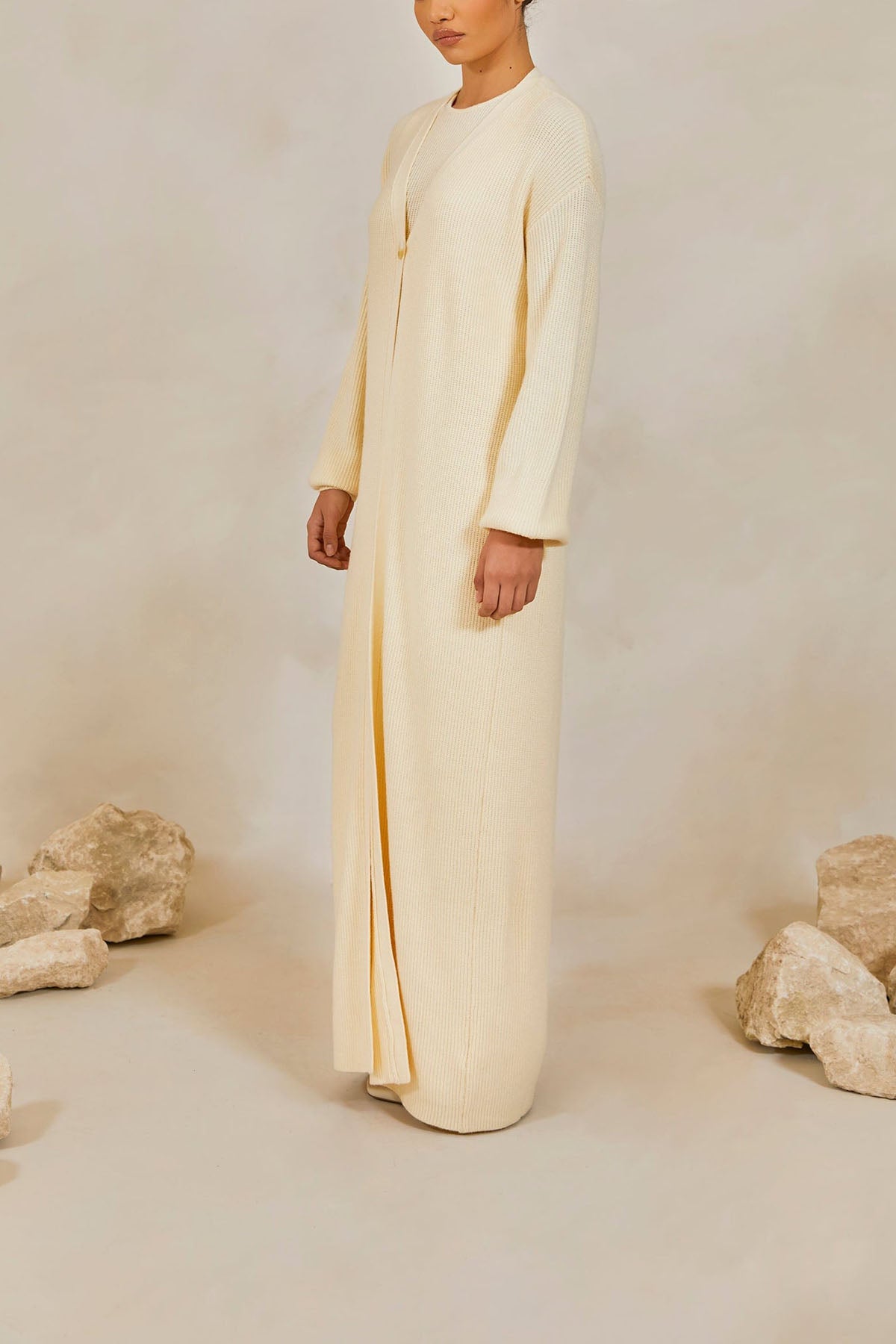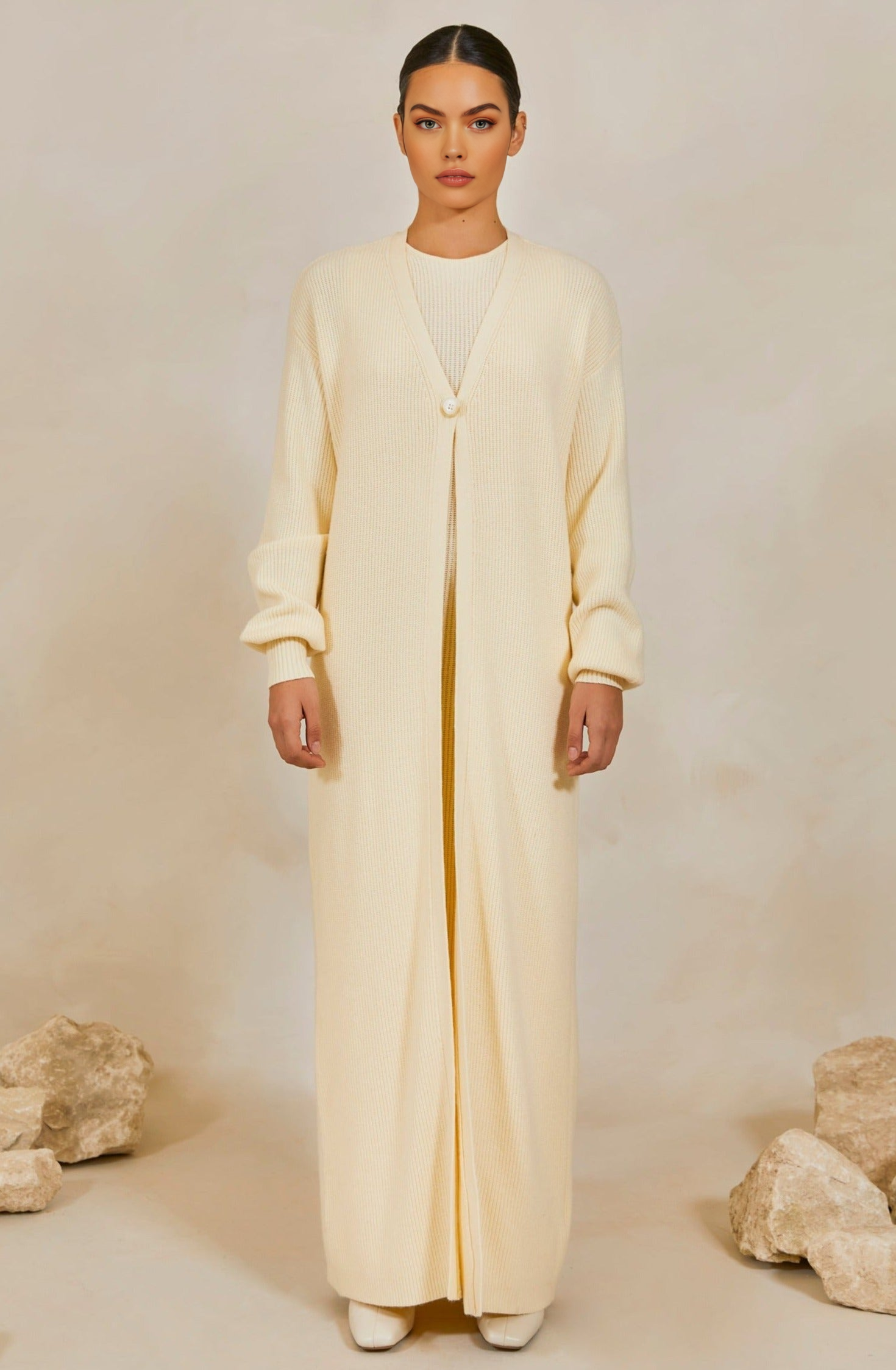 Balloon Sleeve Knit Maxi Cardigan - Oat Milk