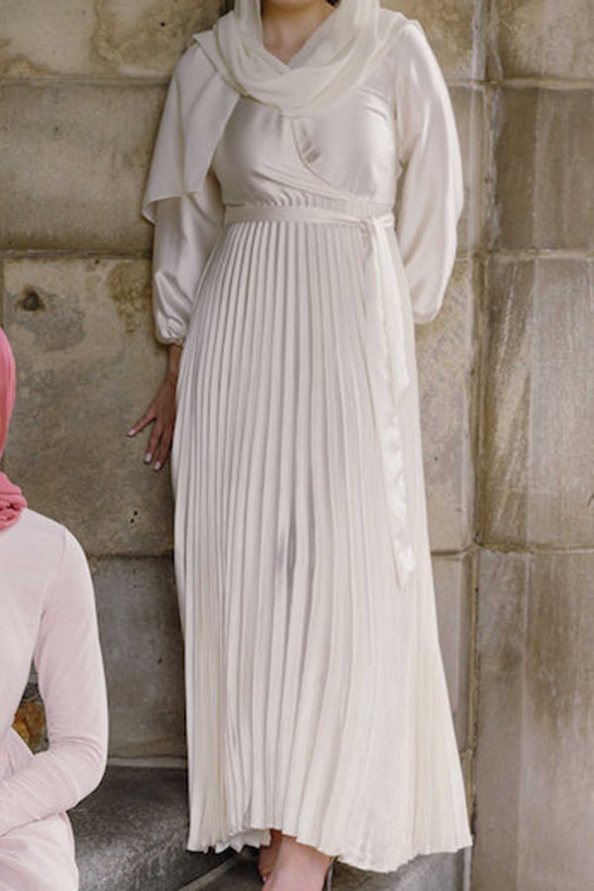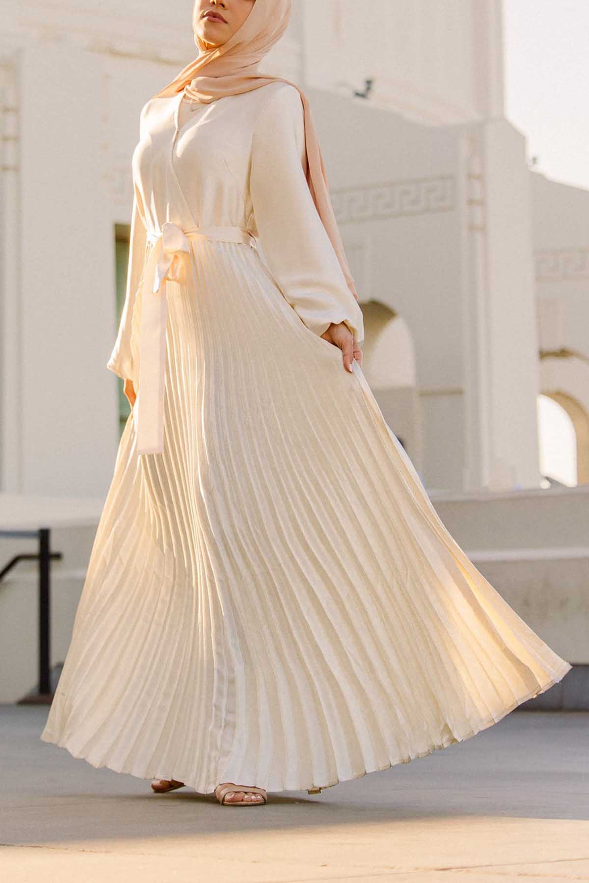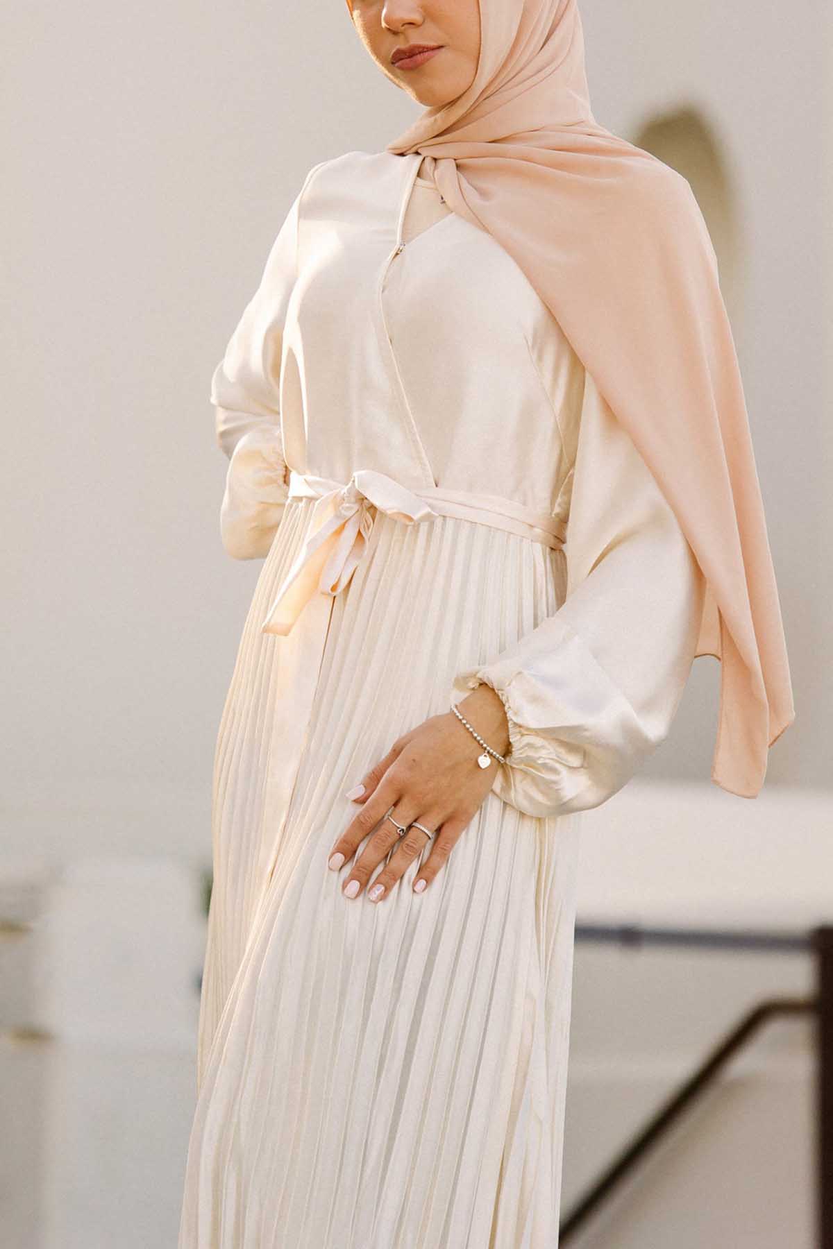 Ayla Pleated Satin Gown - Ivory