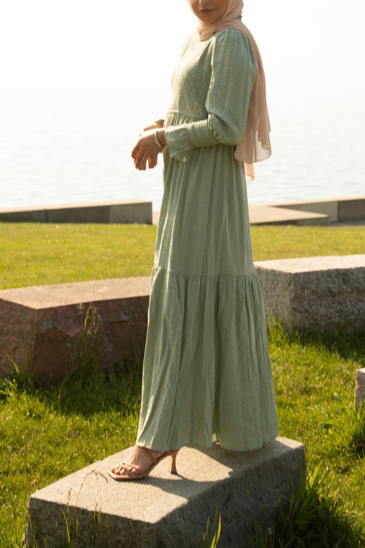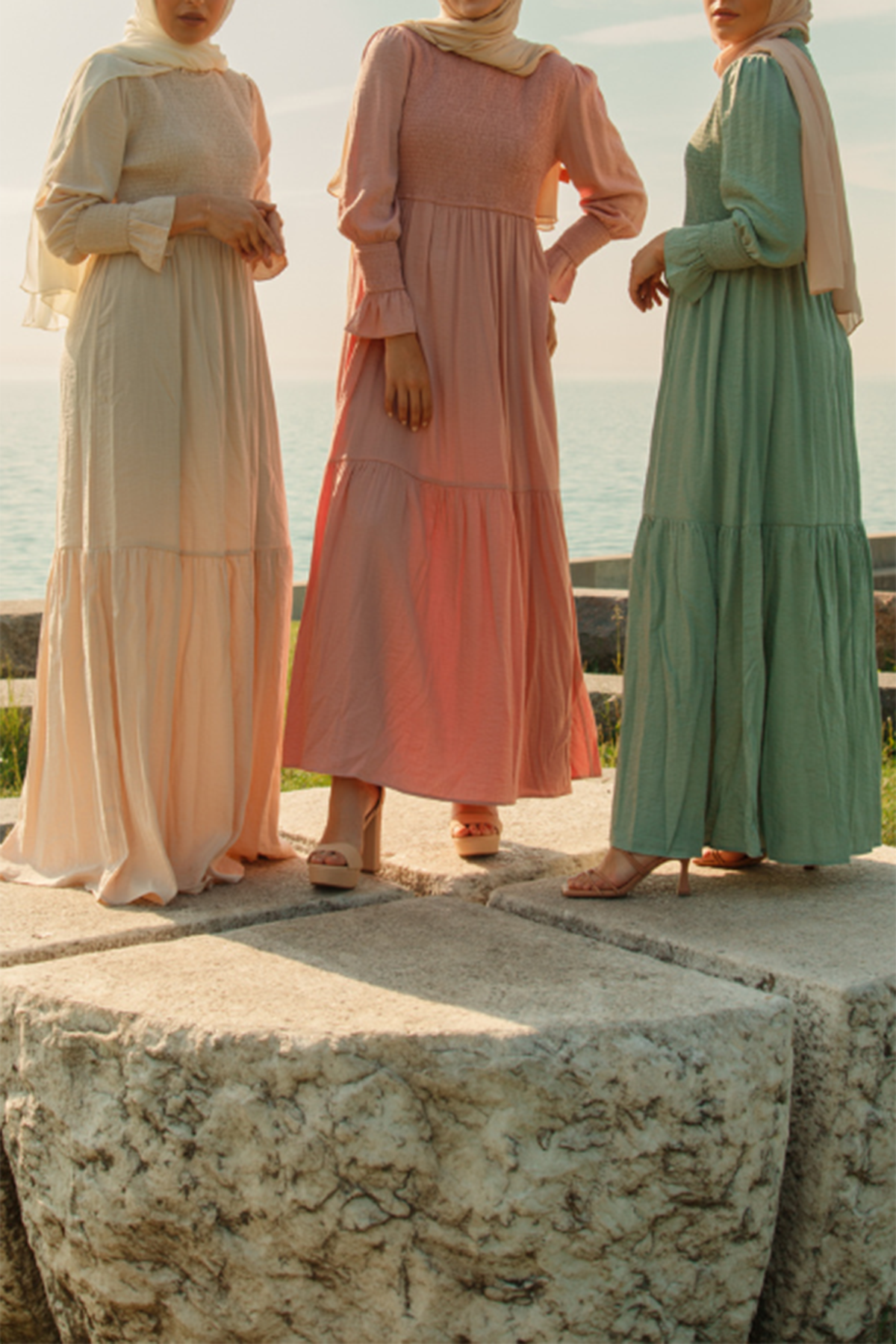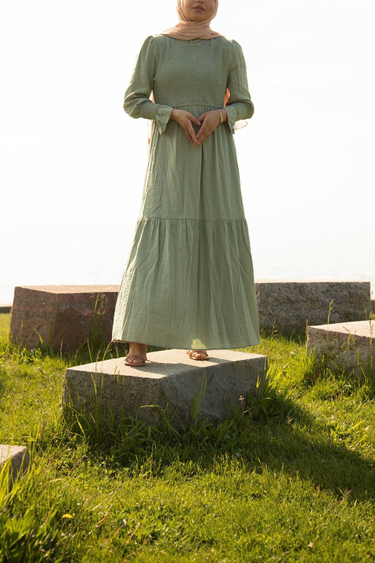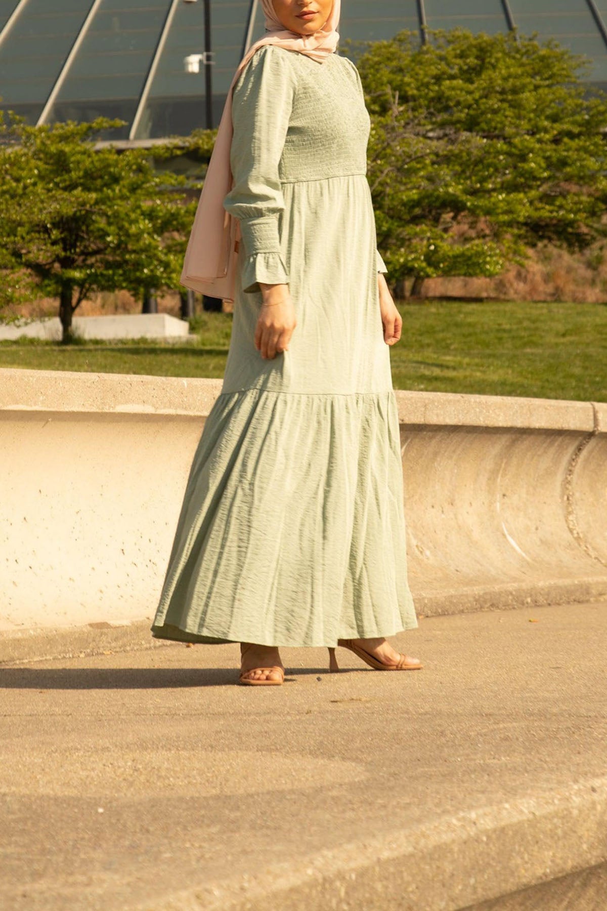 The perfect addition to your wardrobe this season. This dress is the perfect combination of fashion and comfort, ensuring you feel amazing and stay comfortable all day long. The stunning smocked detailing adds texture and dimension to the dress, while the twirl-worthy skirt will have you feeling like a queen. The high ruffle neckline and ruffled sleeves cuffs add an elegant touch to the overall look, making this dress perfect for any occasion.