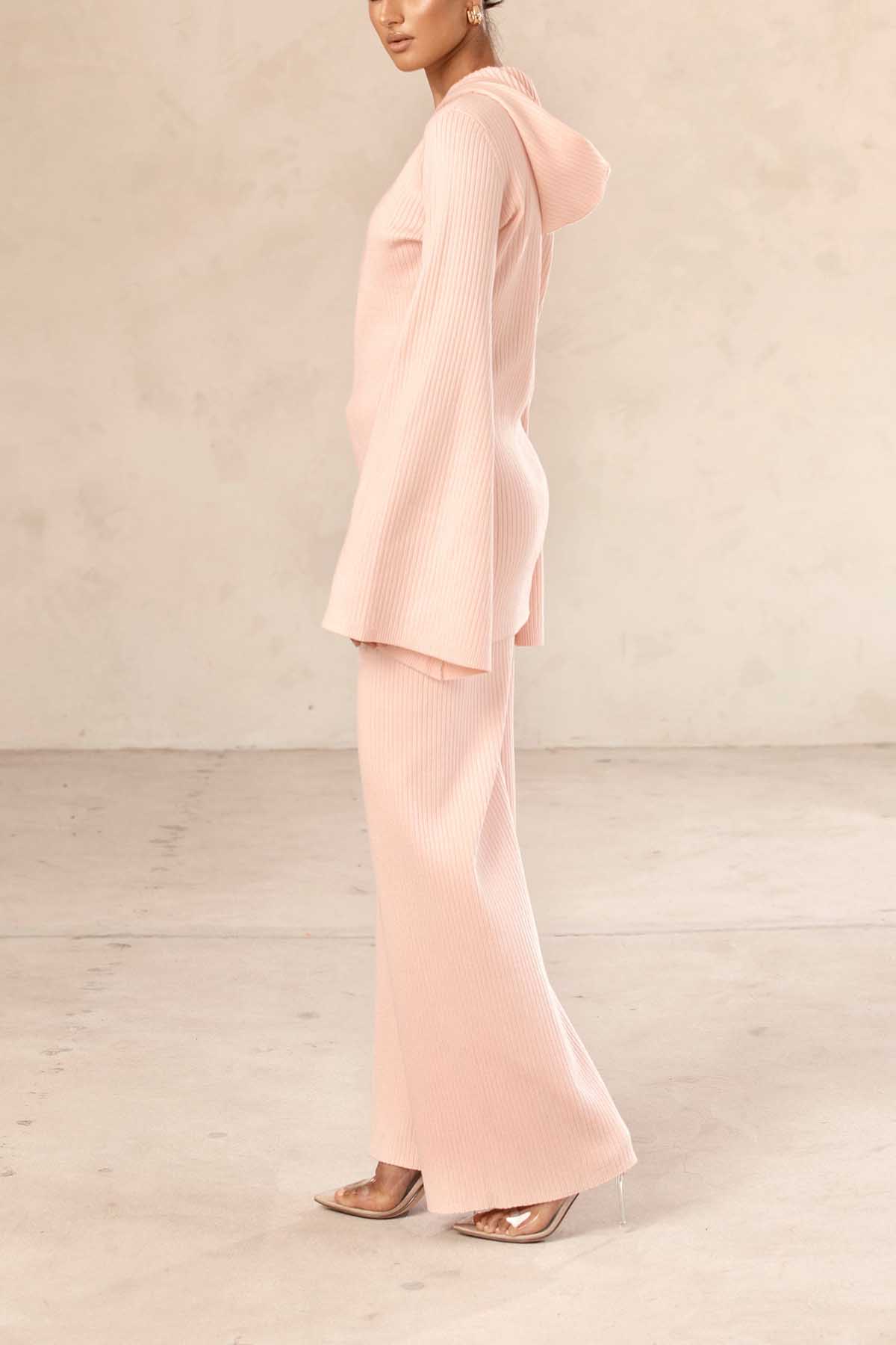 Hooded Knit Bell Sleeve Top - Pink Clay