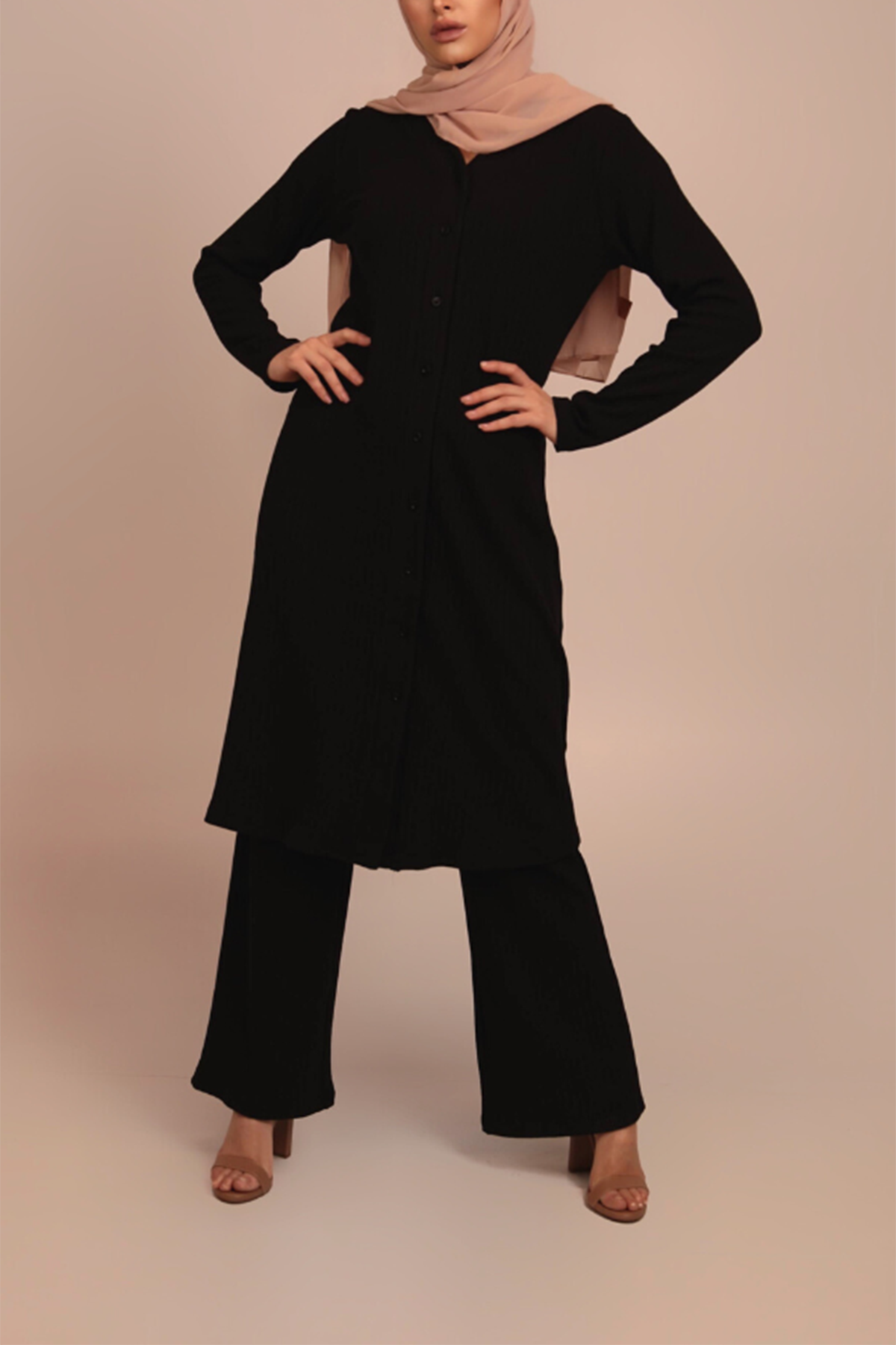 Tamara Knit two piece made from the most coziest knit blend, this Tamara knit two piece is the newest staple for your fall/winter wardrobe. Created from such a stretchy material, this two piece will give you the ultimate comfort, whether you’d like to wear it outdoors to the movies or indoors enjoying some “me” time. The set comes in a straight silhouette easy to open and close with its button down top.