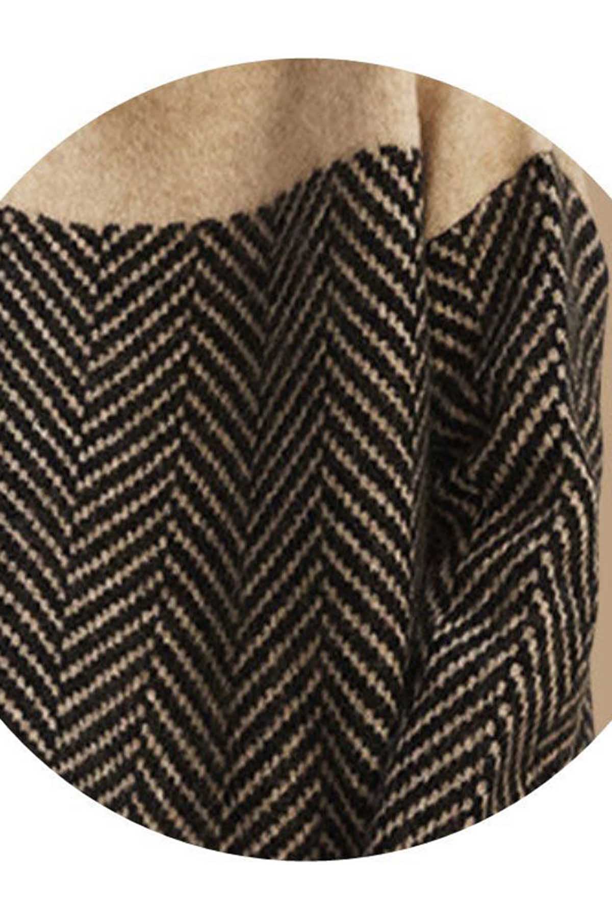 Fashion Khaki Turtle Neck Patchwork Knit Pullover