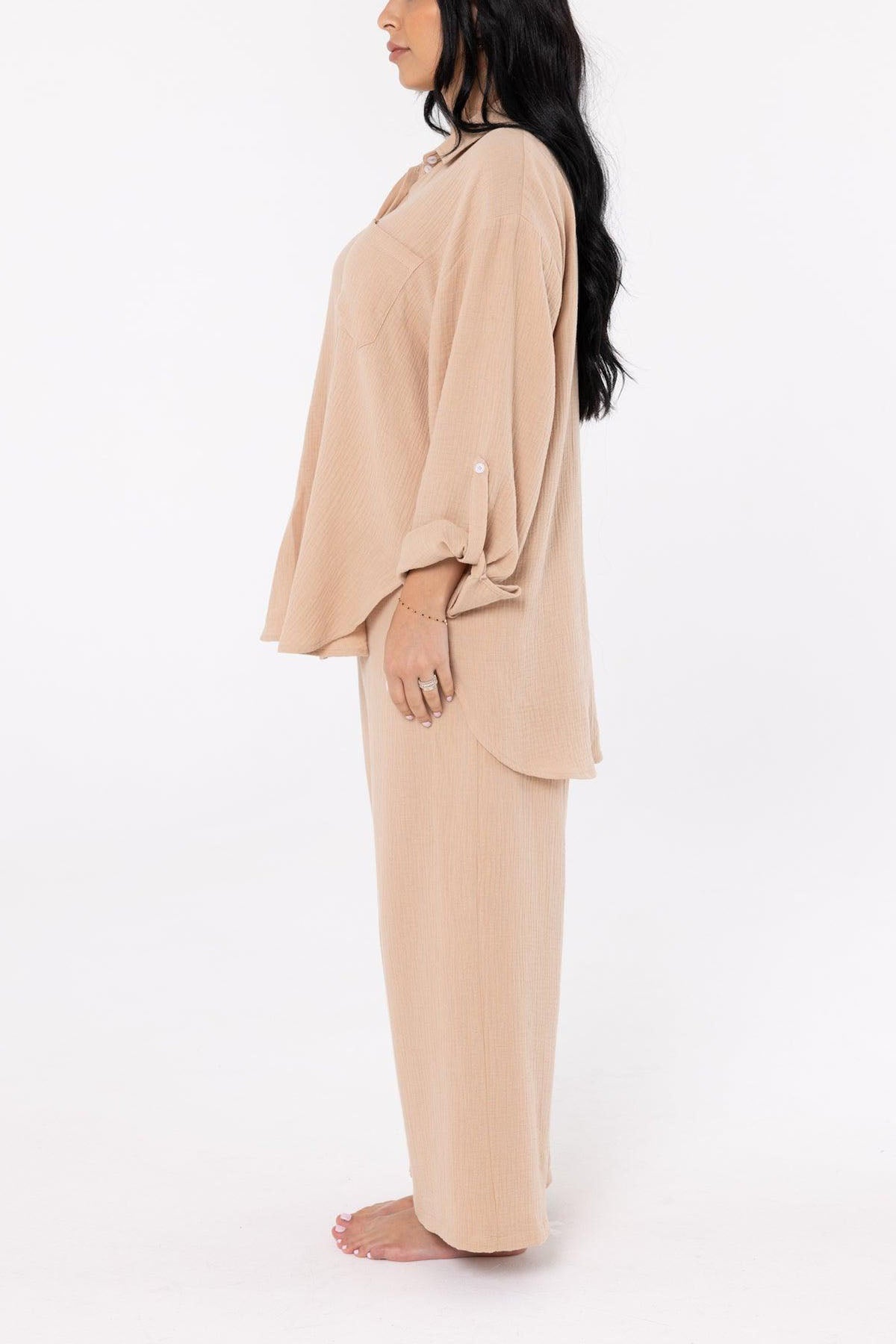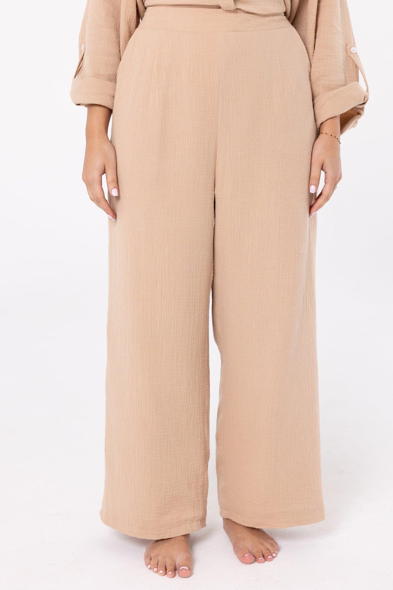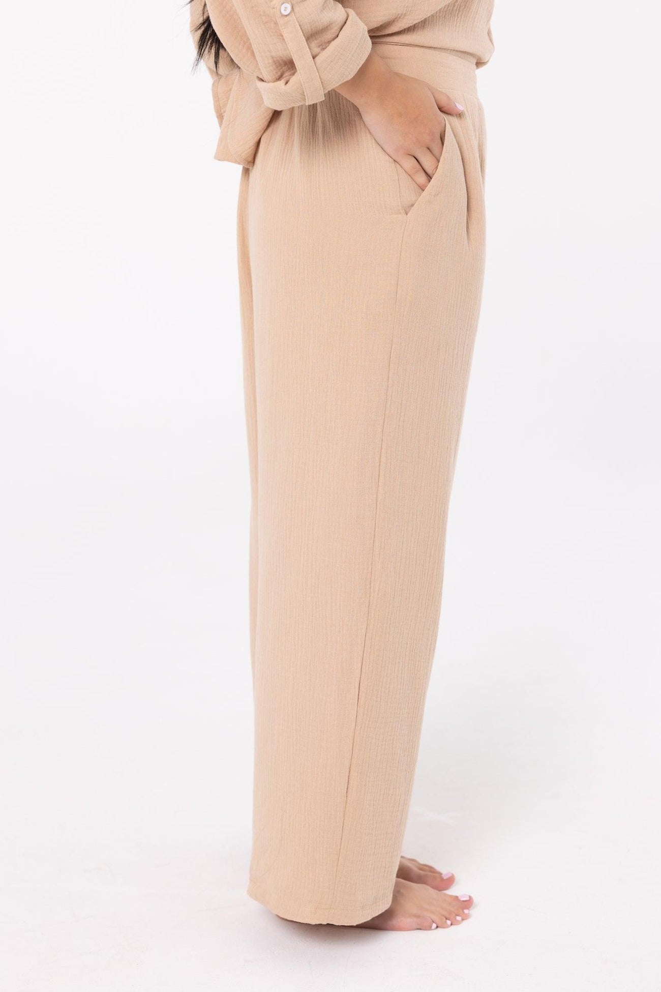 'Loyal" Beige Crinkle Flowy Maxi Dress
