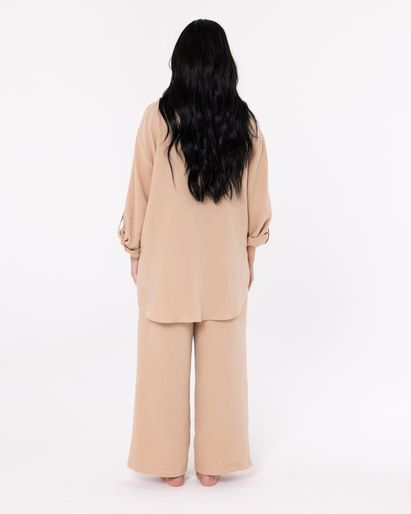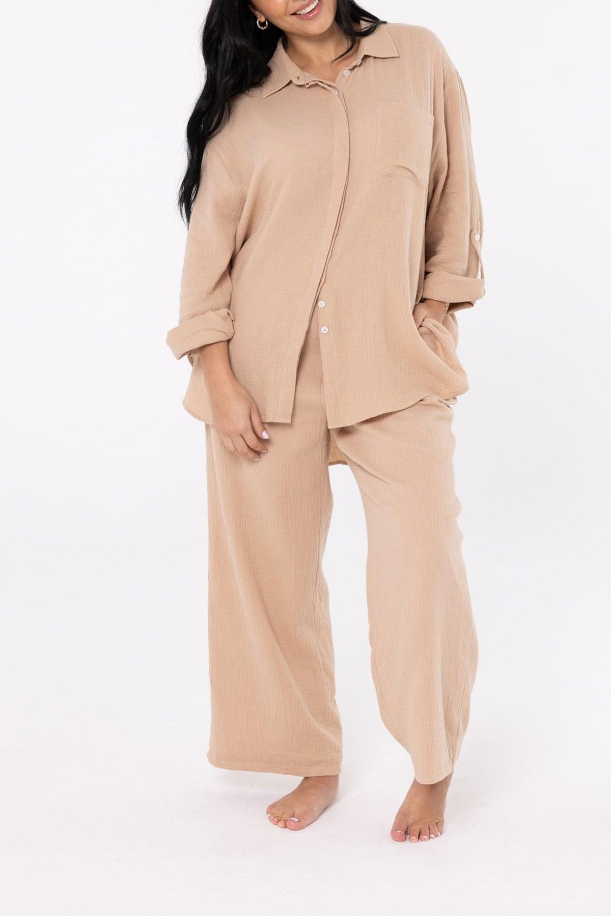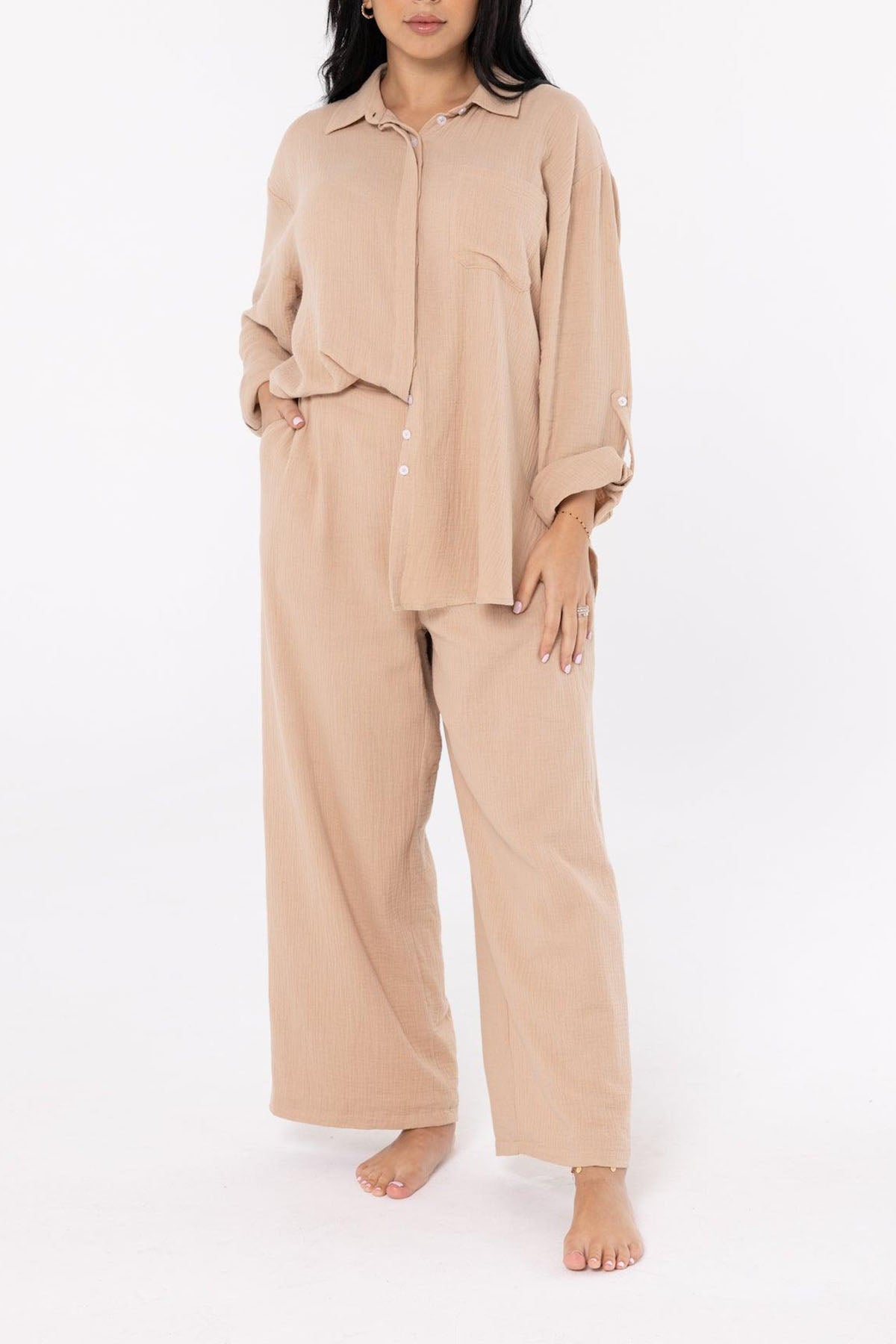 'Loyal" Beige Crinkle Flowy Maxi Dress