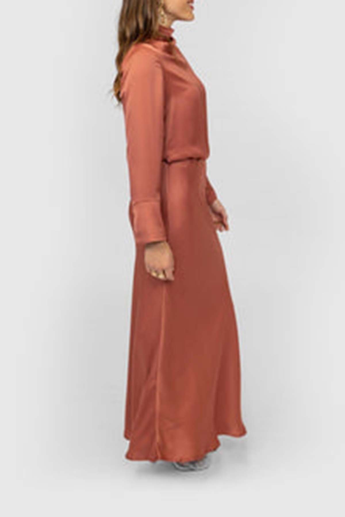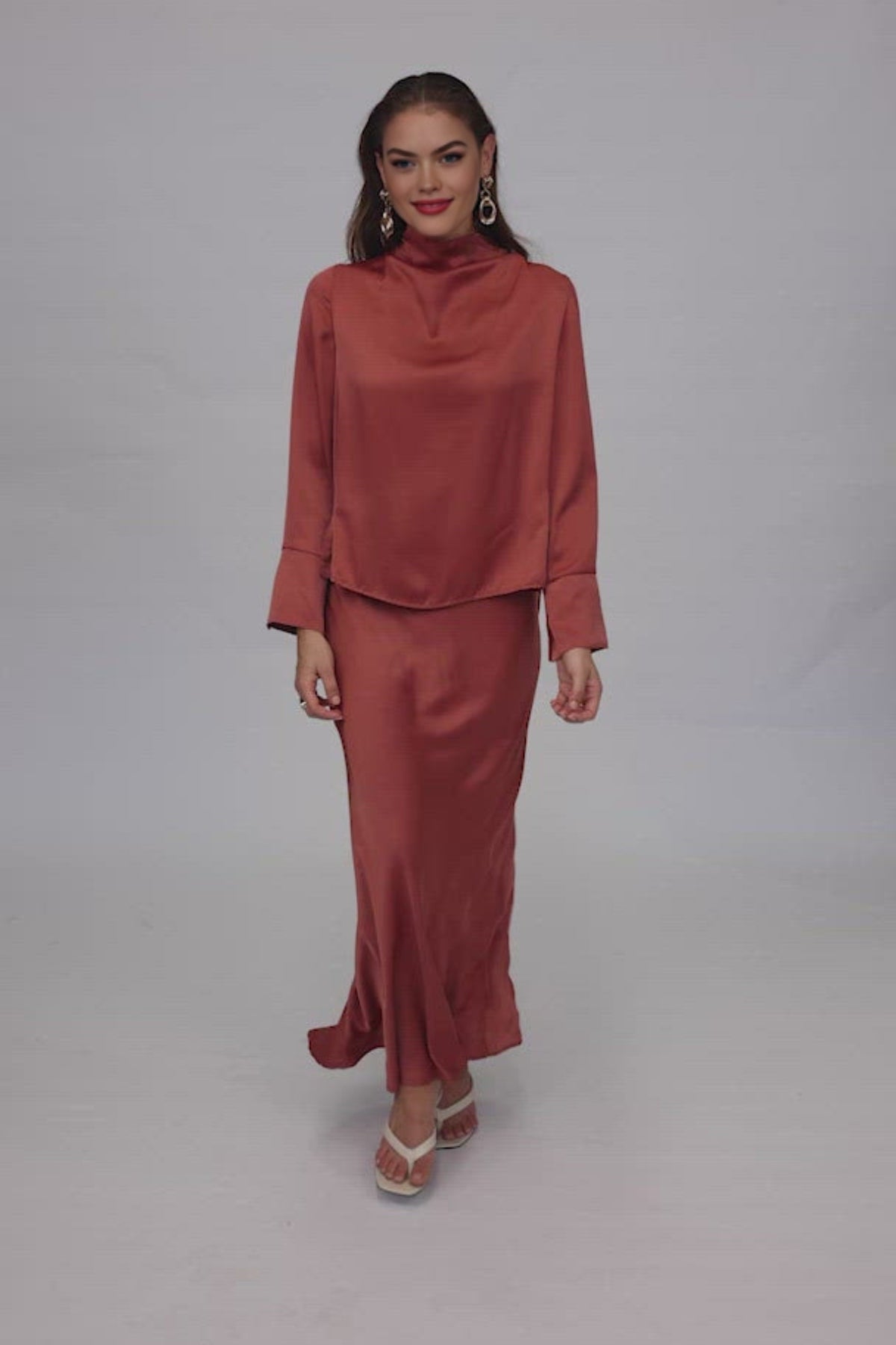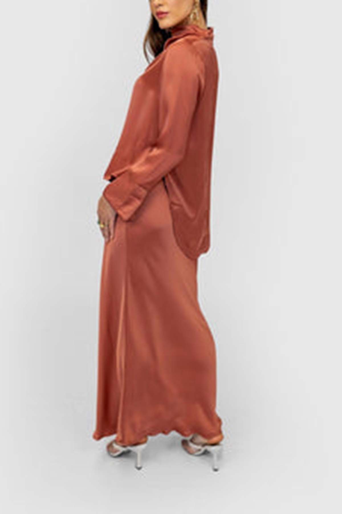 'Maria' Satin Maxi Skirt - Burnt Sienna
