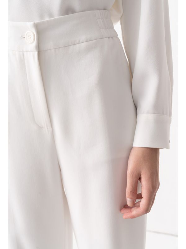 Trouser that will appear absolutely amazing, combine it with your favorite Shirt to have a stylish look. Style: Trouser Occasion: Casual Design: Solid, Straight Leg, High Waist Closure: Back Elastic Waistband With Front Zipper Length: Ankle Length Material: 75% Polyester, 21% Viscose, 4% Elastane Brand: Riva Model Measurements: Height: 175cm, Waist: 59cm Model is Wearing: Small