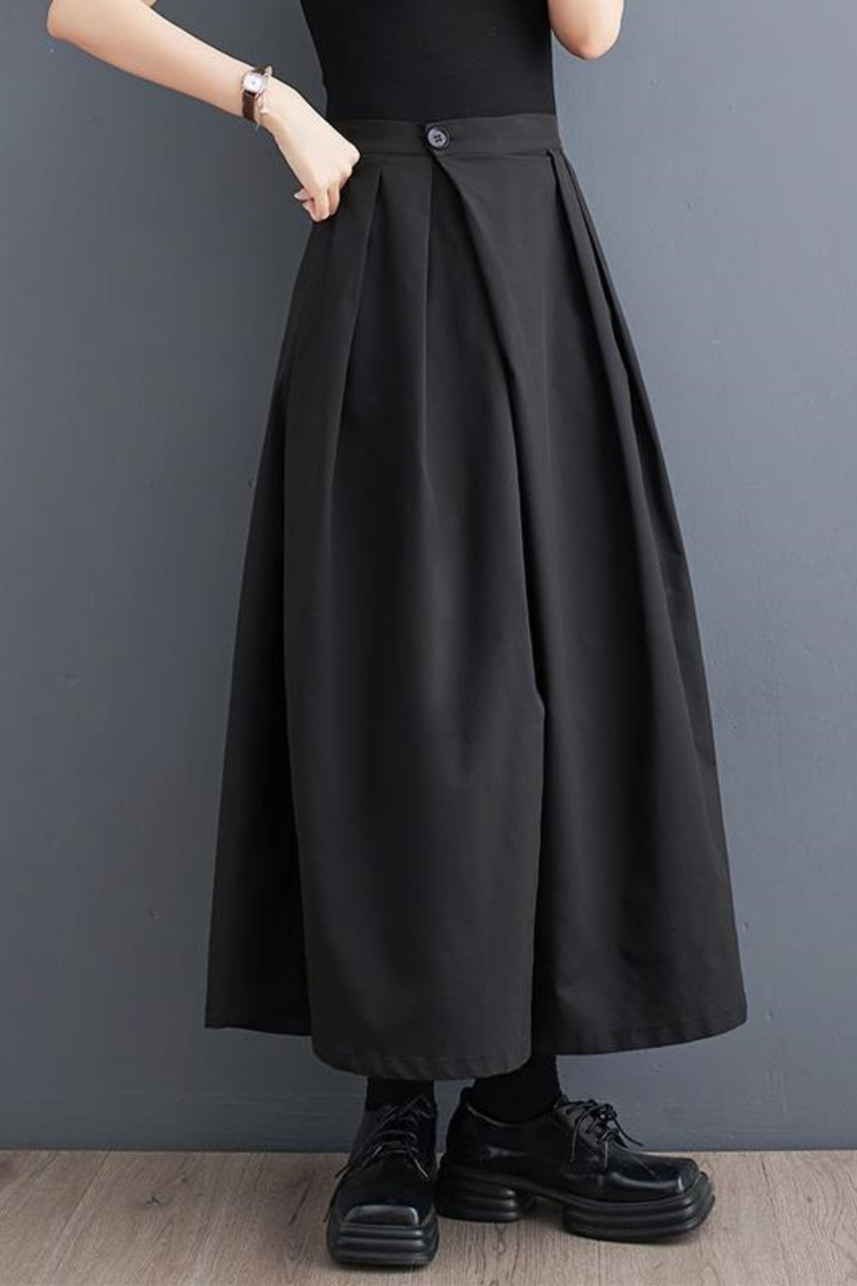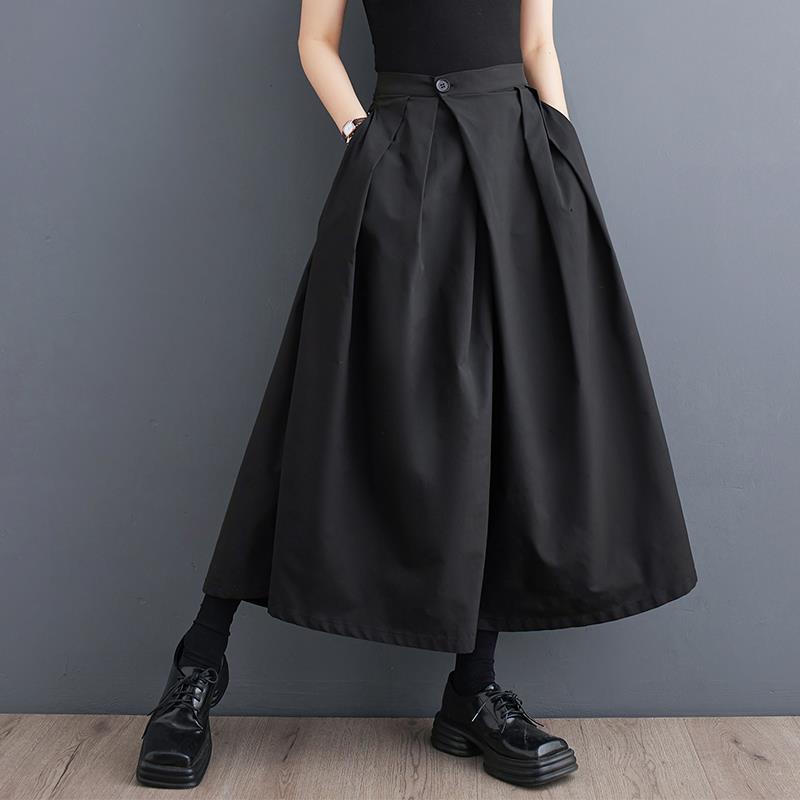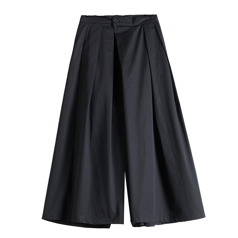 Wide-leg pants High waist design pleated A-shaped cropped hakama