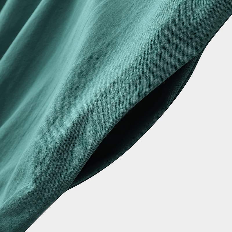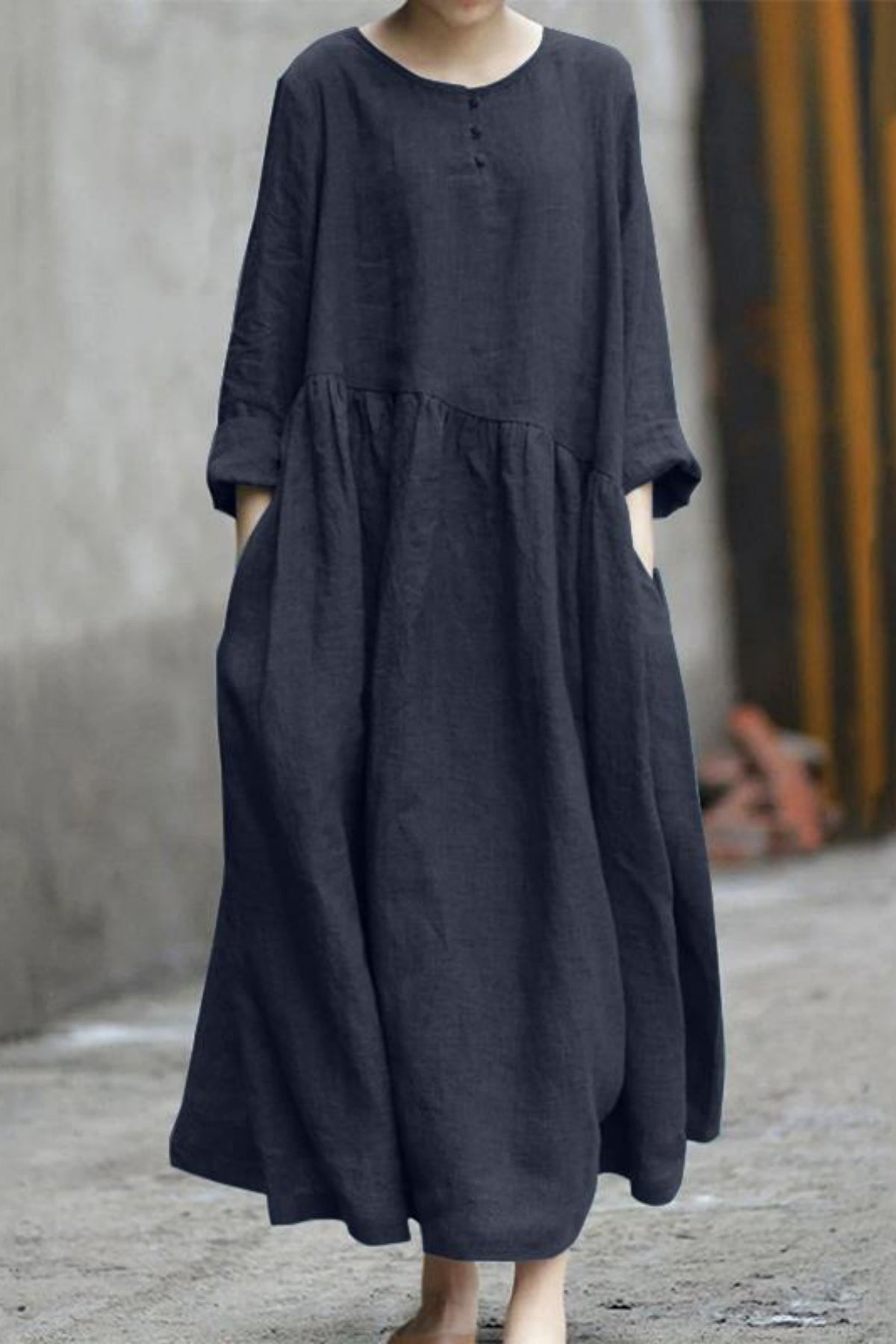 Cotton and Linen Stitching Round Neck Long Sleeve Dress