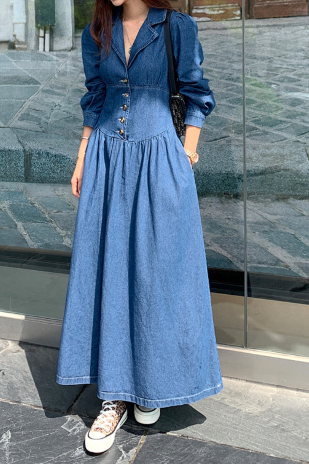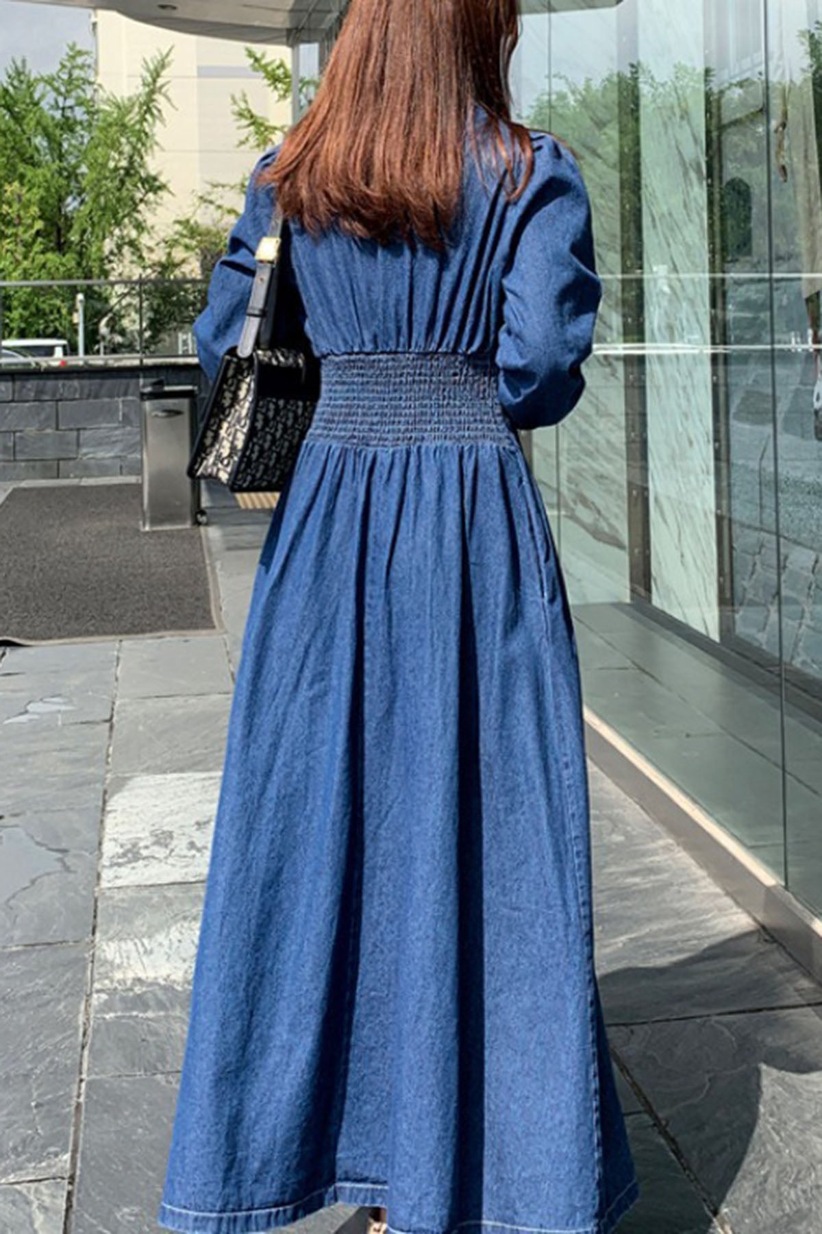 Elegant Suit Collar Long Sleeve Mid-Length Waist Slim Denim dress