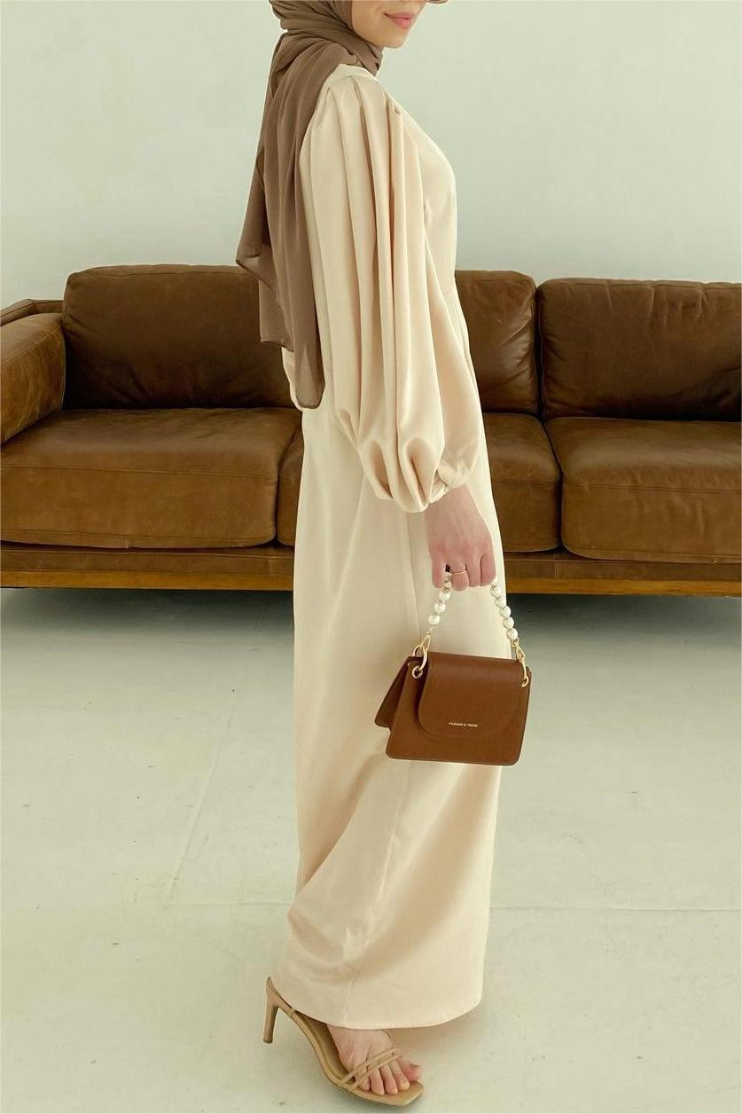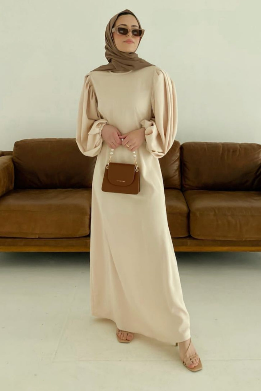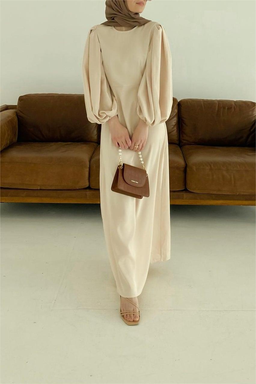 Duha and Hello Fatima bring you this stunning A-line maxi dress. Beautiful exaggerated balloon sleeves serve all the drama on this vintage gown. A comfortable round neckline and a natural waistline keeps this gown classy and timeless.