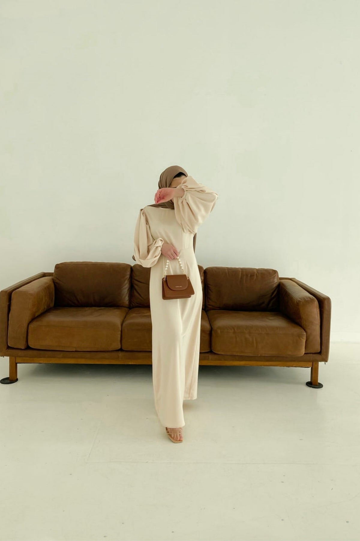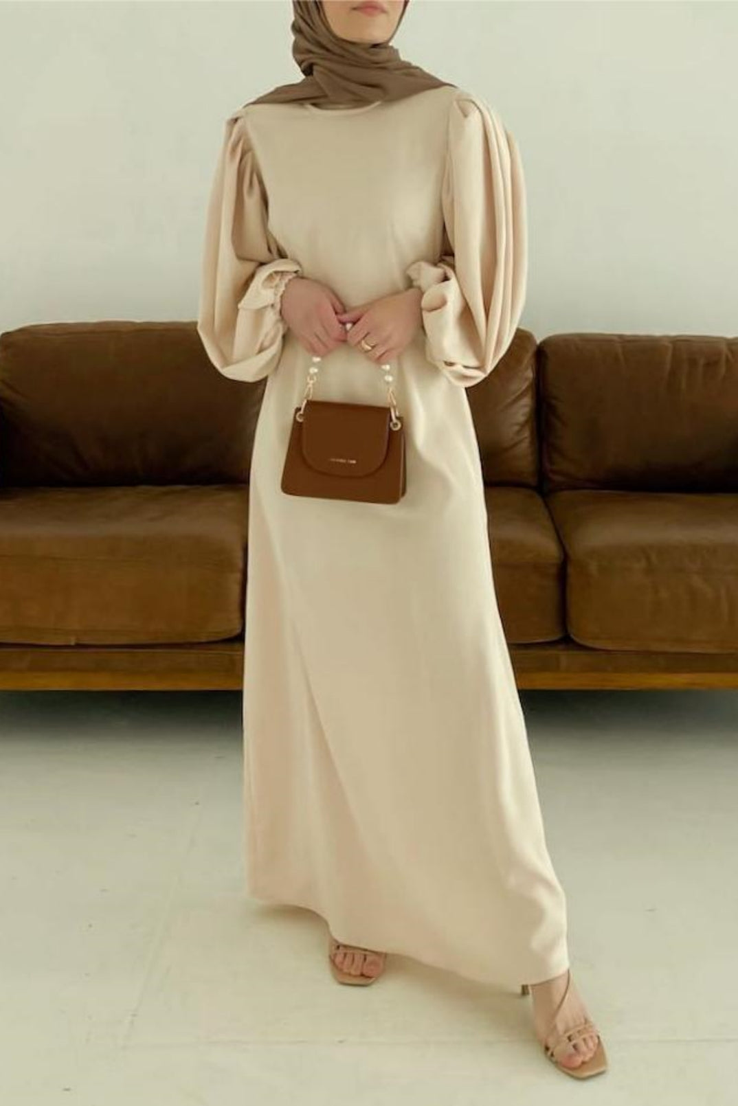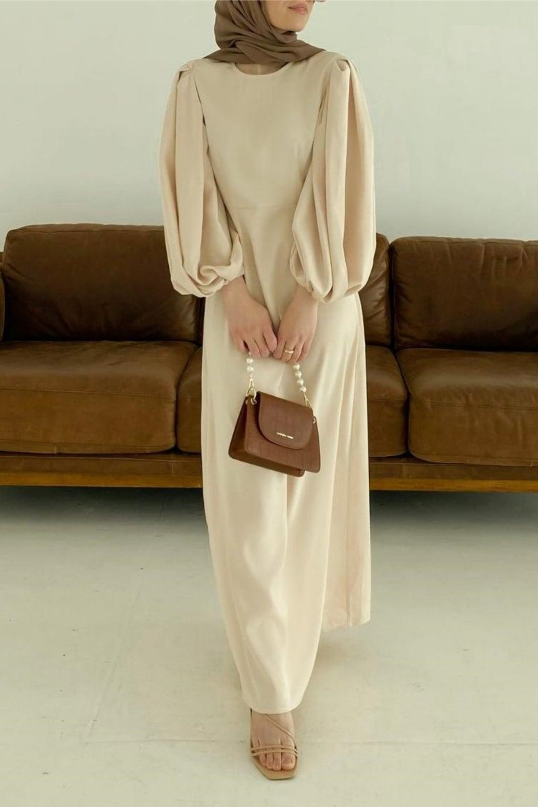 Duha and Hello Fatima bring you this stunning A-line maxi dress. Beautiful exaggerated balloon sleeves serve all the drama on this vintage gown. A comfortable round neckline and a natural waistline keeps this gown classy and timeless.