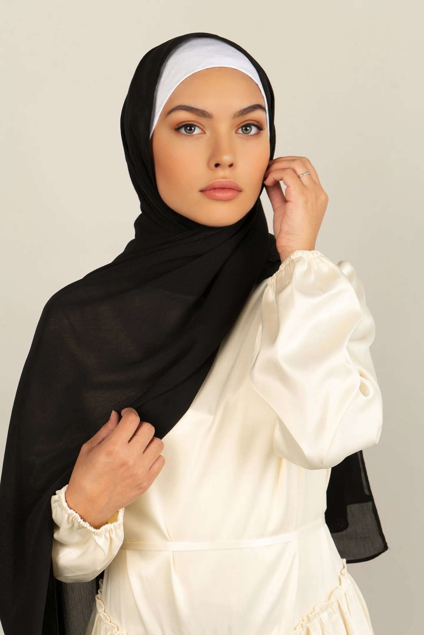 Our Crepe Chiffon Women's Scarves are so delicate and light yet incredibly chic with a crinkle texture. This scarf can be easily worn as a hijab or a wrap-around for any occasion, whether work, school, or formal events HelloFatima Chiffon scarves have got you covered. Eligible for free shipping!