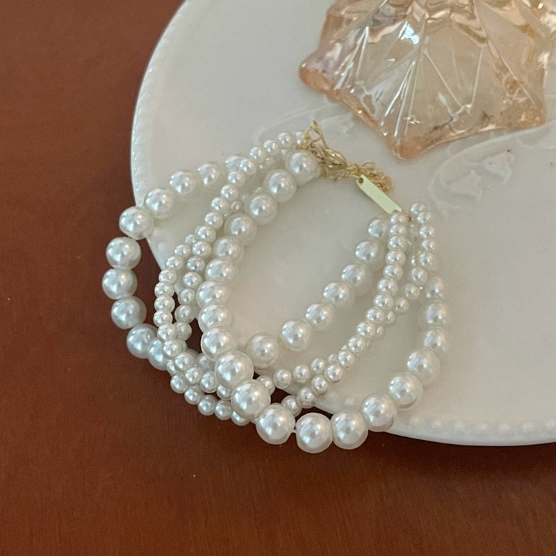 Regal French Multi-layered Round Pearl Bracelet