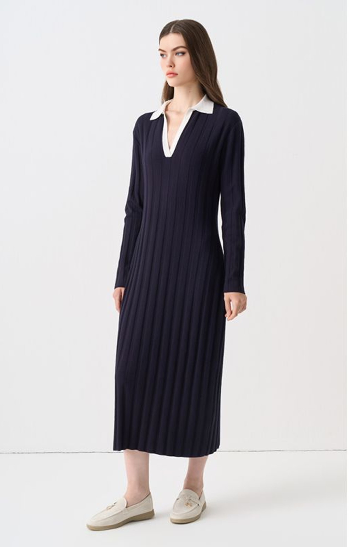 The comfortable but fashionable look has won the award for excellence, meet the most fashion sporty look with this Dress Style: Dress Neckline: V Neck Sleeve Length: Long Sleeves Occasion: Casual, Sporty Design: Knitted, Contrast, Ribbed Closure: Slip On Length: Calf Length Model Measurements: Height: 175cm, Waist: 59cm Model is Wearing: Small