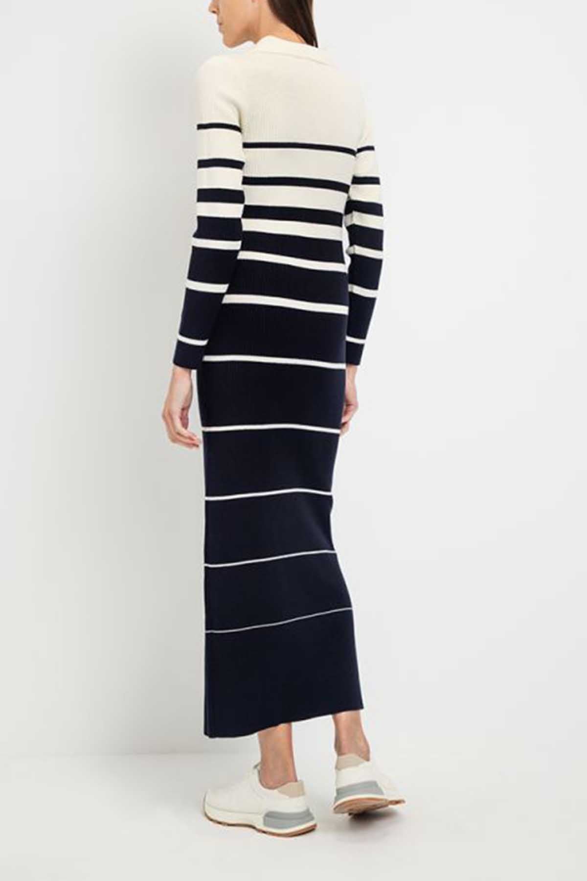 Knitted Contrast Striped Ribbed Dress