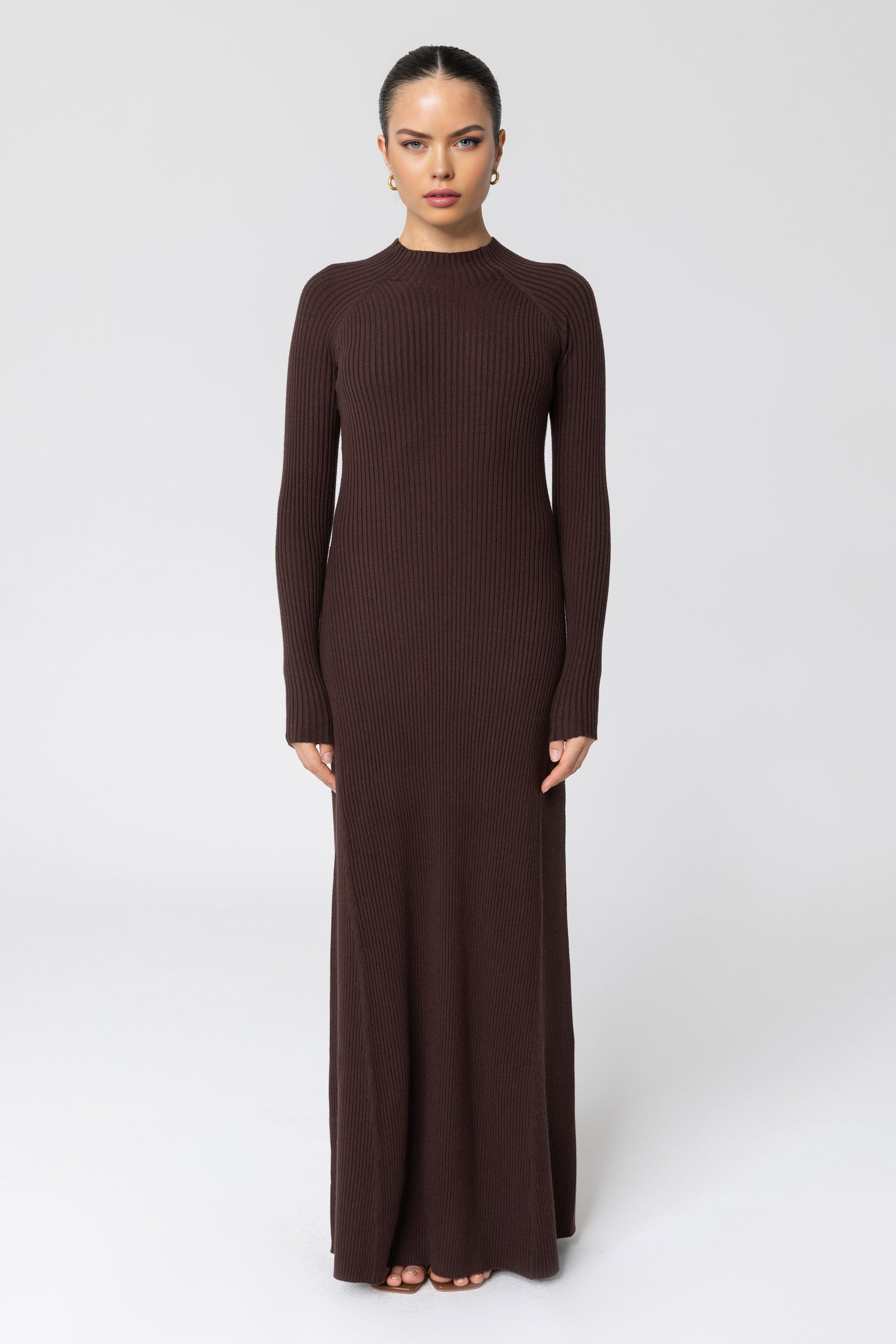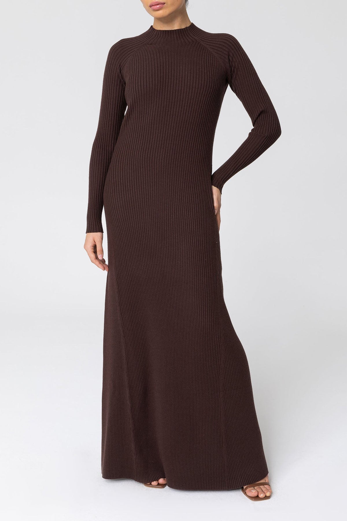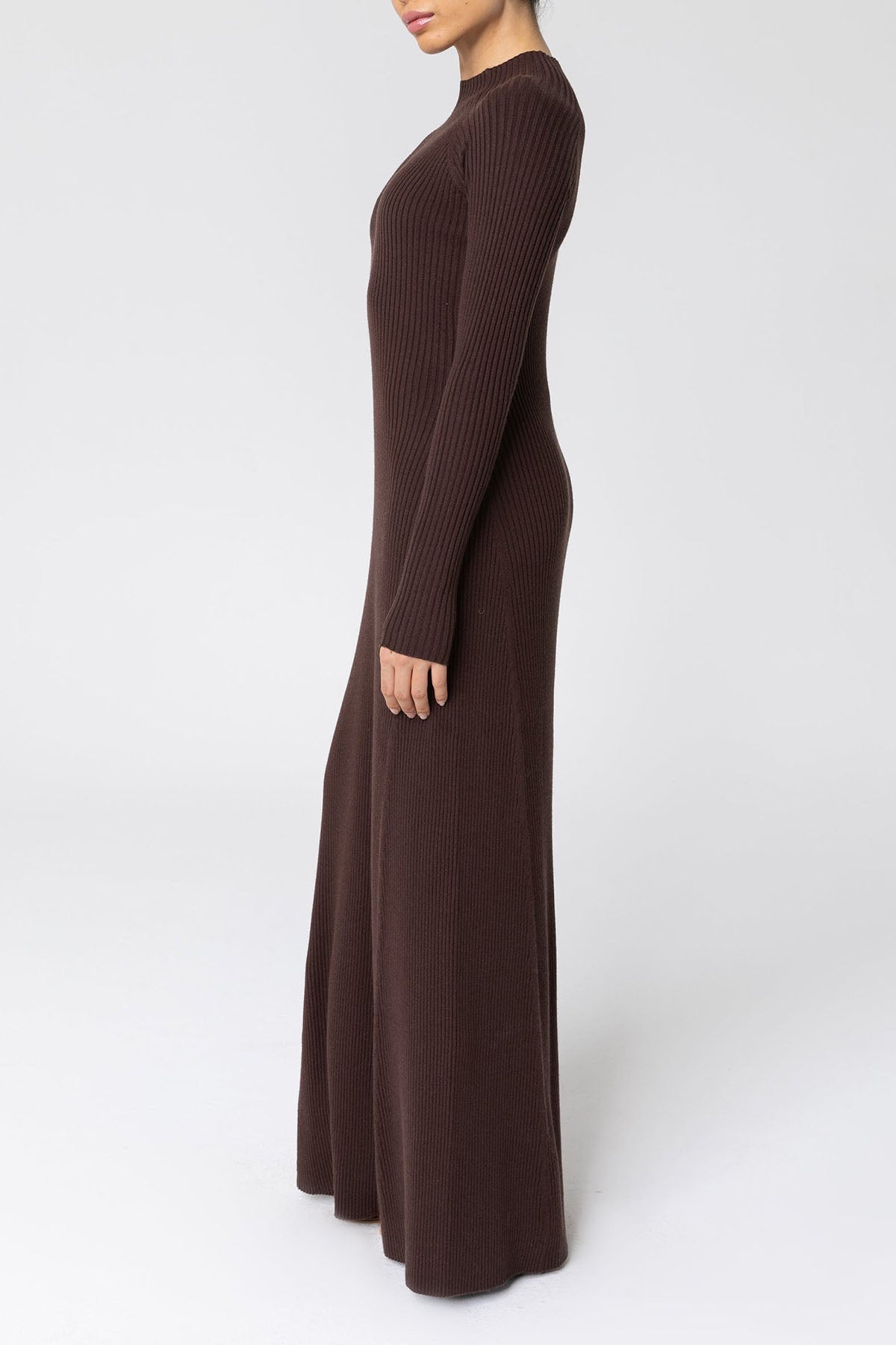 Marwa Ribbed Knit Maxi Dress - Brown