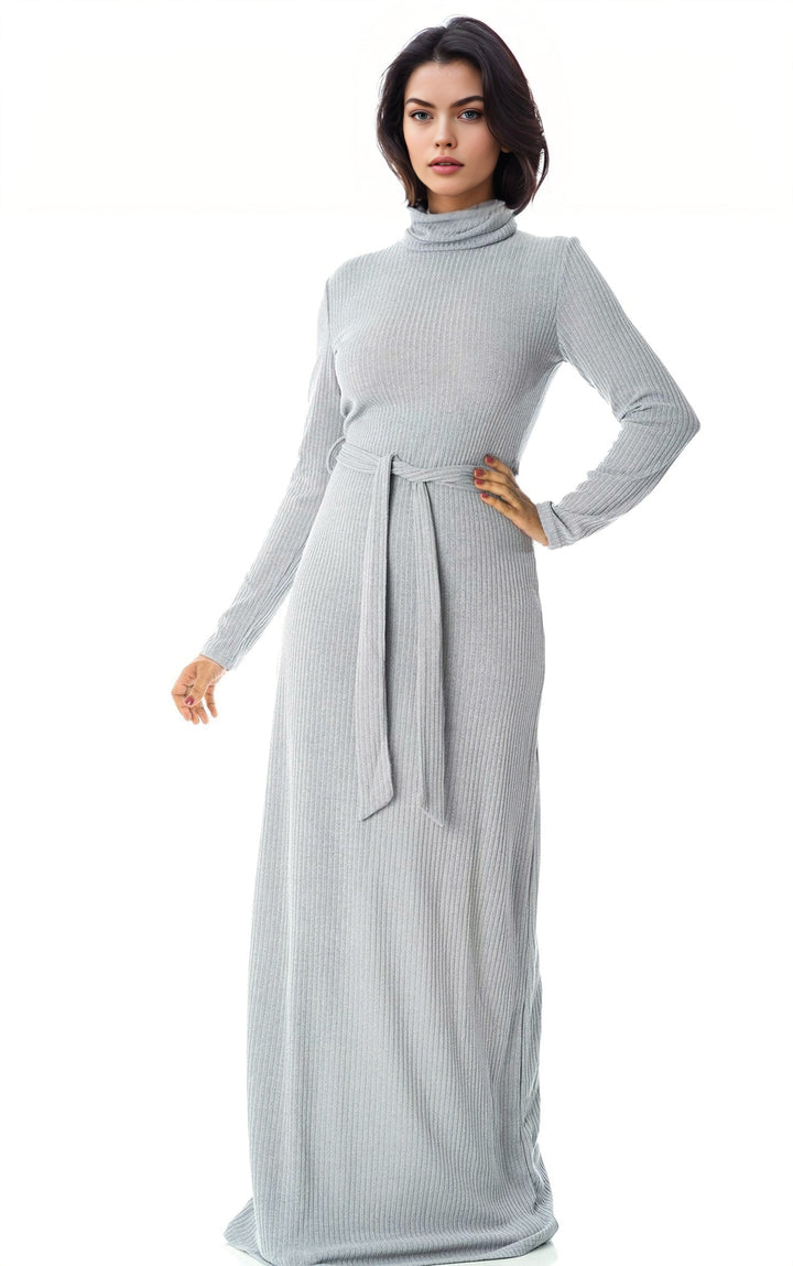 Take a step up from jersey this season with some ribbed fabric. Every wardrobe needs some texture. This Turtleneck ribbed maxi dress is so soft and perfect for this fall season.