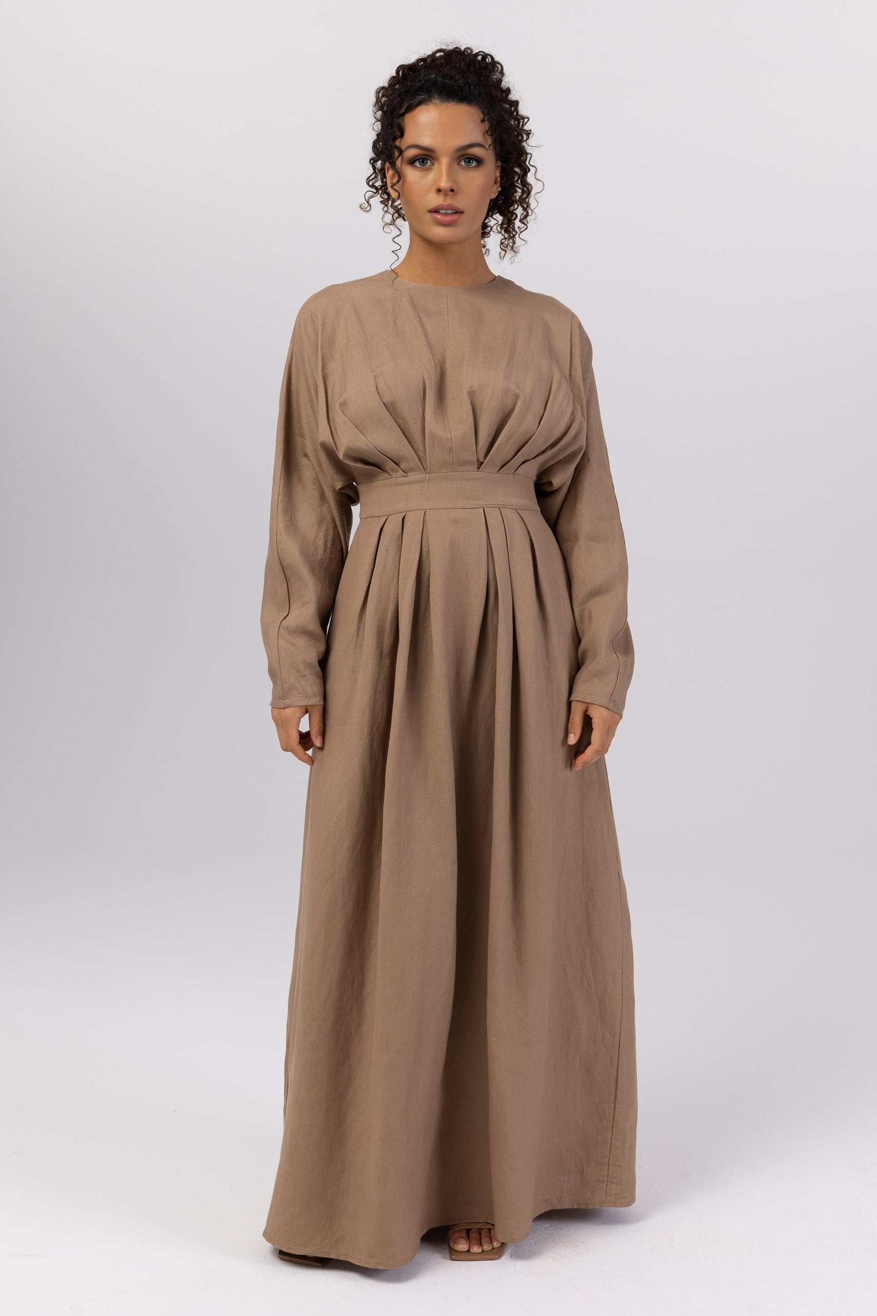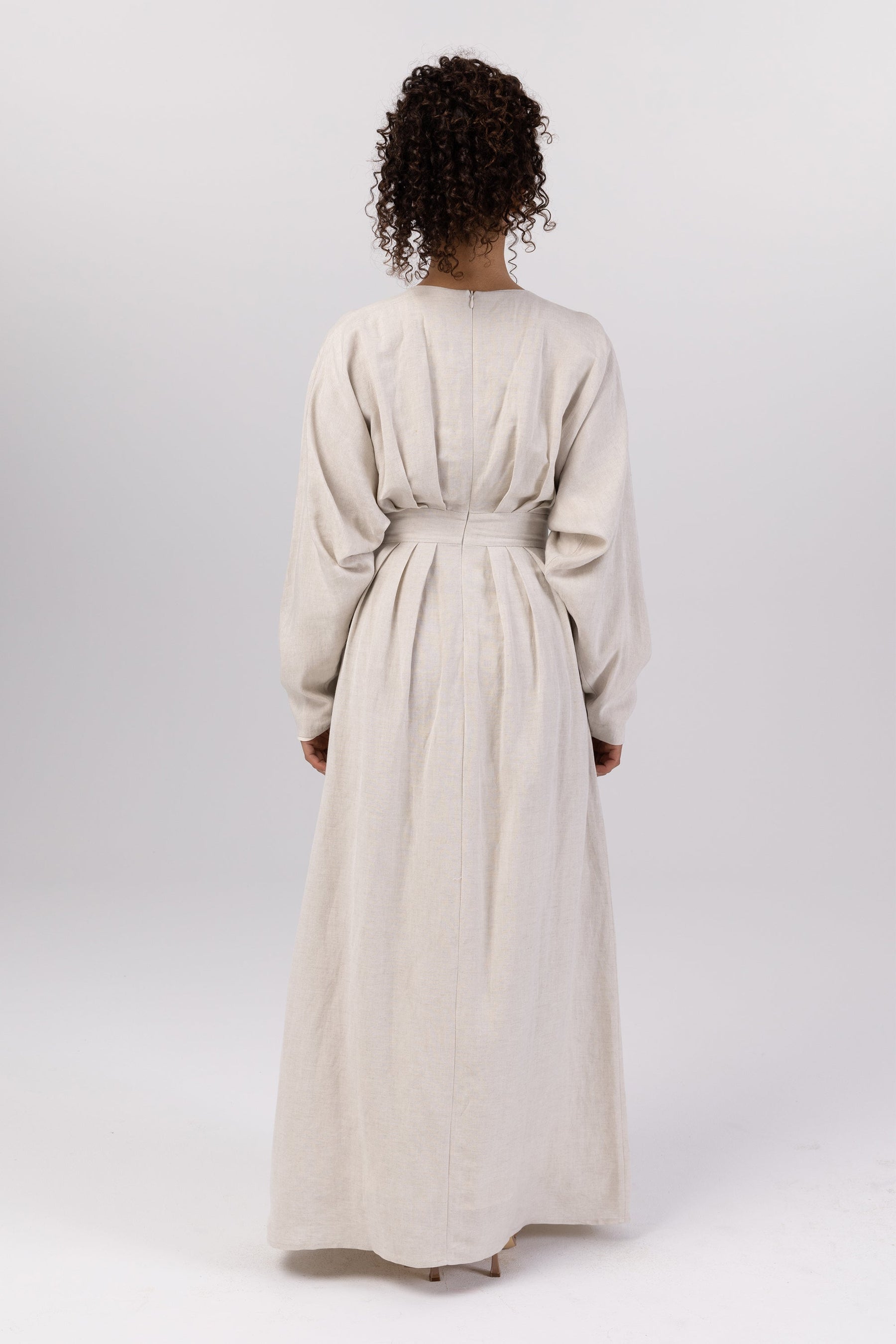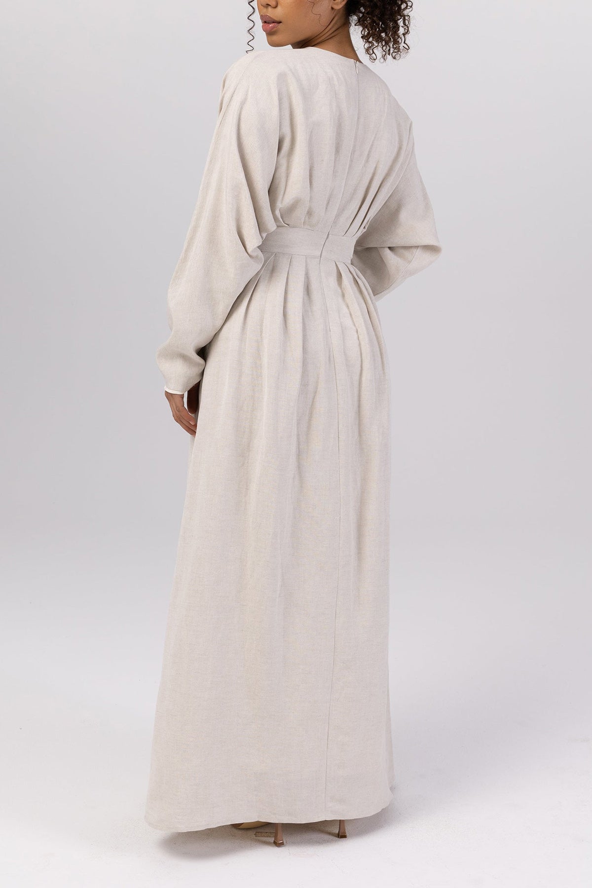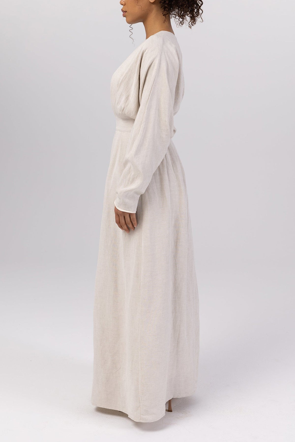 Karima Flowy Linen Maxi Shirt Dress - Taupe