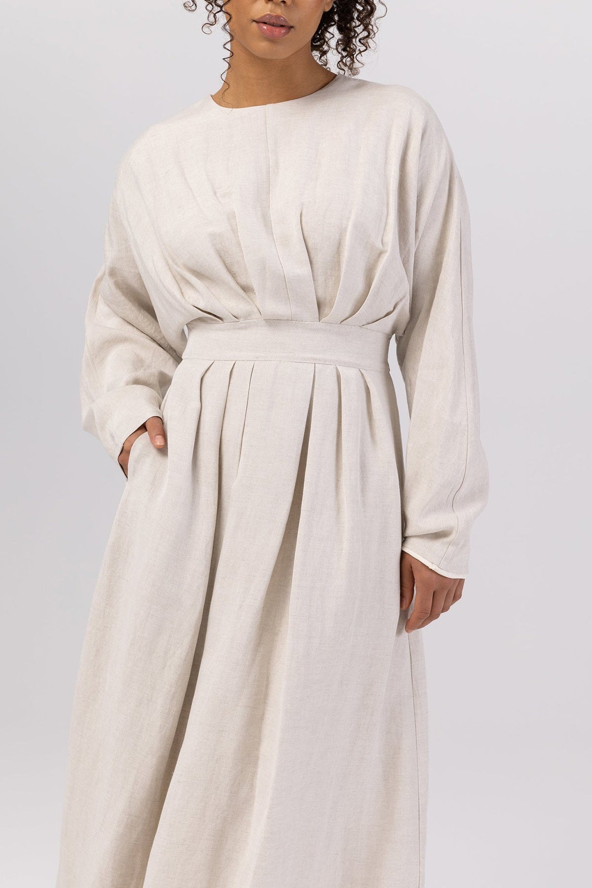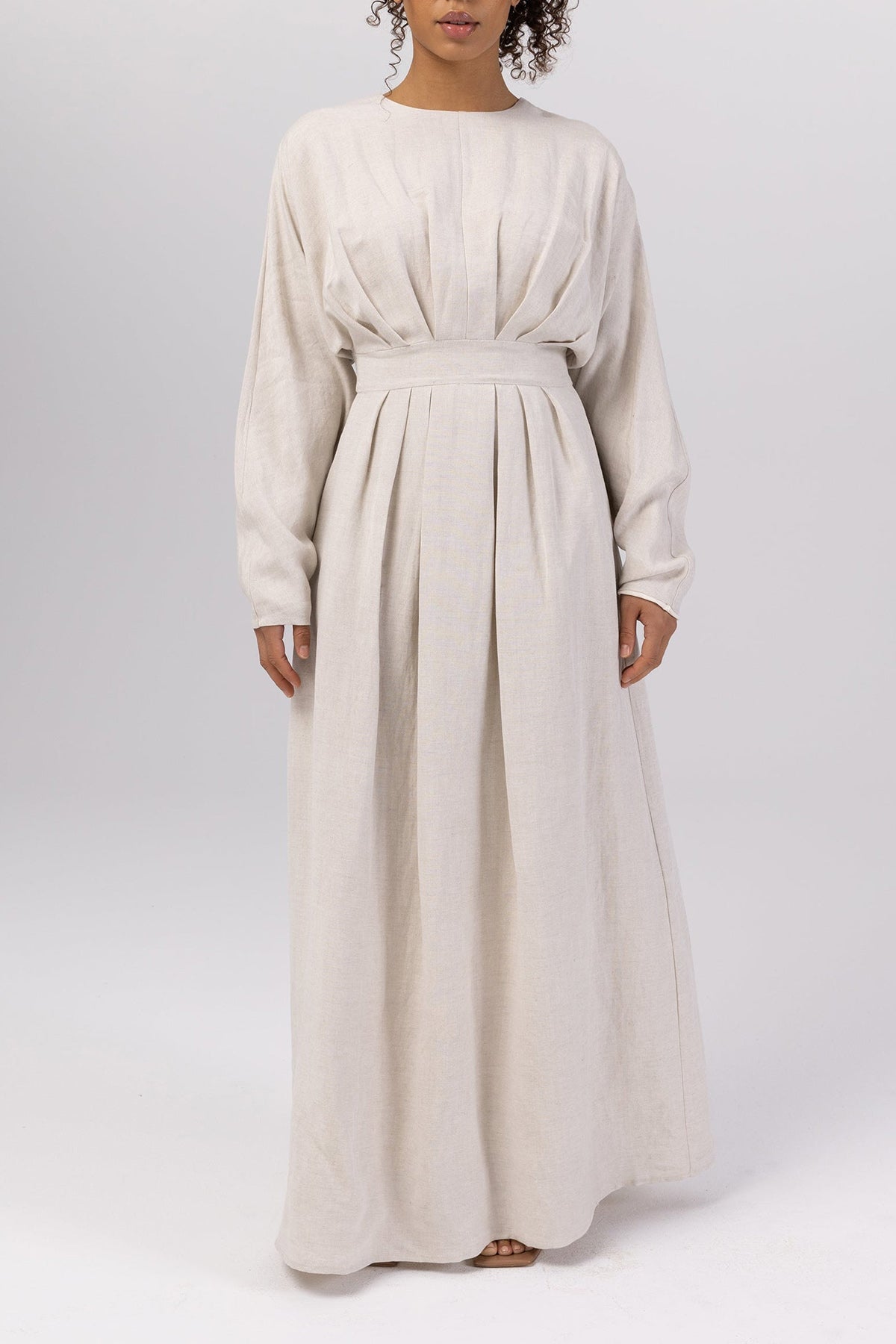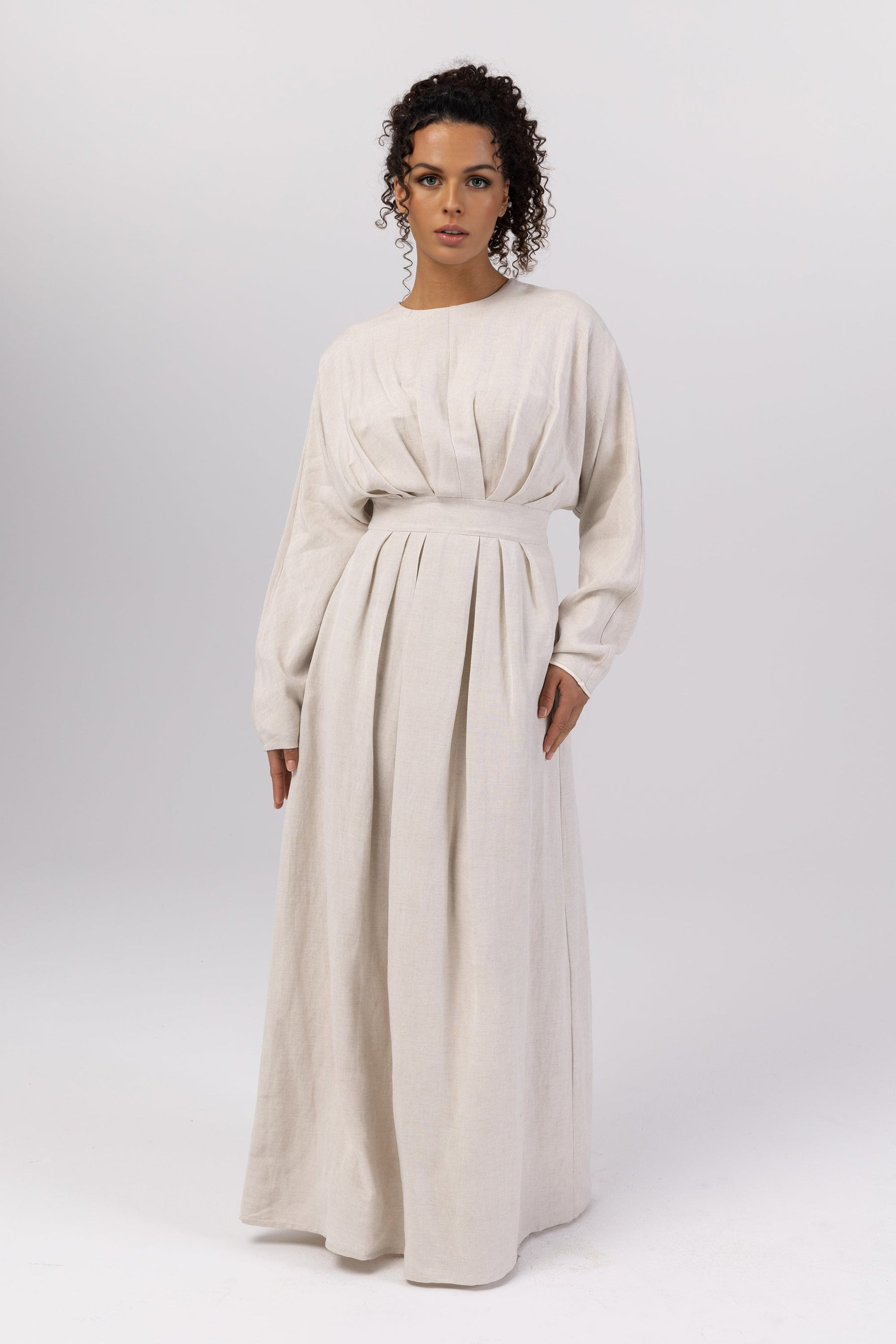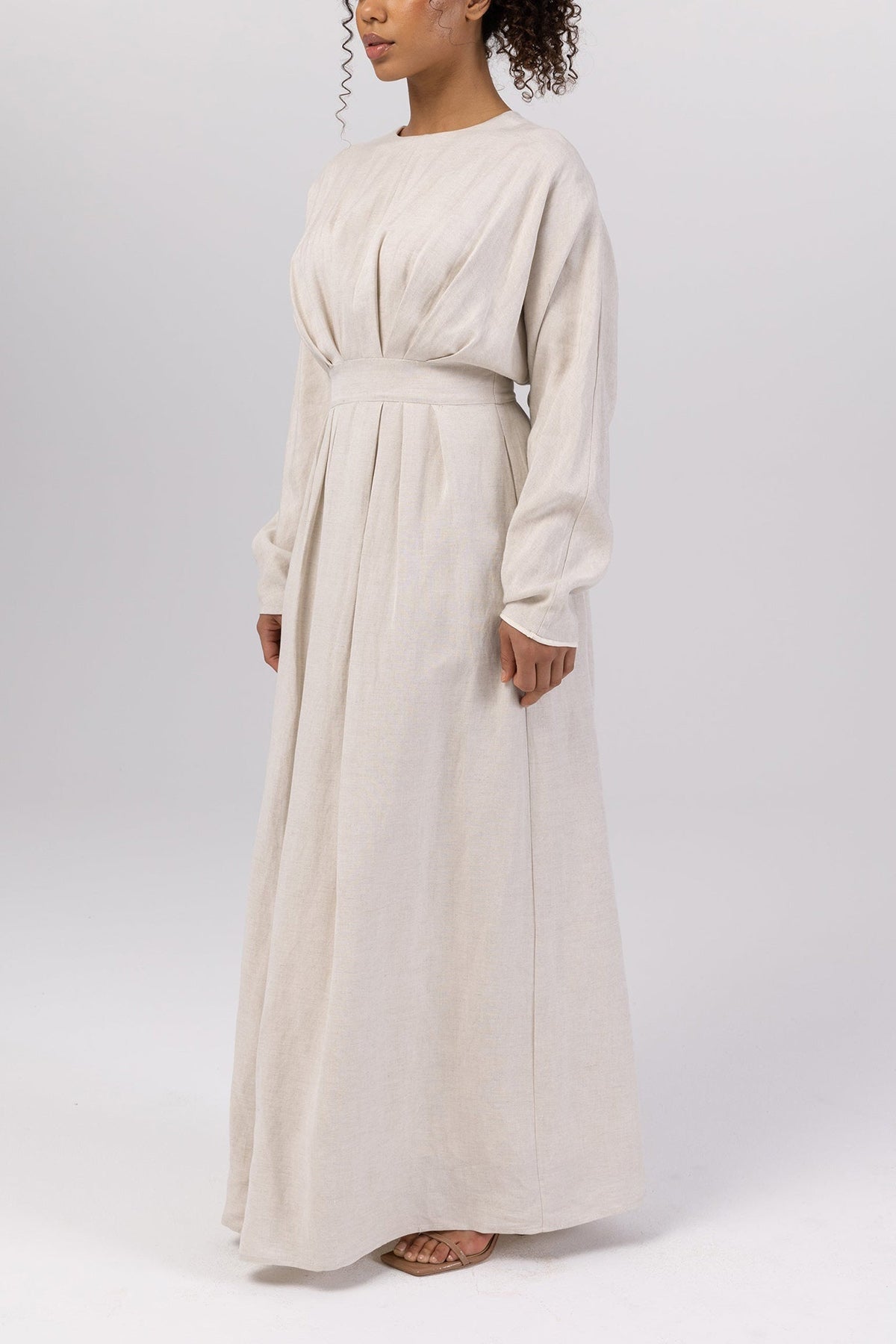 Karima Flowy Linen Maxi Shirt Dress - Taupe