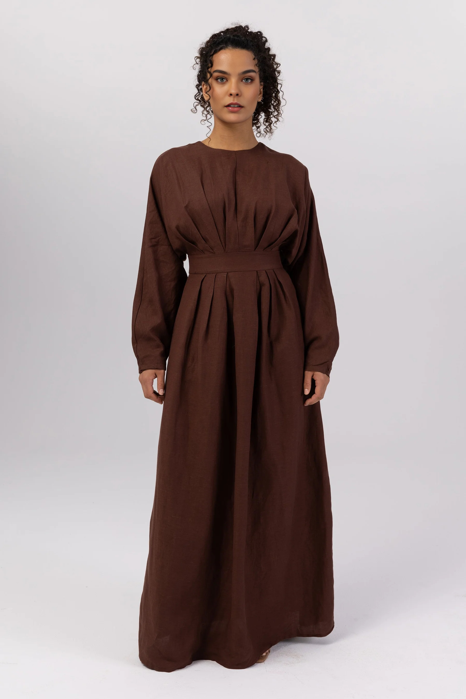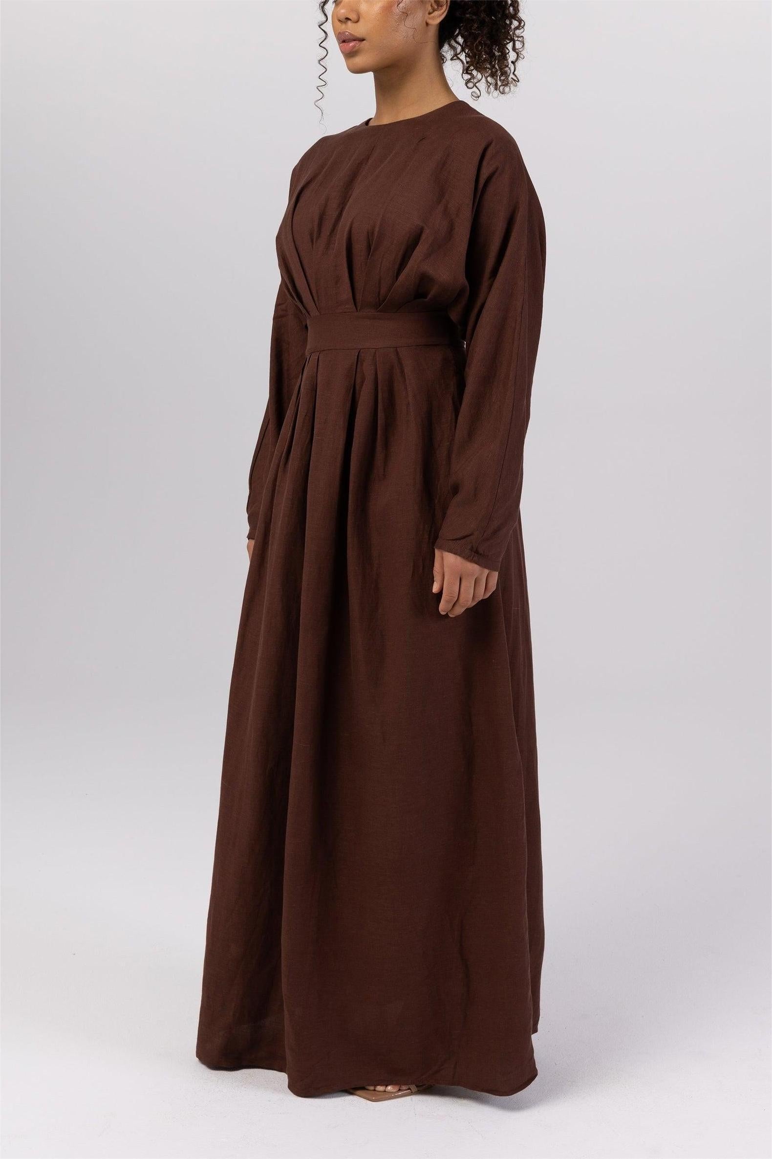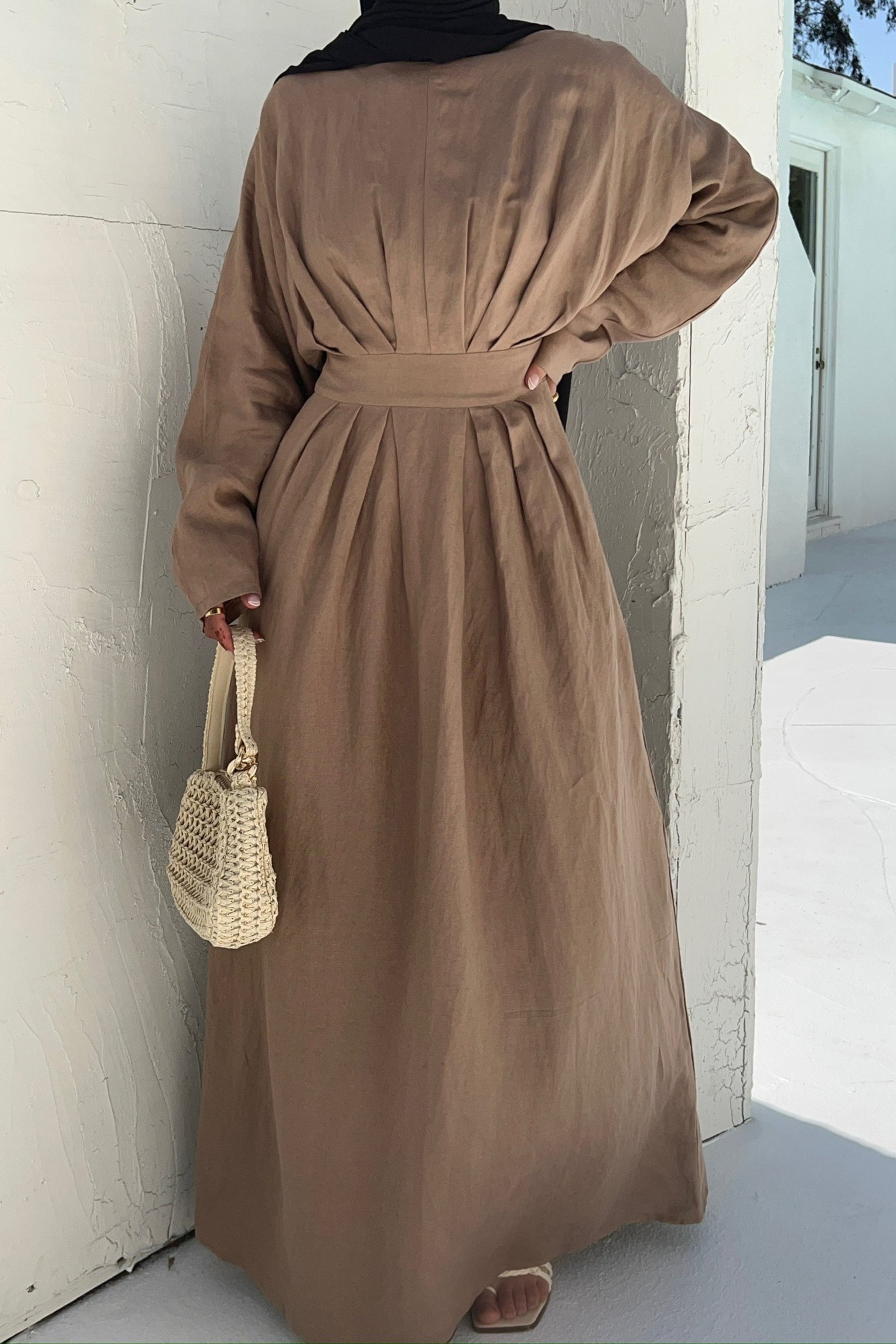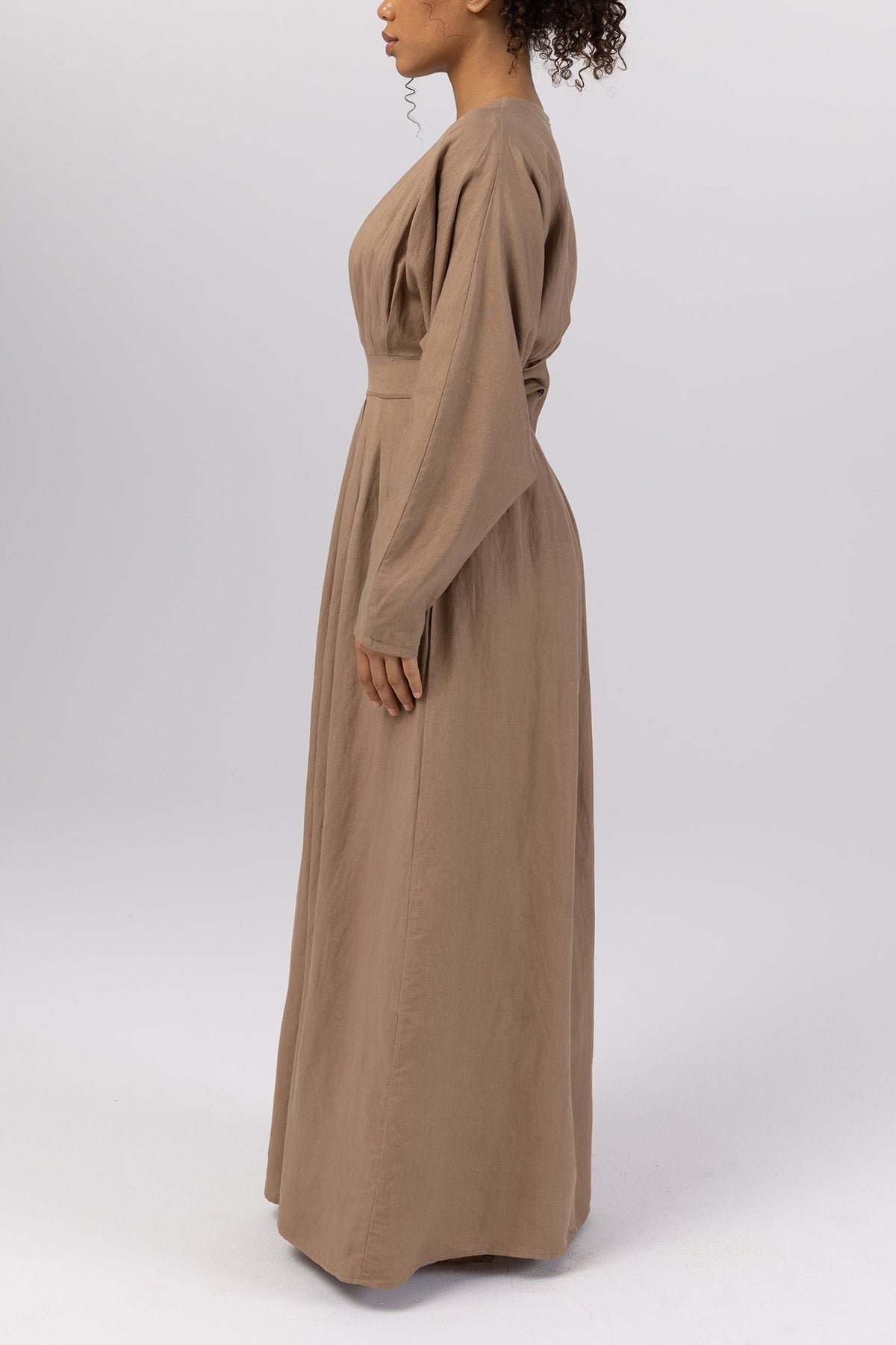 Sabah Cotton Linen Overlay Maxi Shirt Dress -Brown