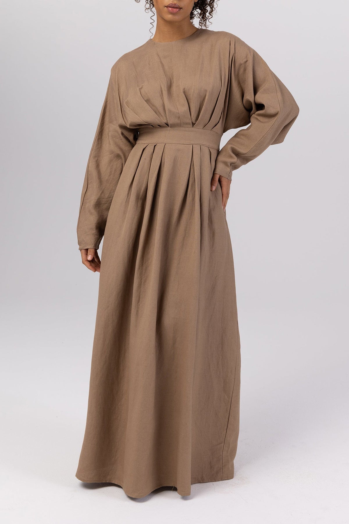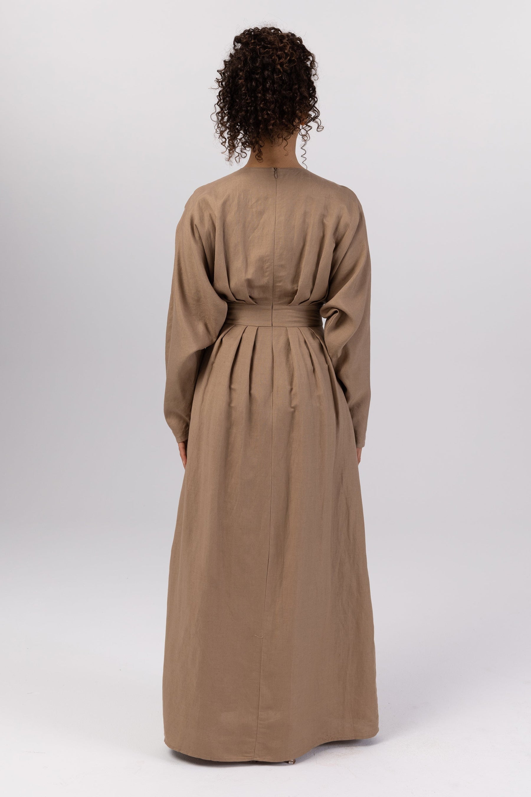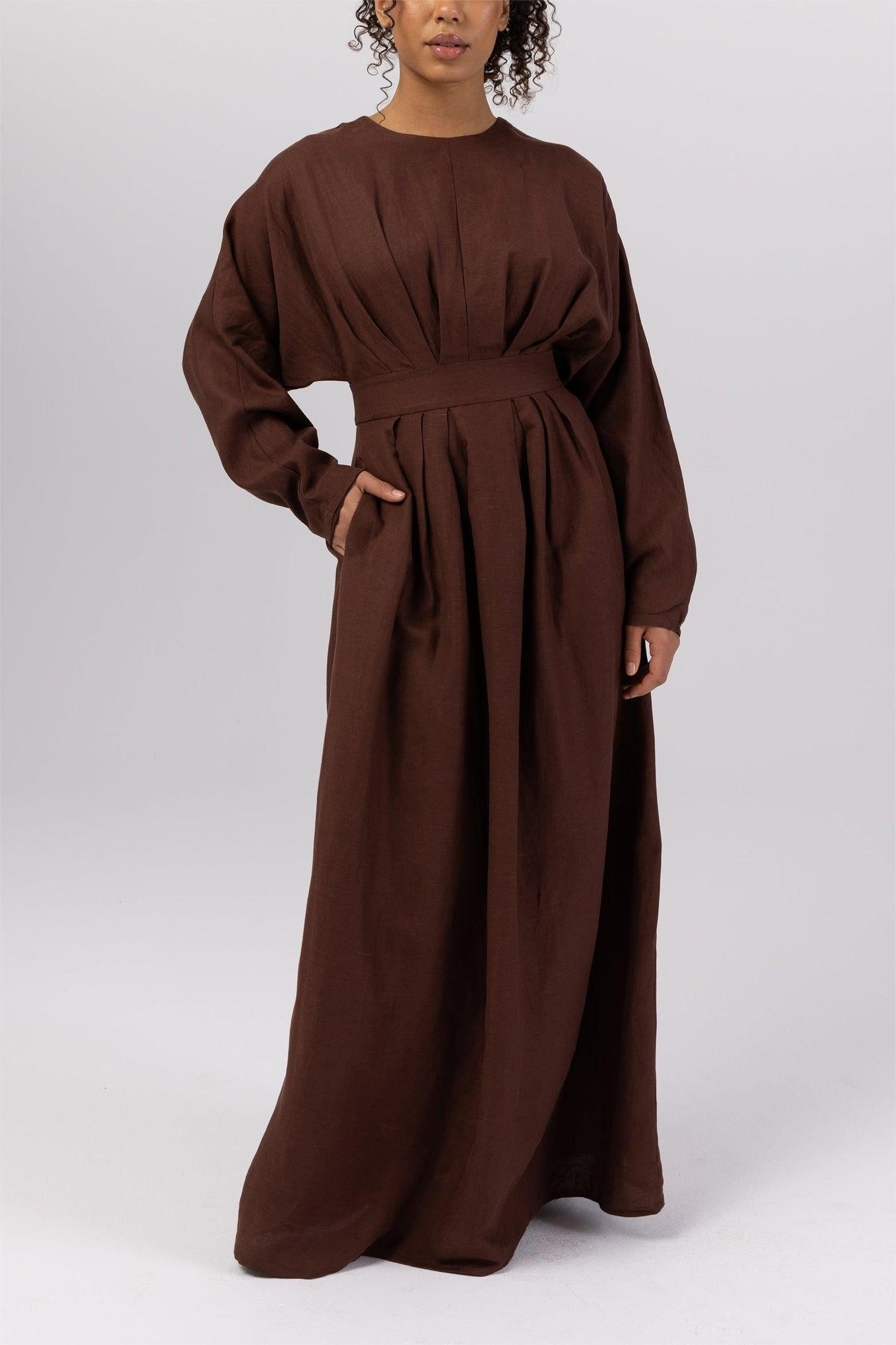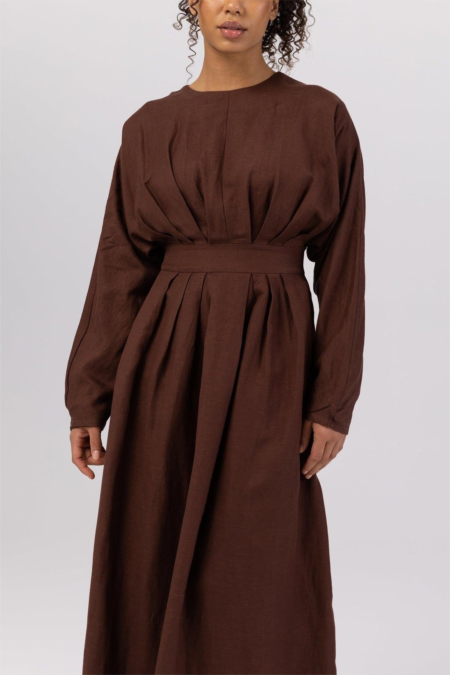Sabah Cotton Linen Overlay Maxi Shirt Dress -Brown