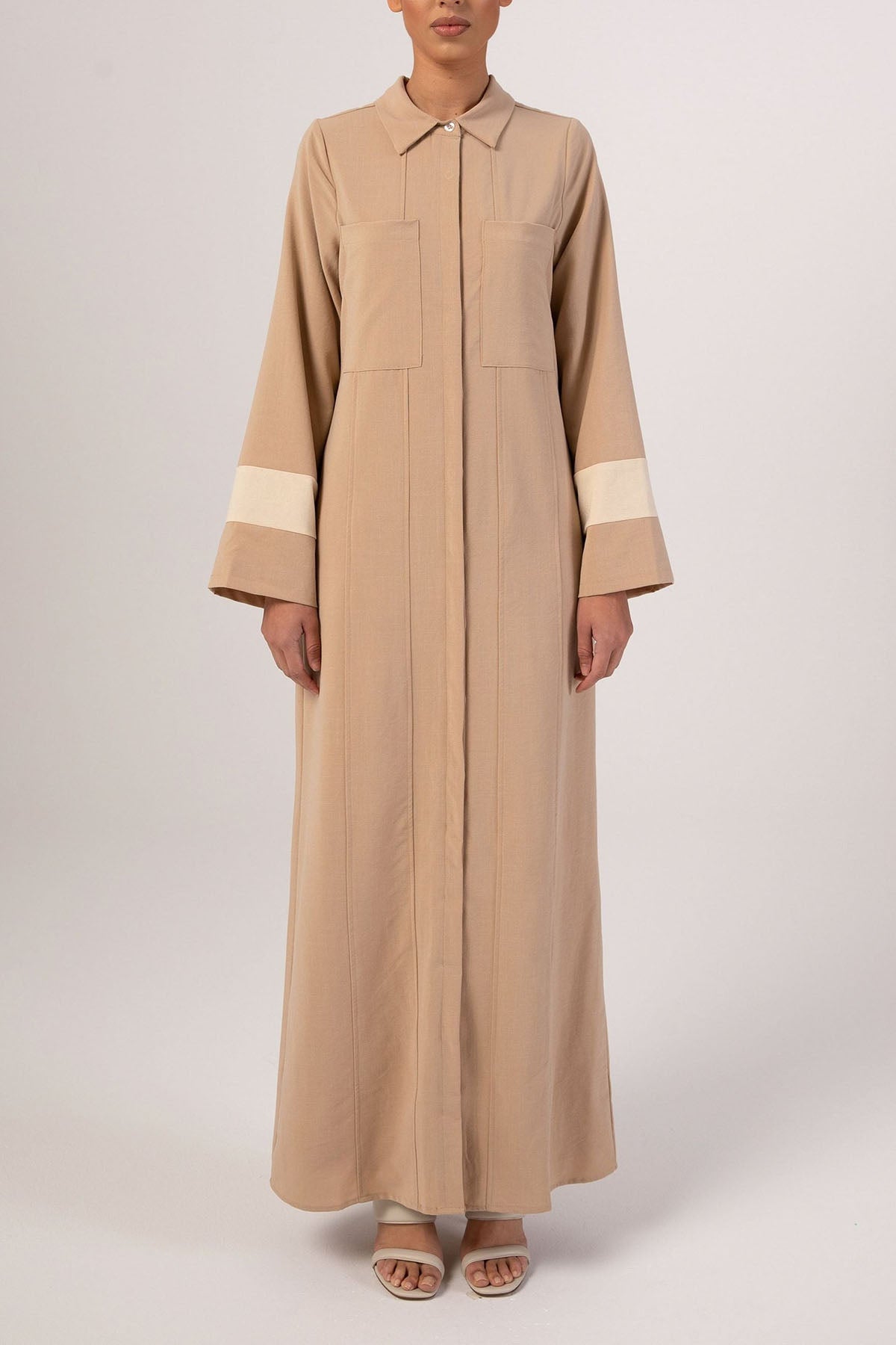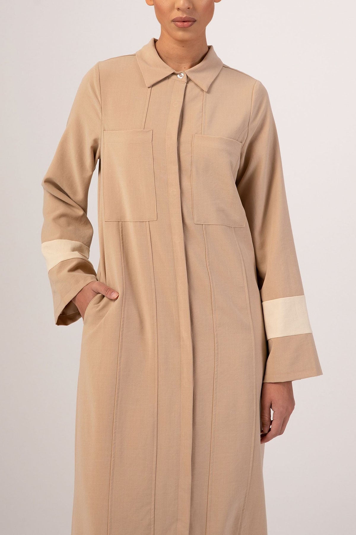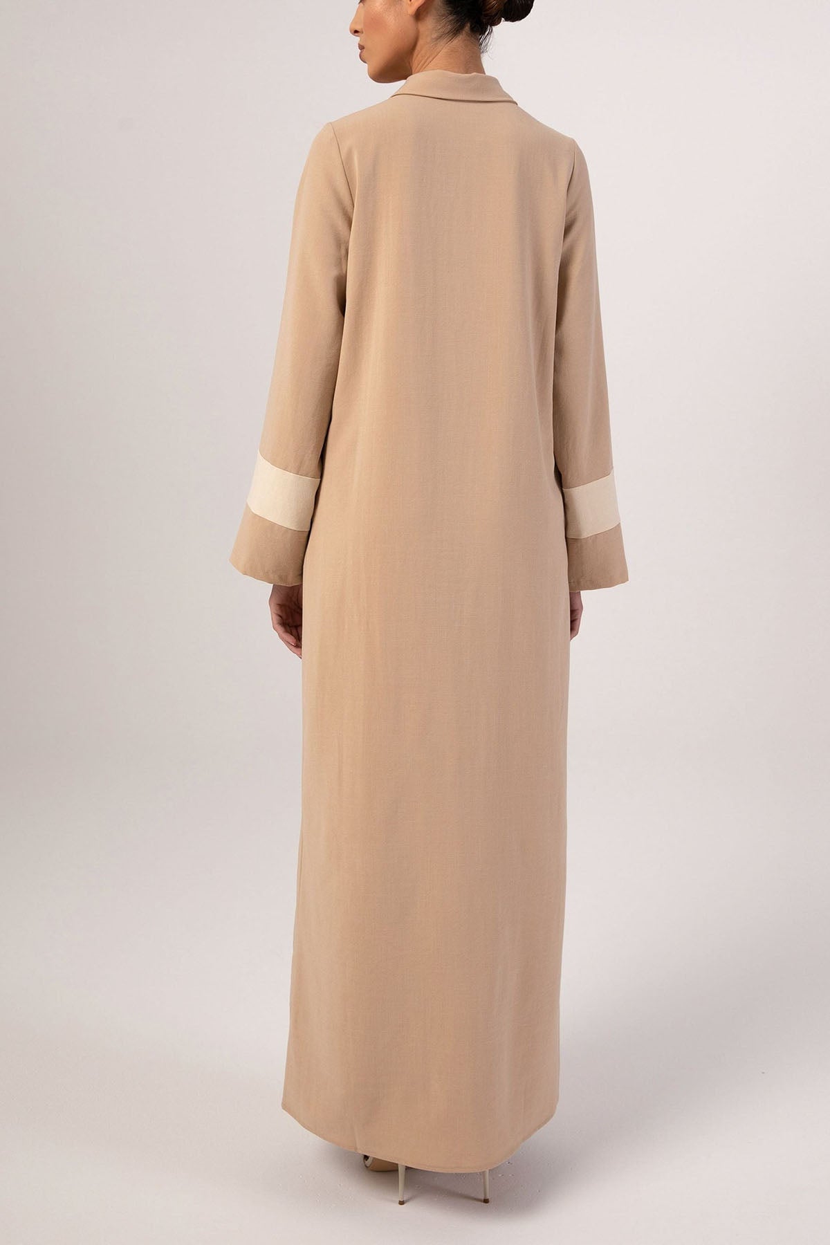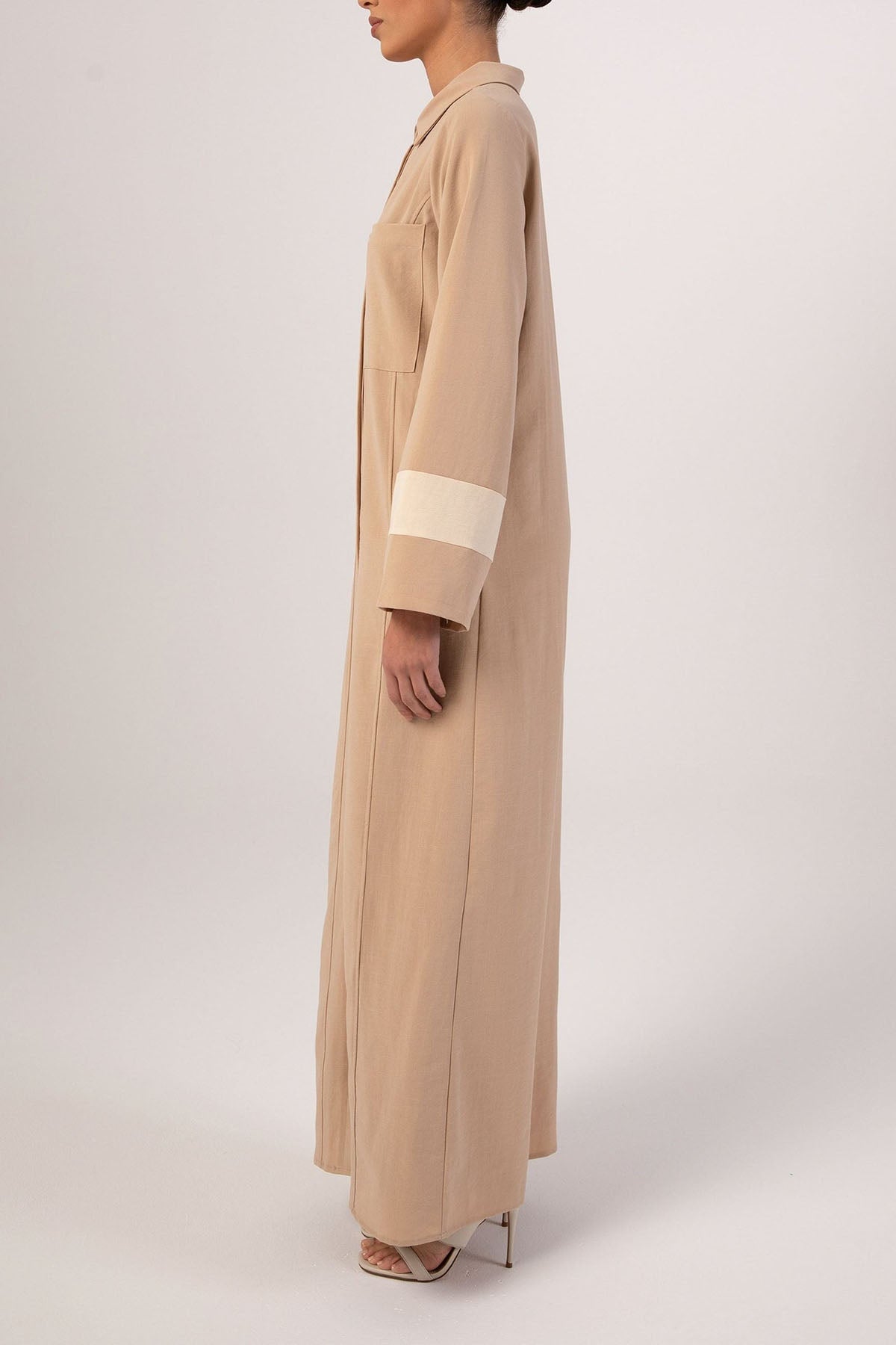 Sabah Cotton Linen Overlay Maxi Shirt Dress -Brown