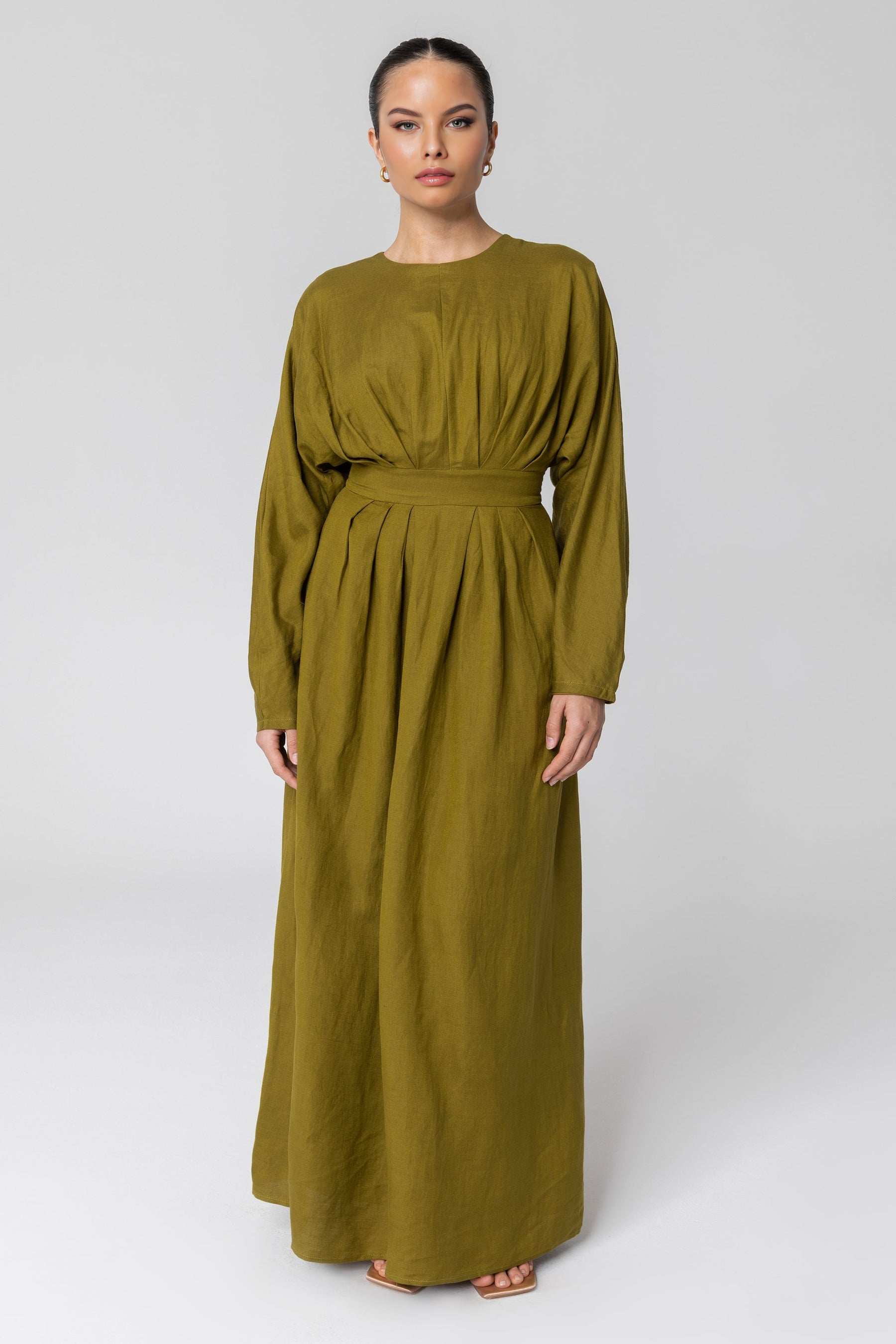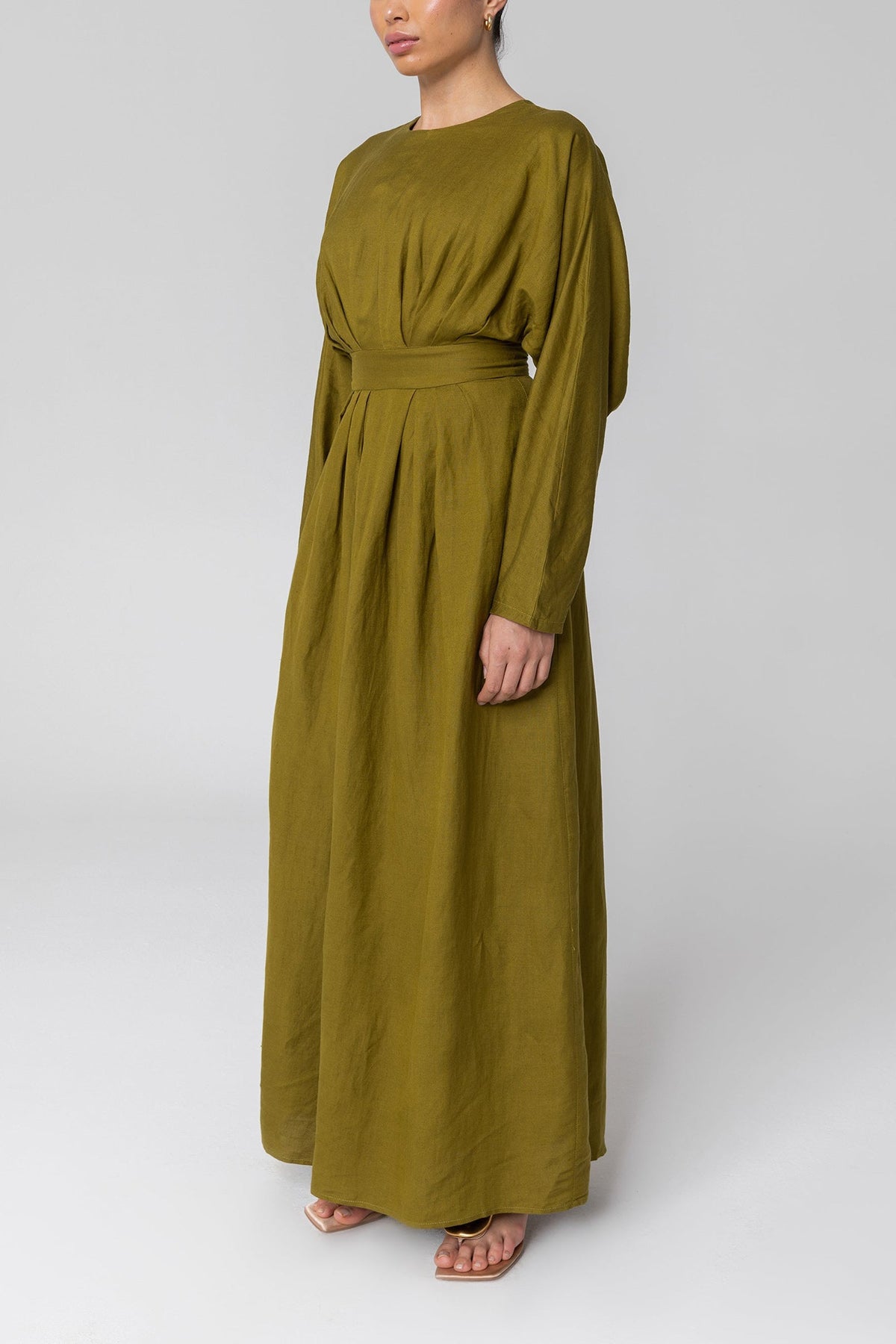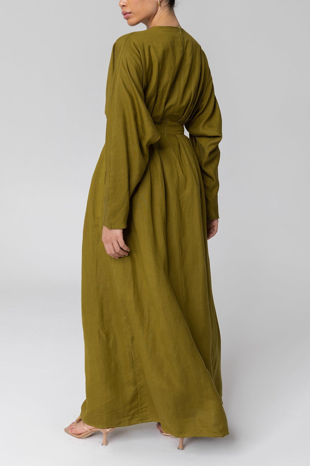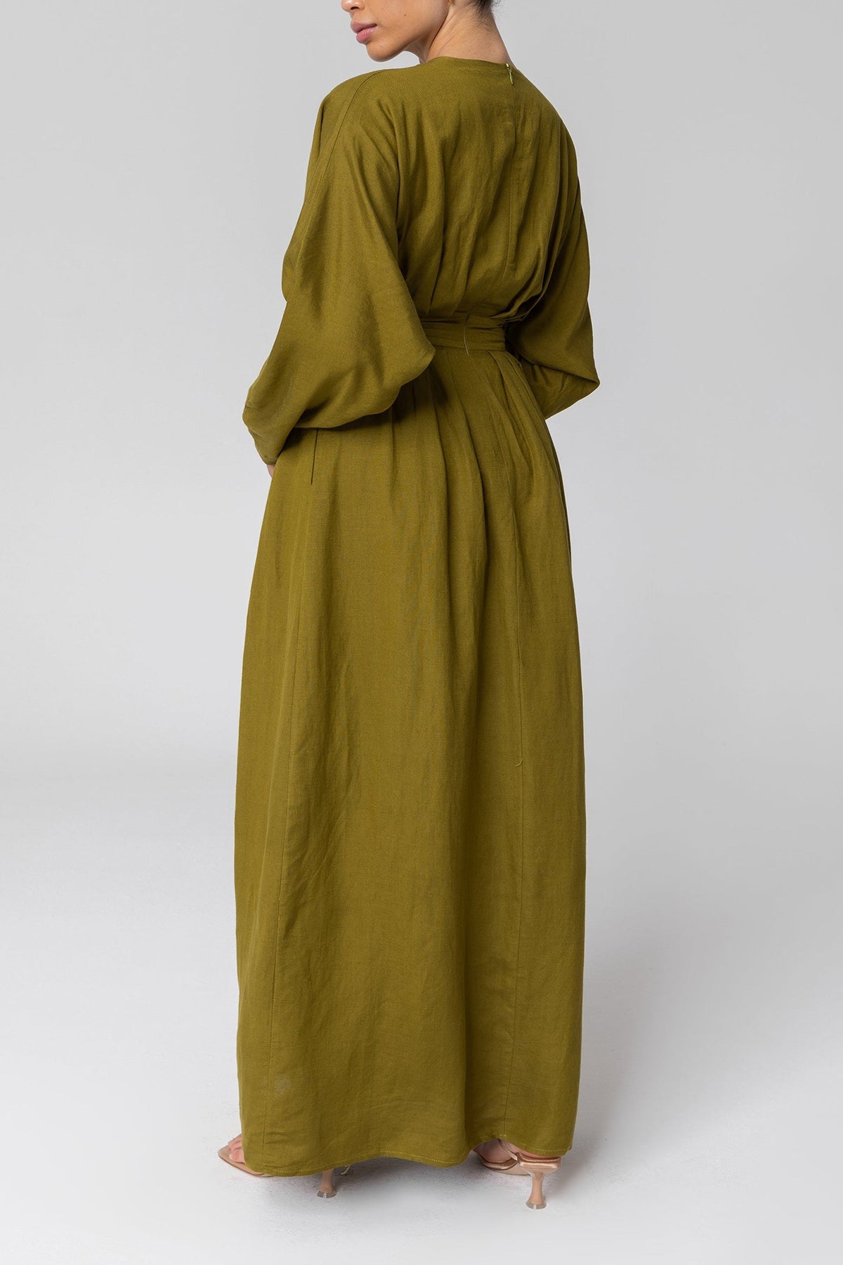 Elham Cotton Linen Maxi Shirt Dress - Avocado