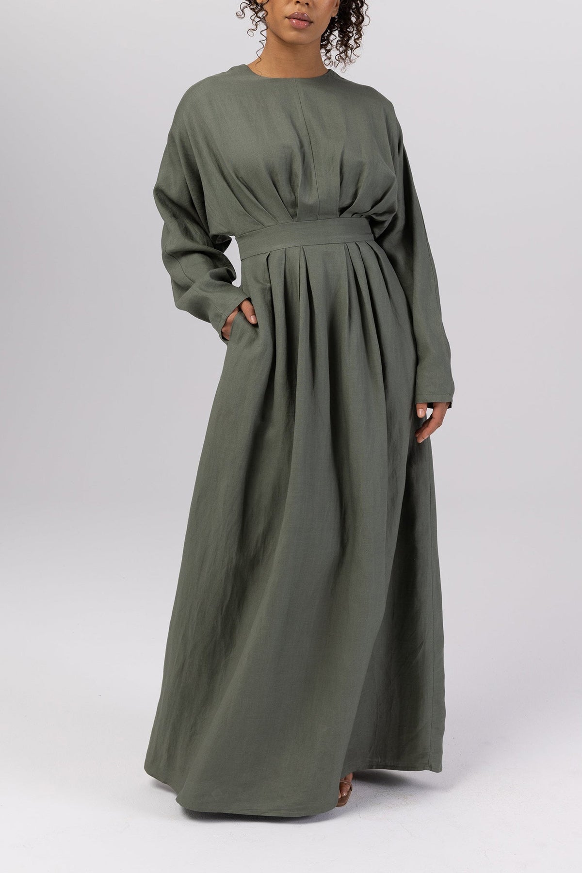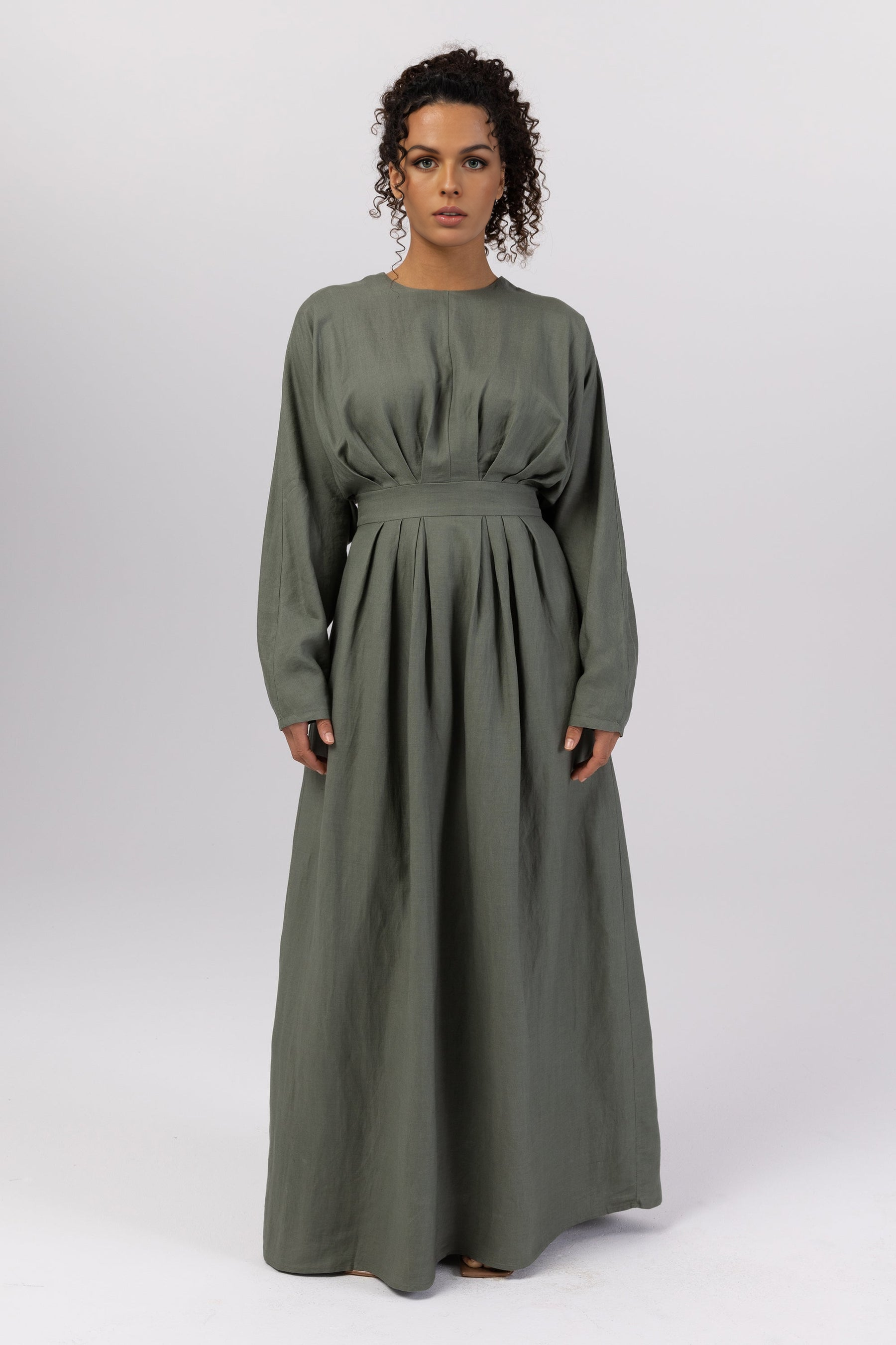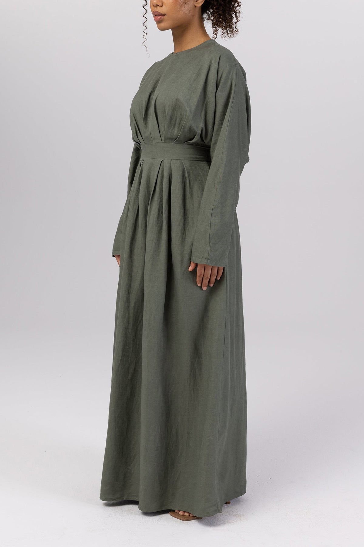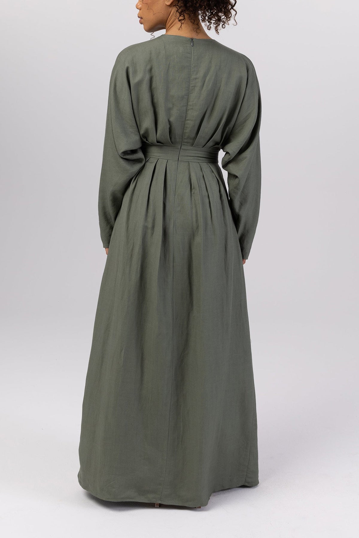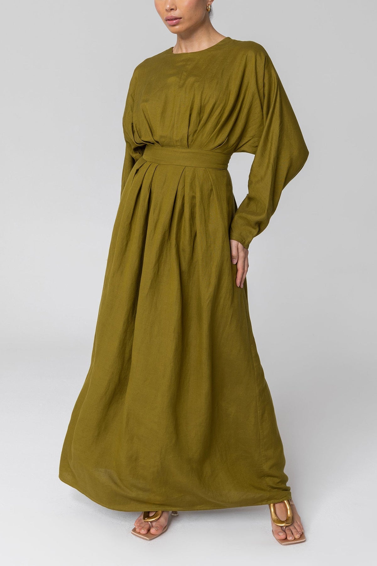 Elham Cotton Linen Maxi Shirt Dress - Avocado
