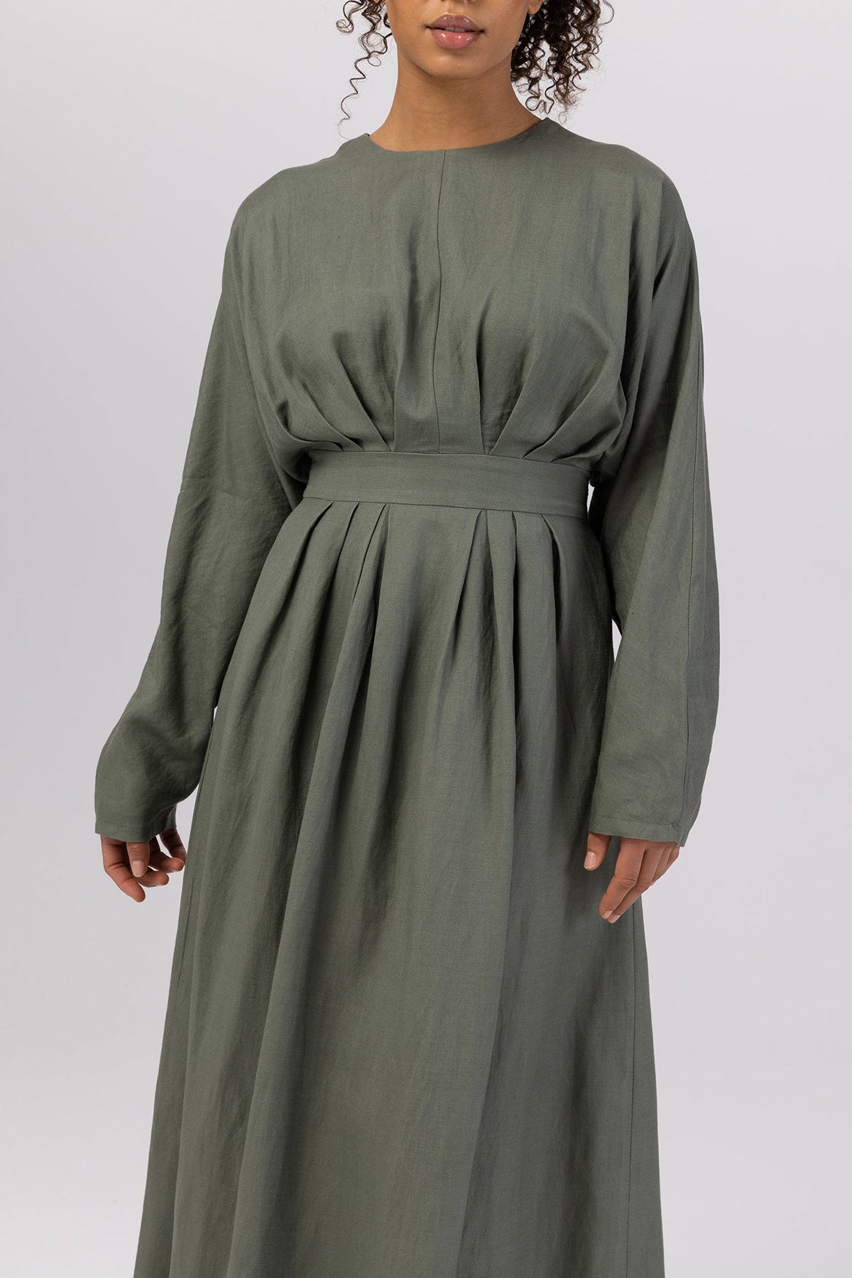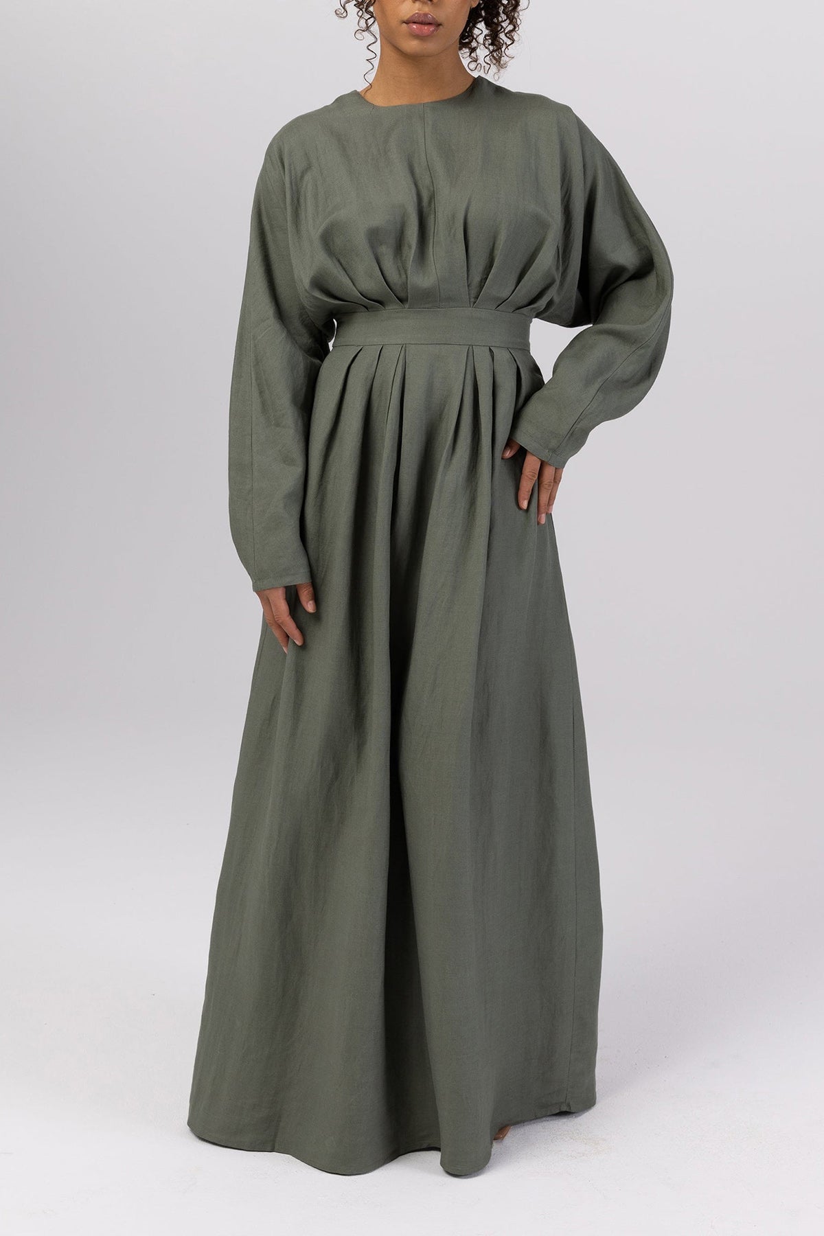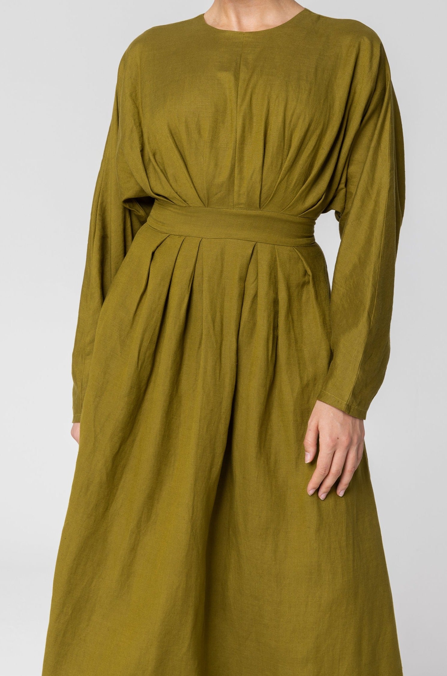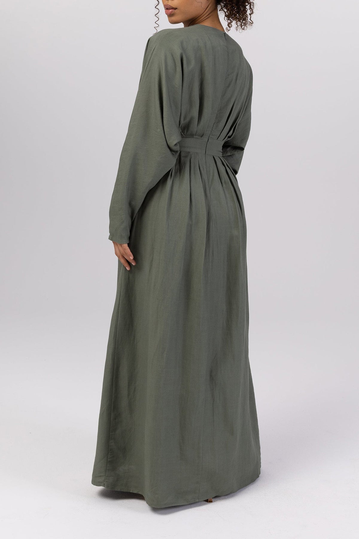 Elham Cotton Linen Maxi Shirt Dress - Avocado