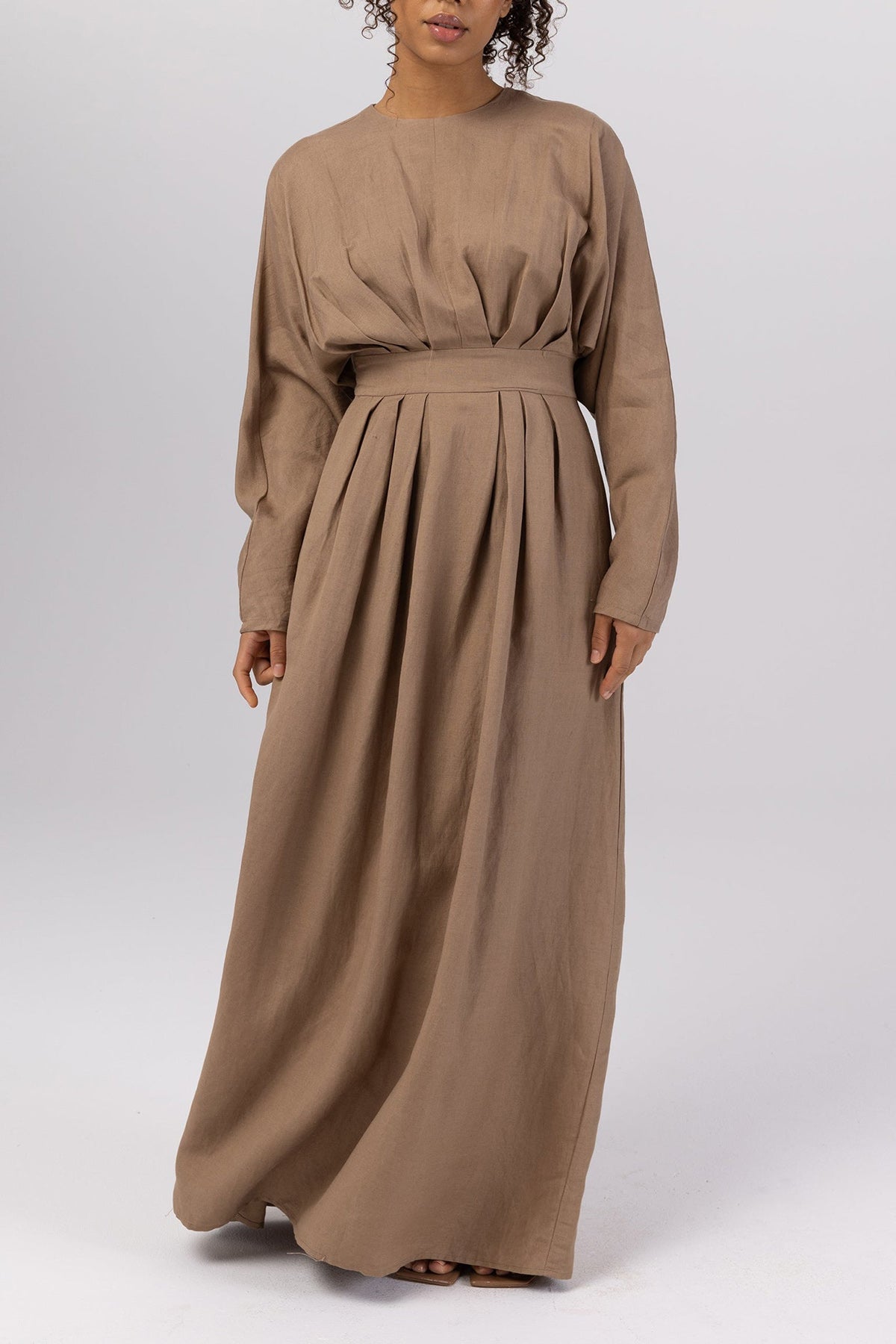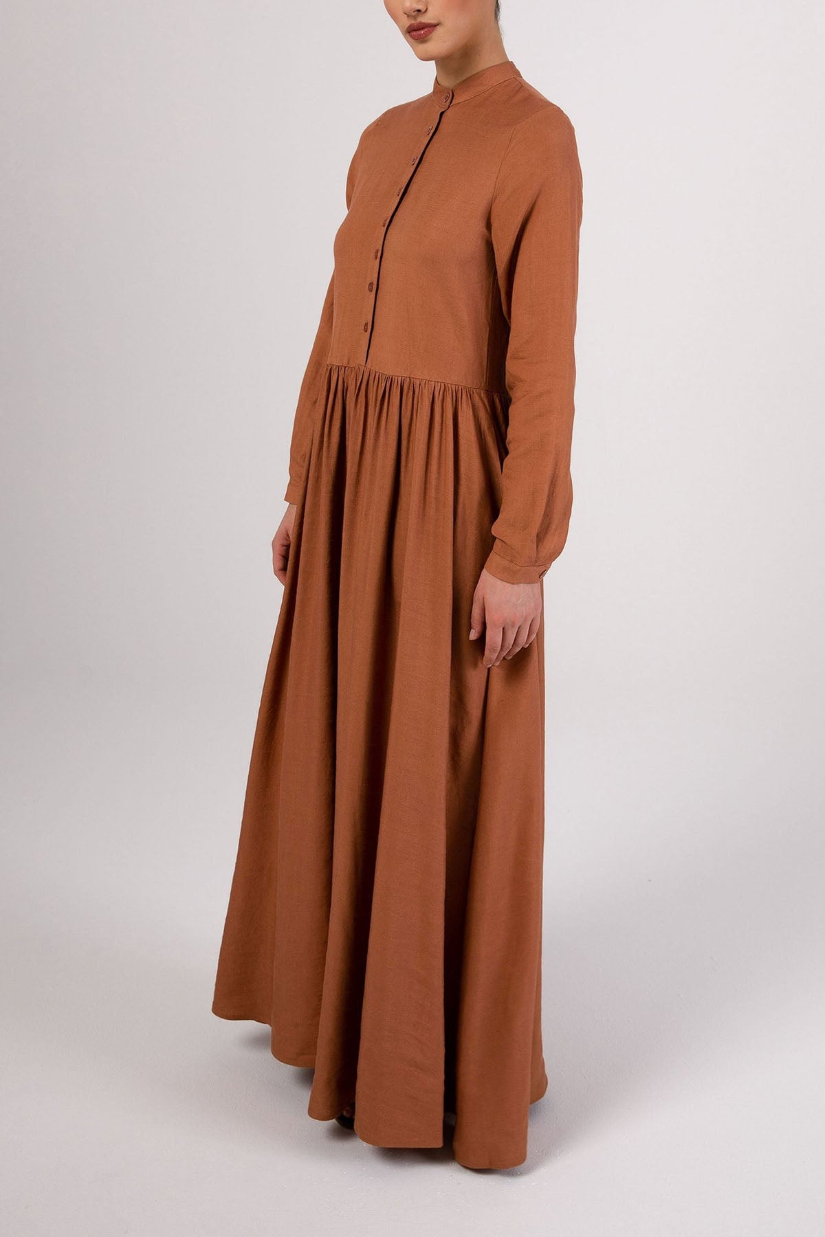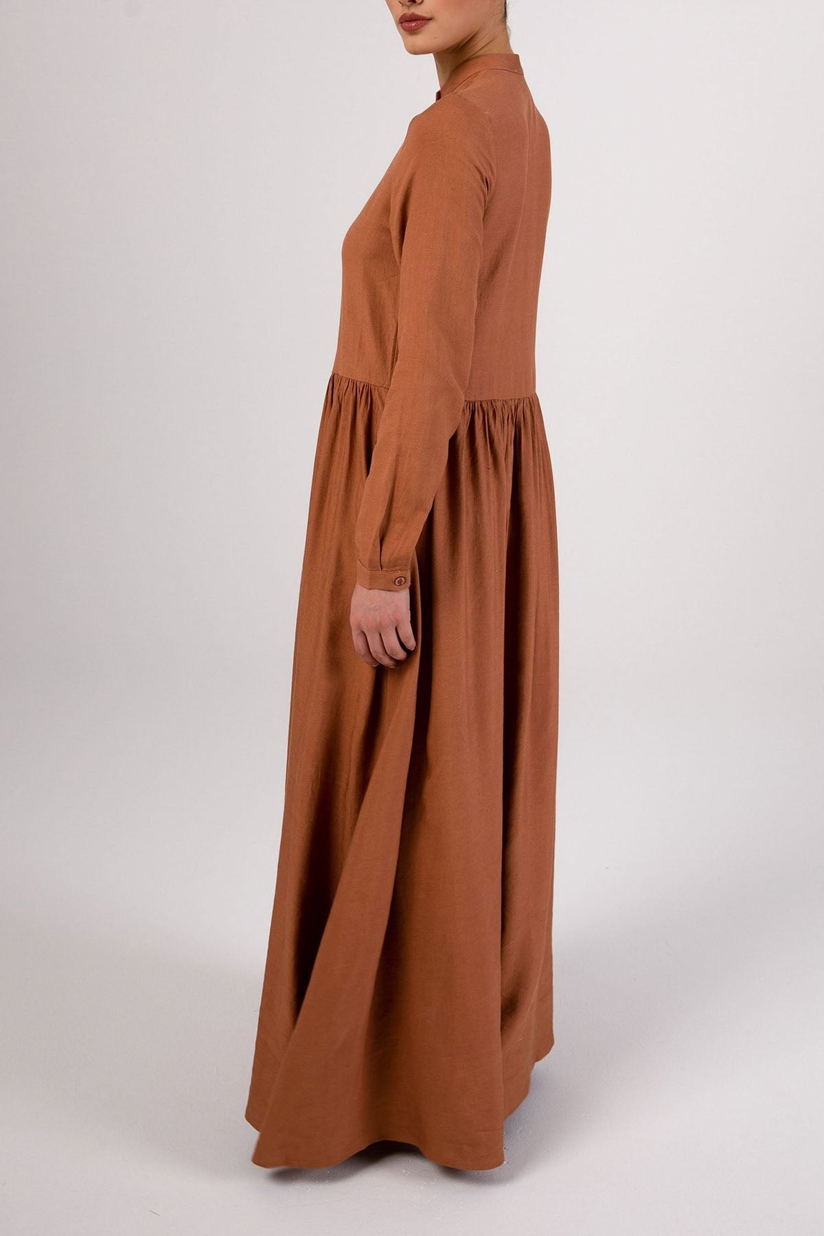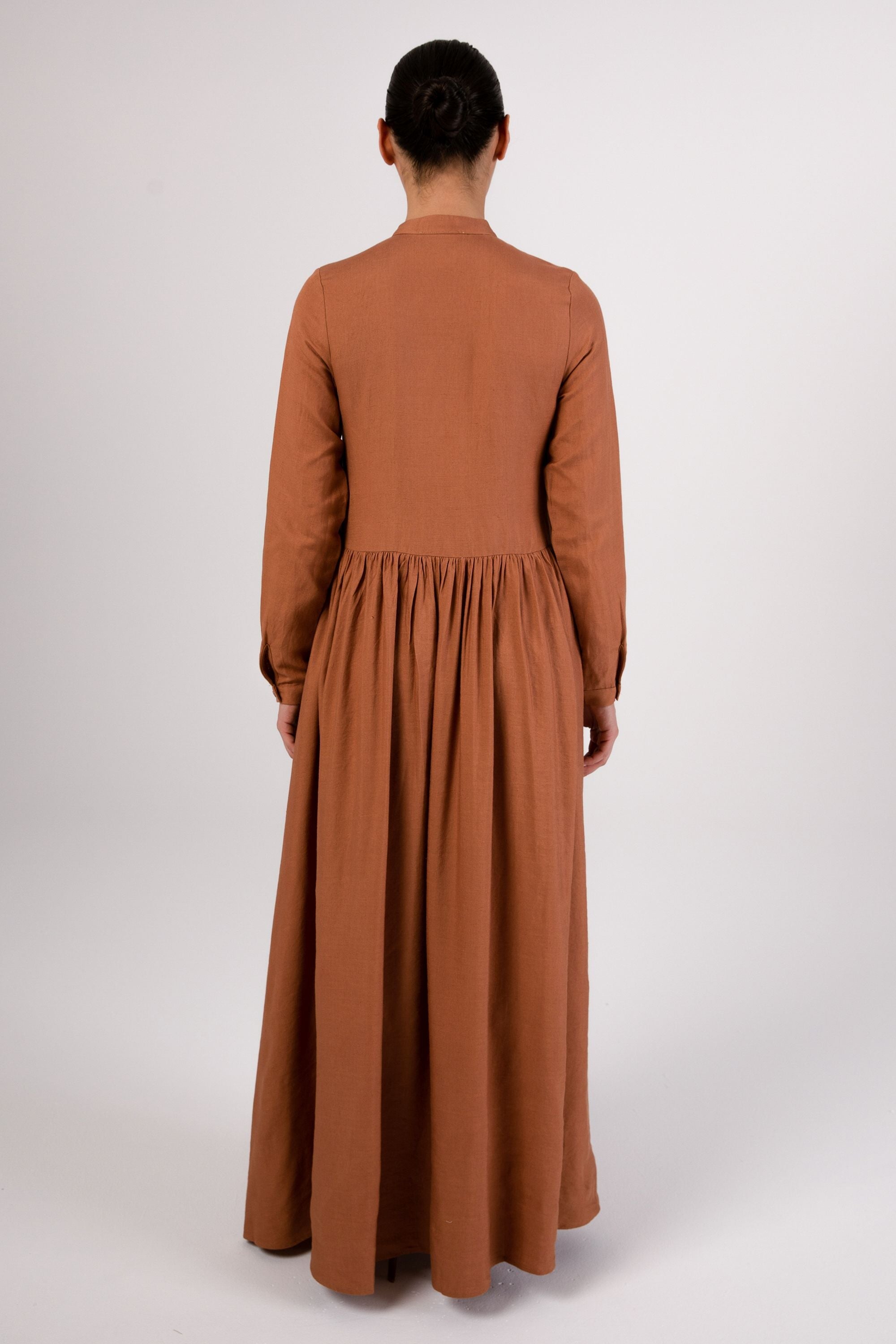 Elham Cotton Linen Maxi Shirt Dress - Caffe