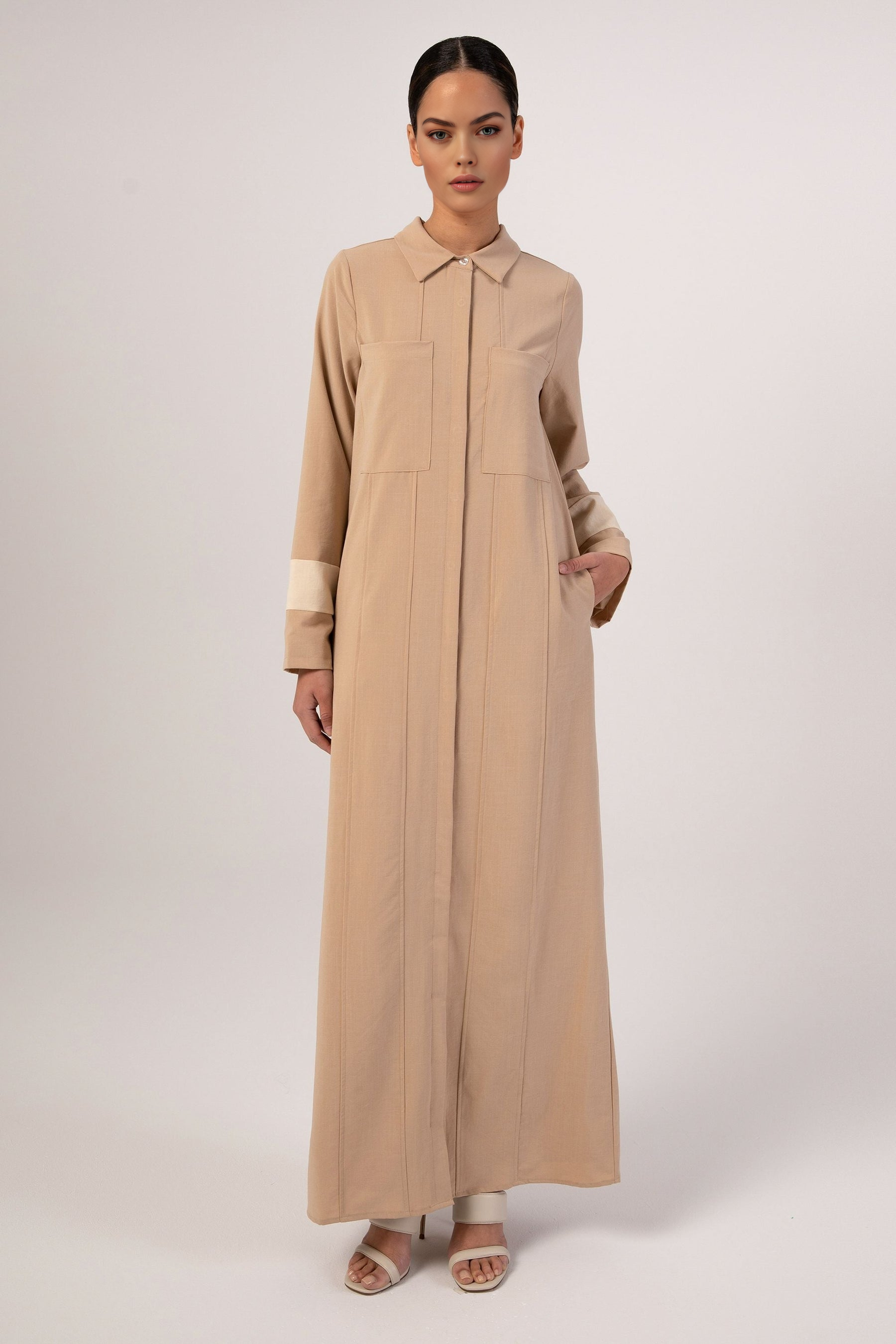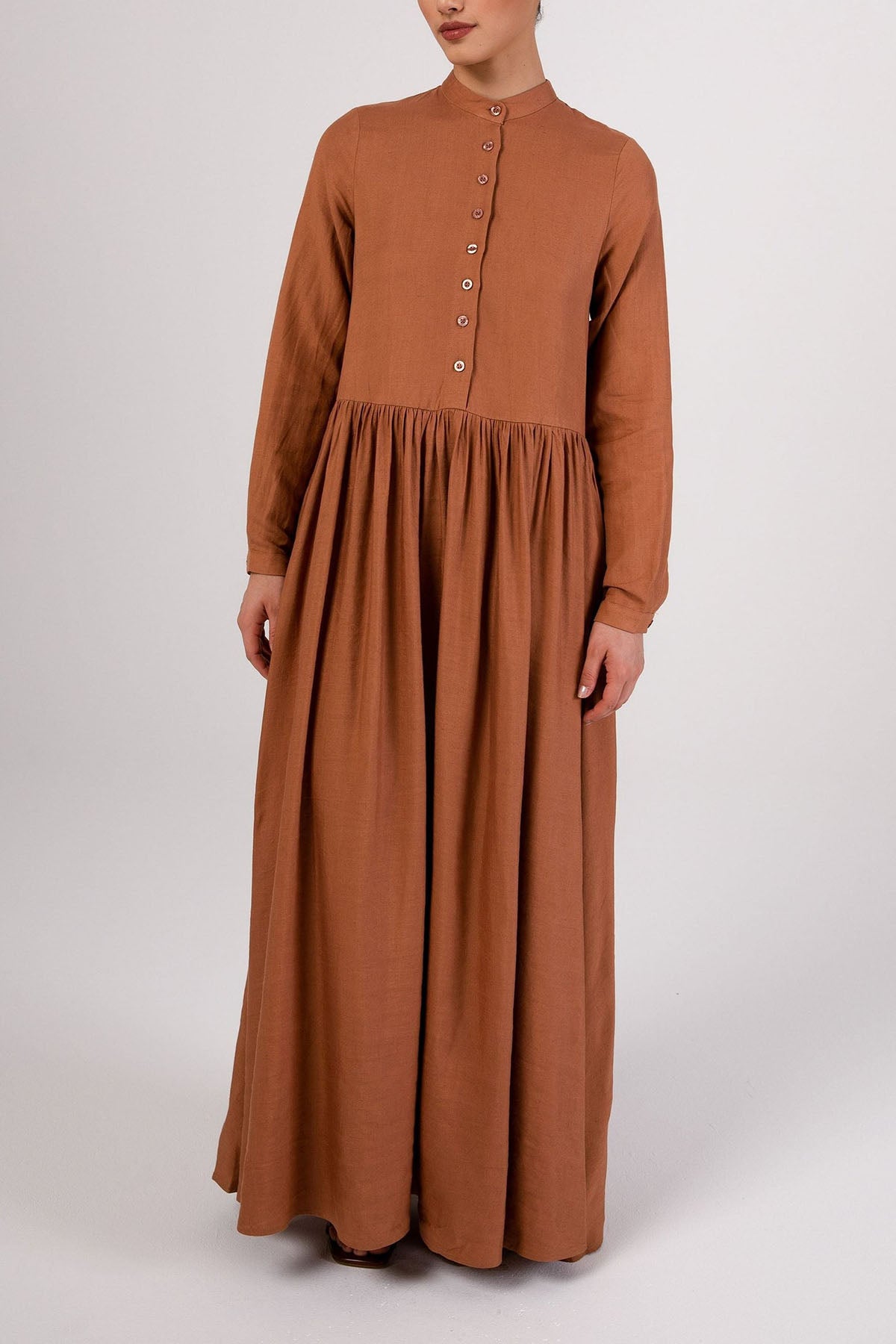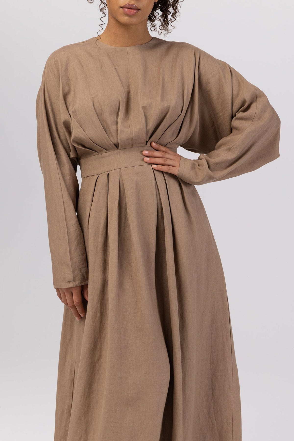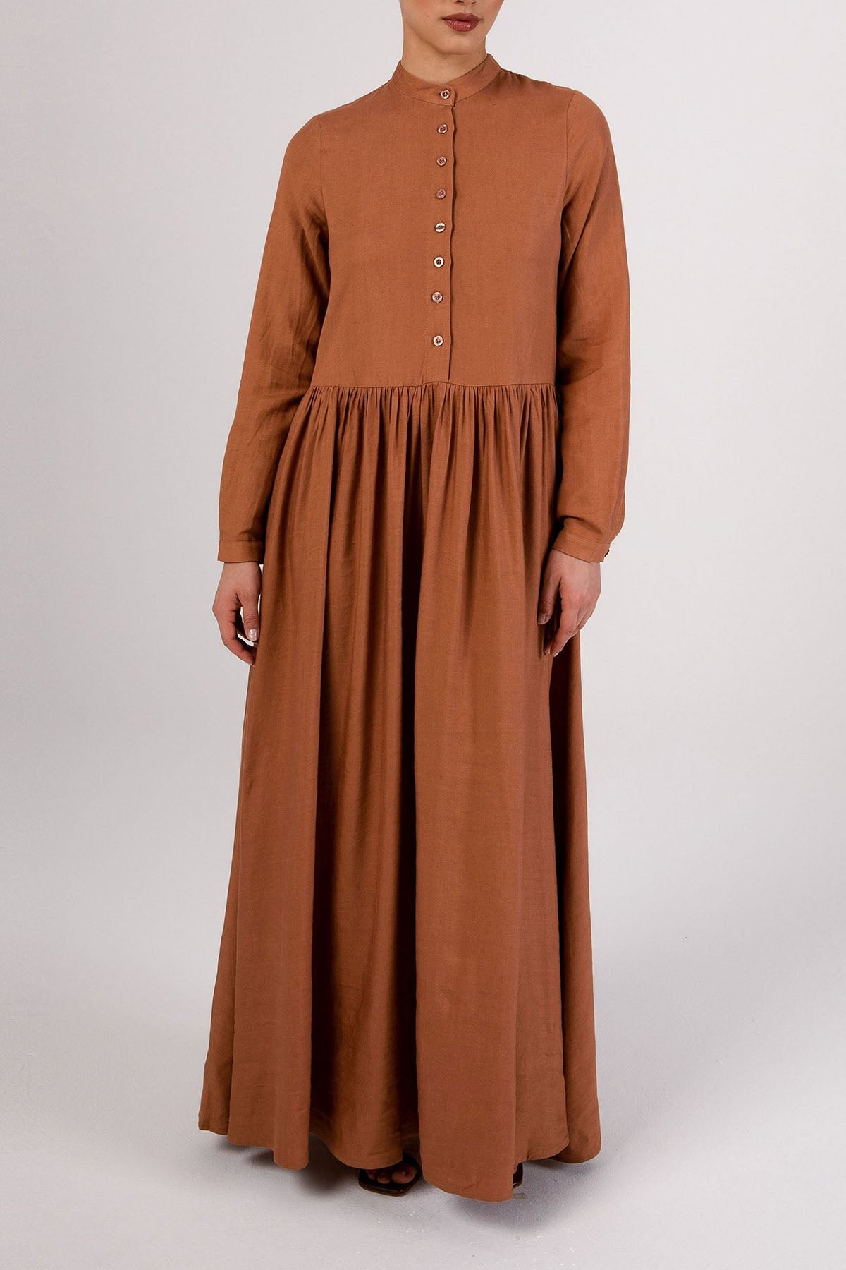 Elham Cotton Linen Maxi Shirt Dress - Caffe