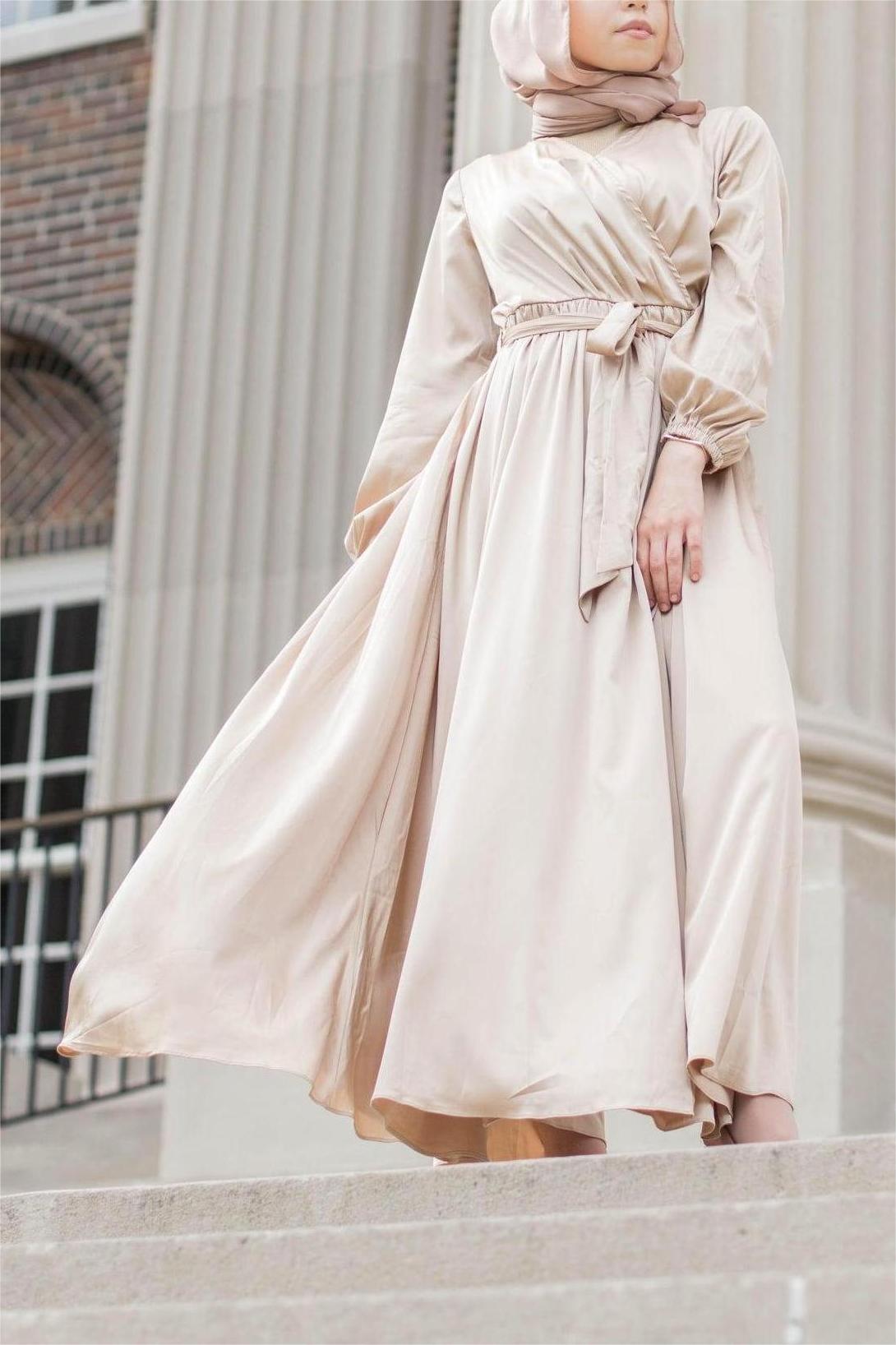Modest Satin Dress - Gold Champagne