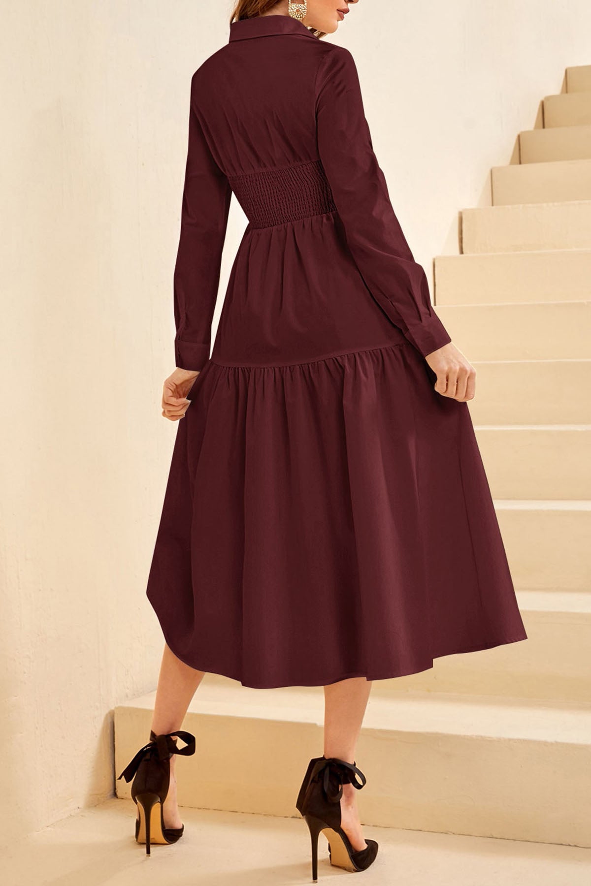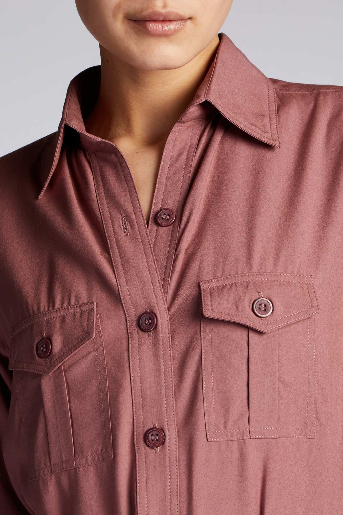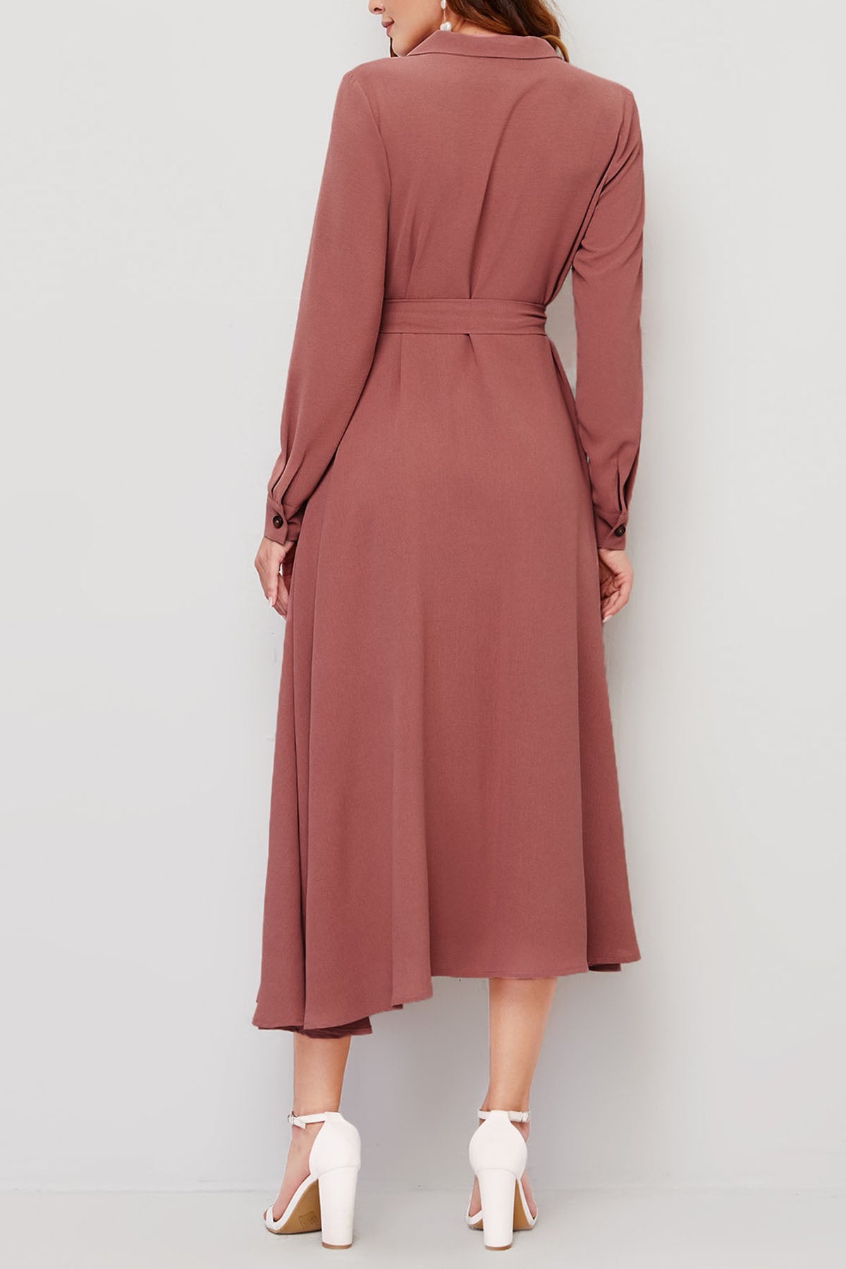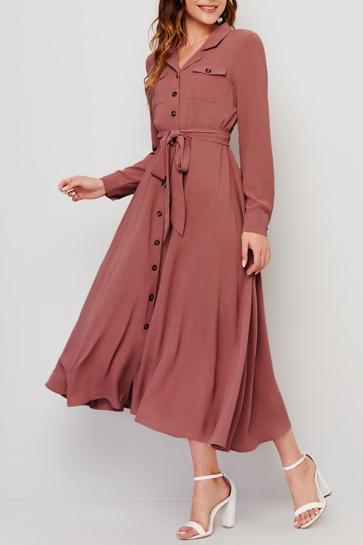 Lapel Collar Flap Pocket Belted Shirt Dress