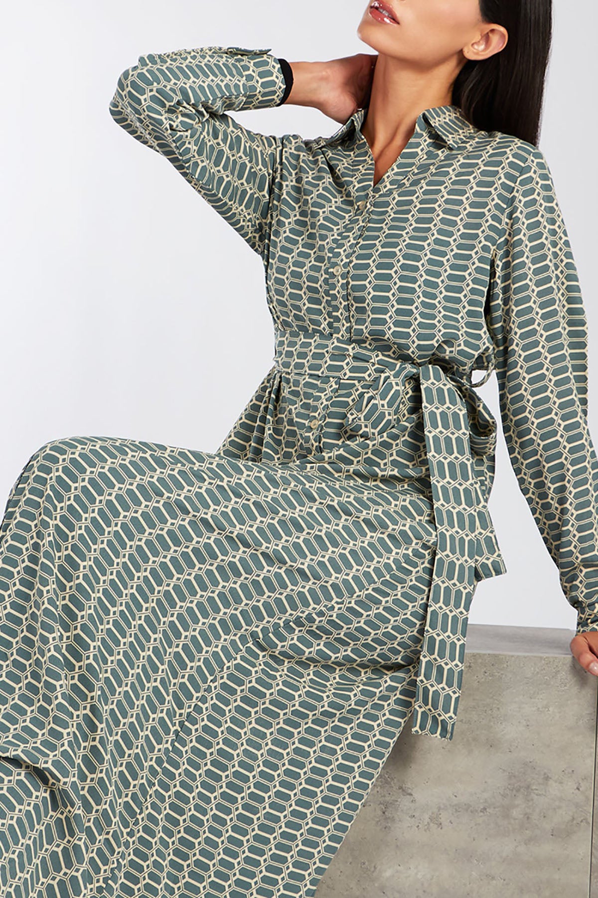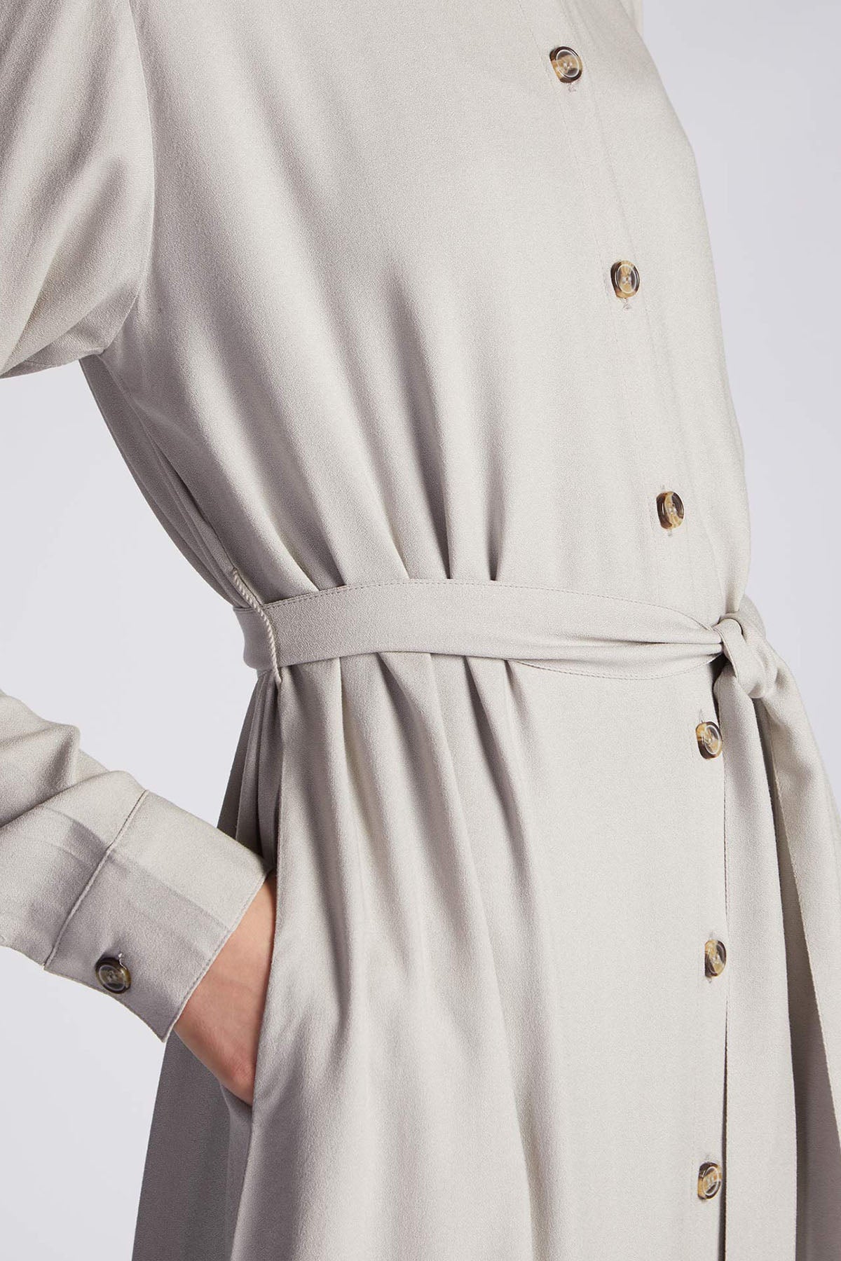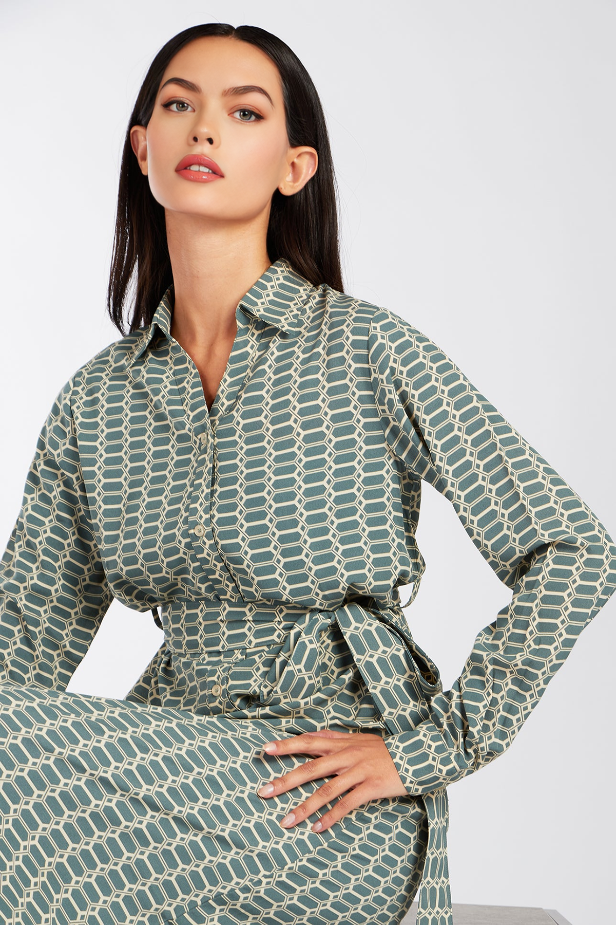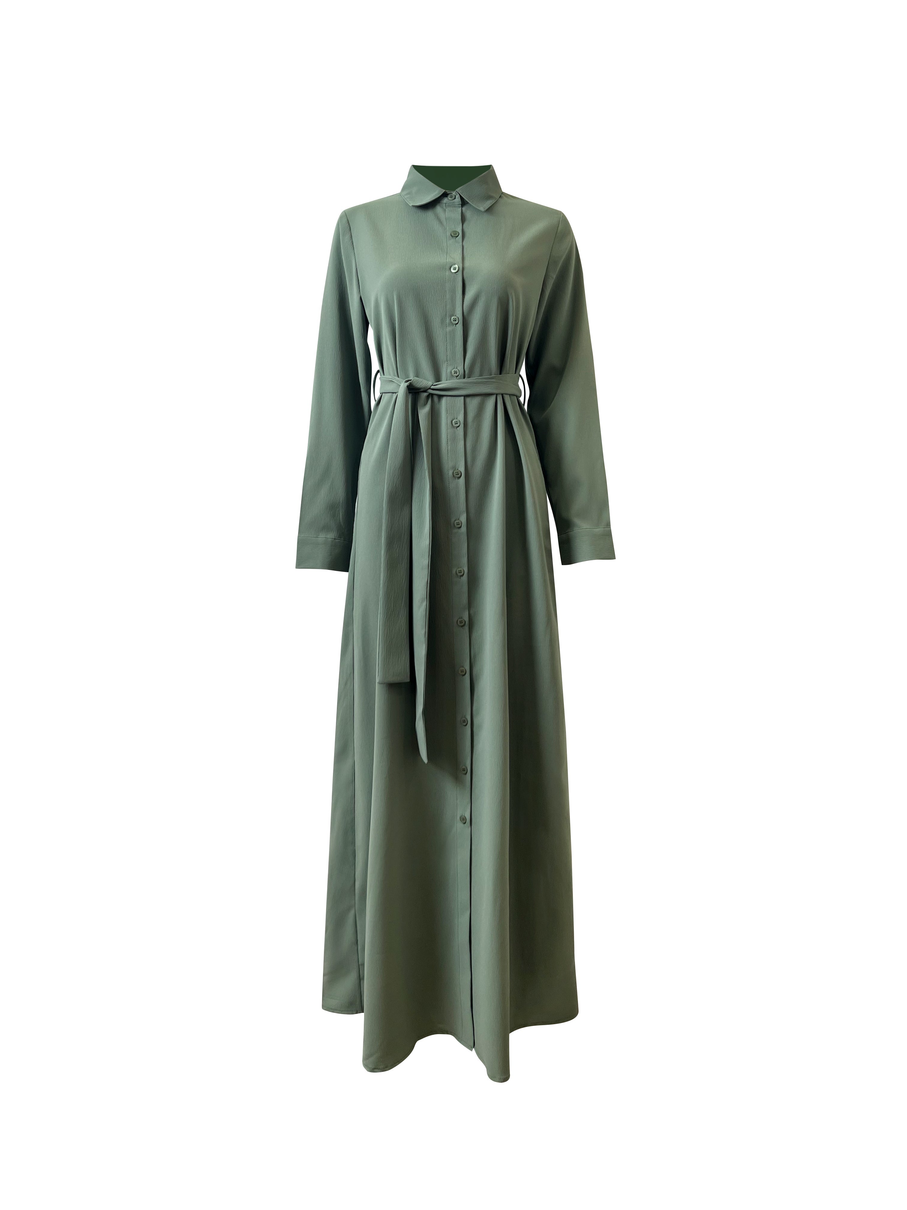 Lapel Collar Flap Pocket Belted Shirt Dress