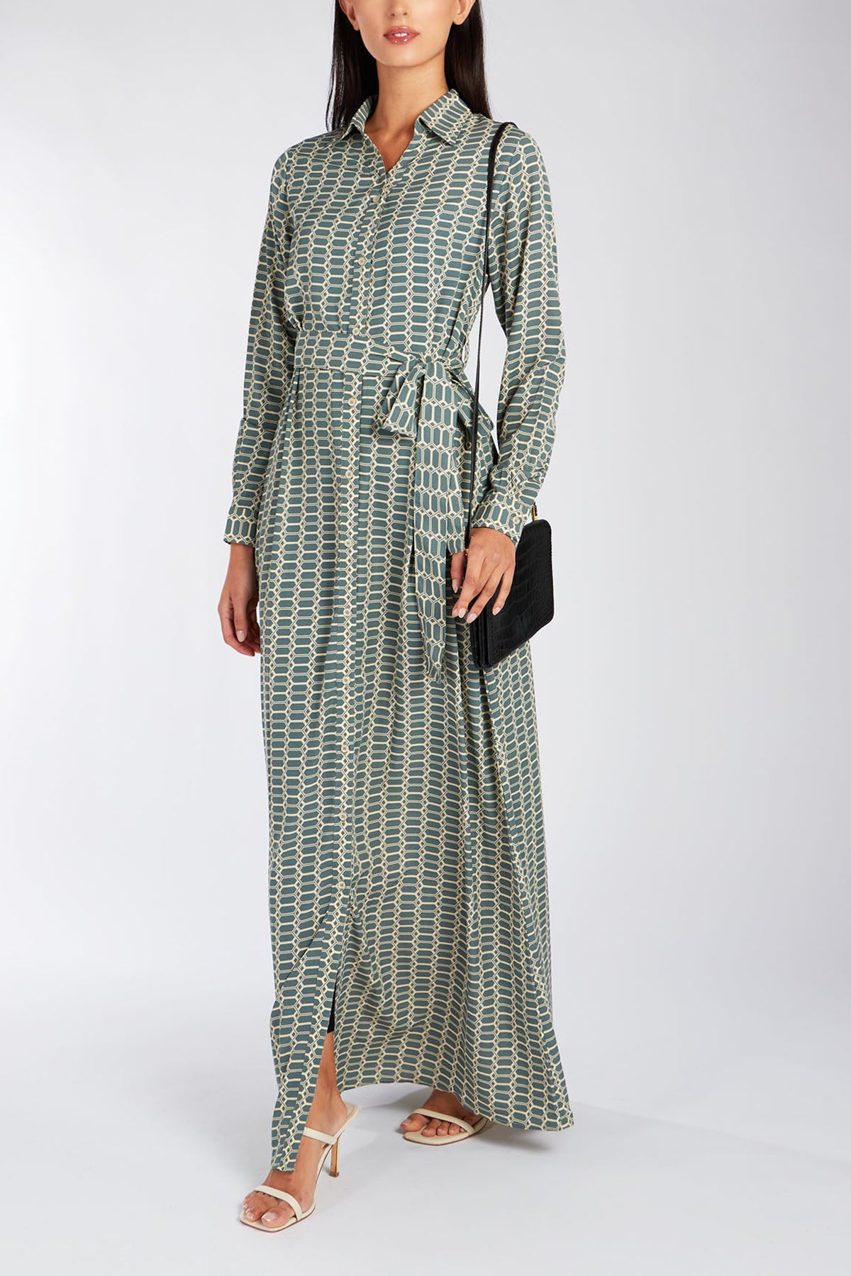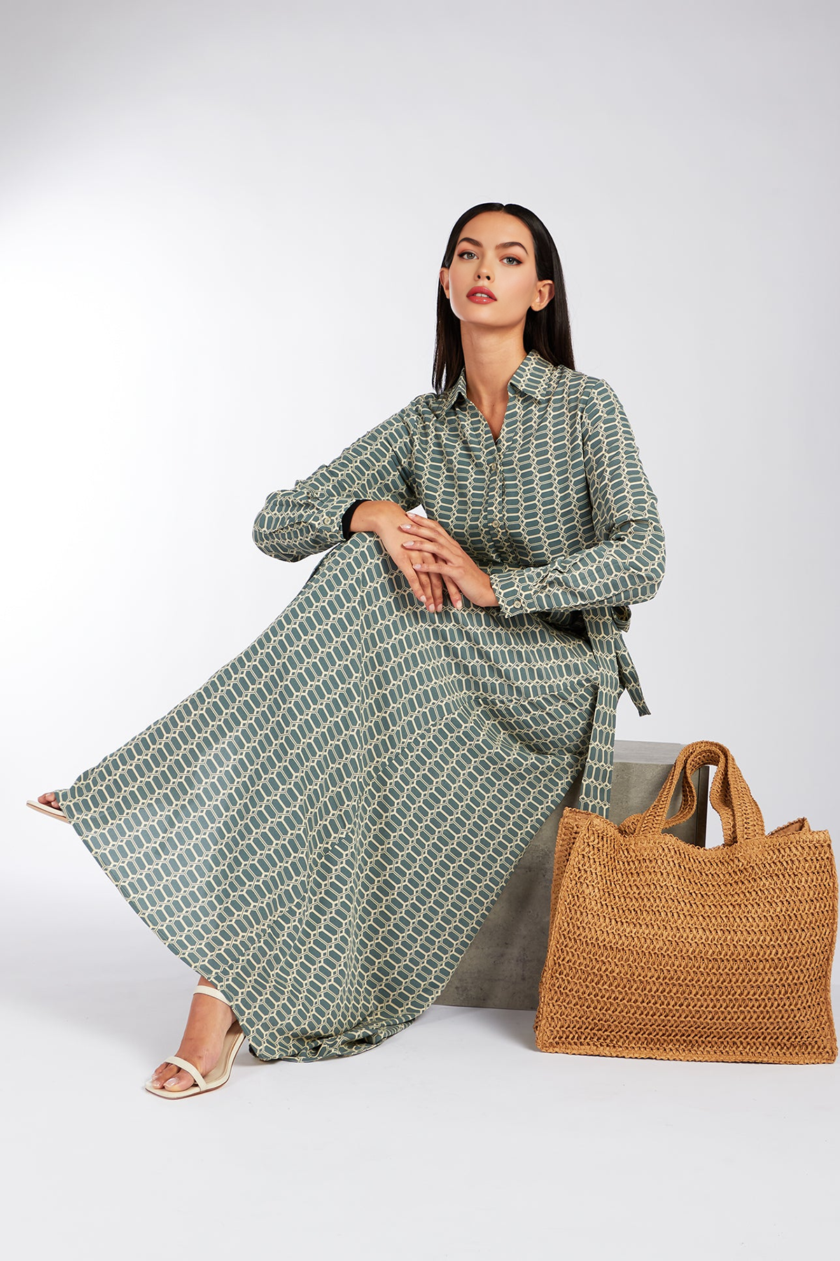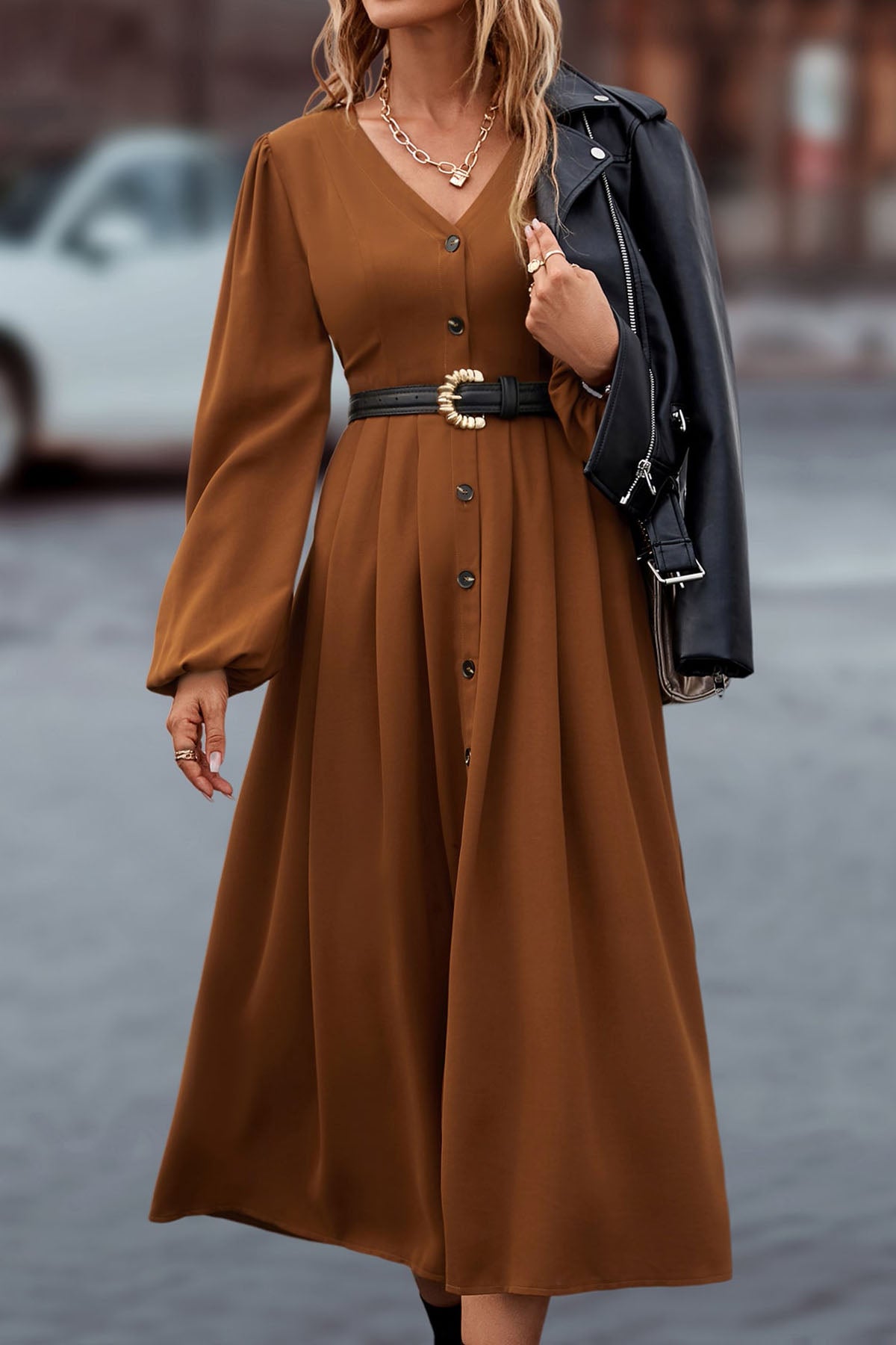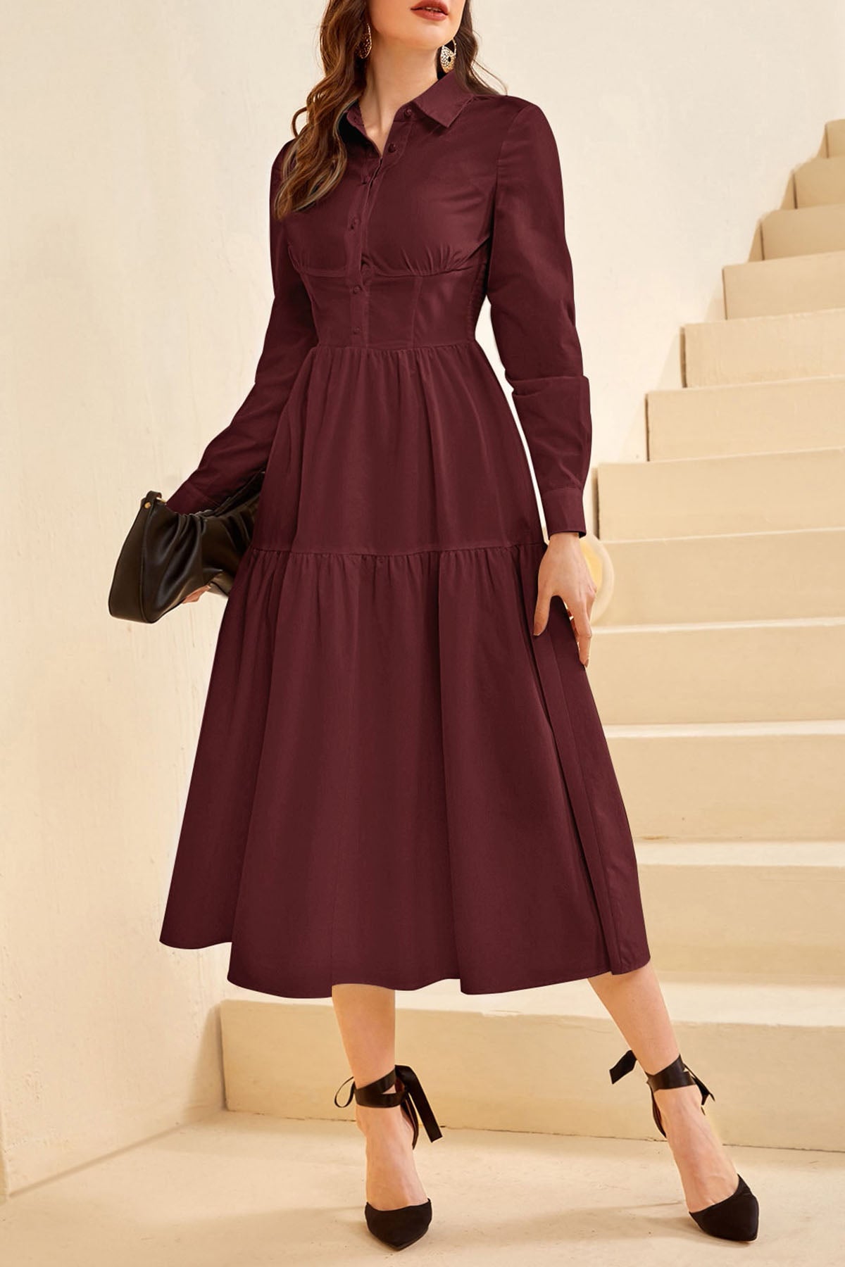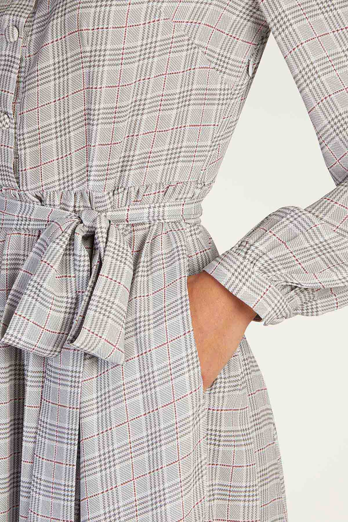 Lapel Collar Flap Pocket Belted Shirt Dress