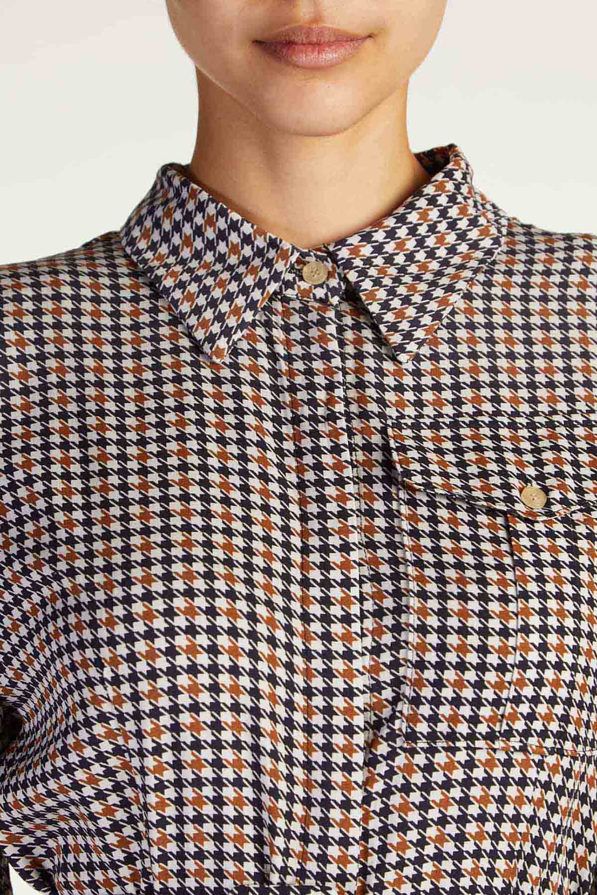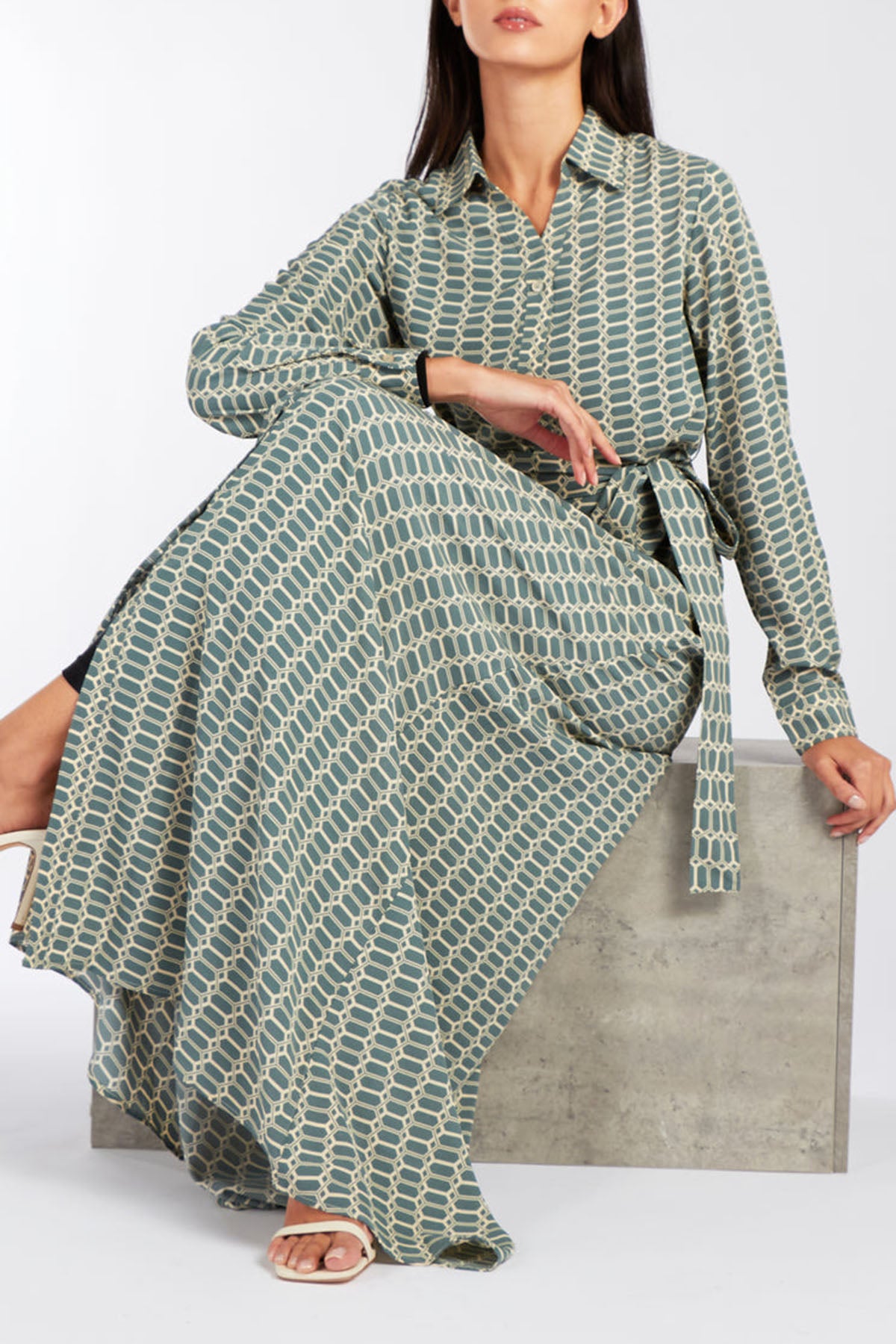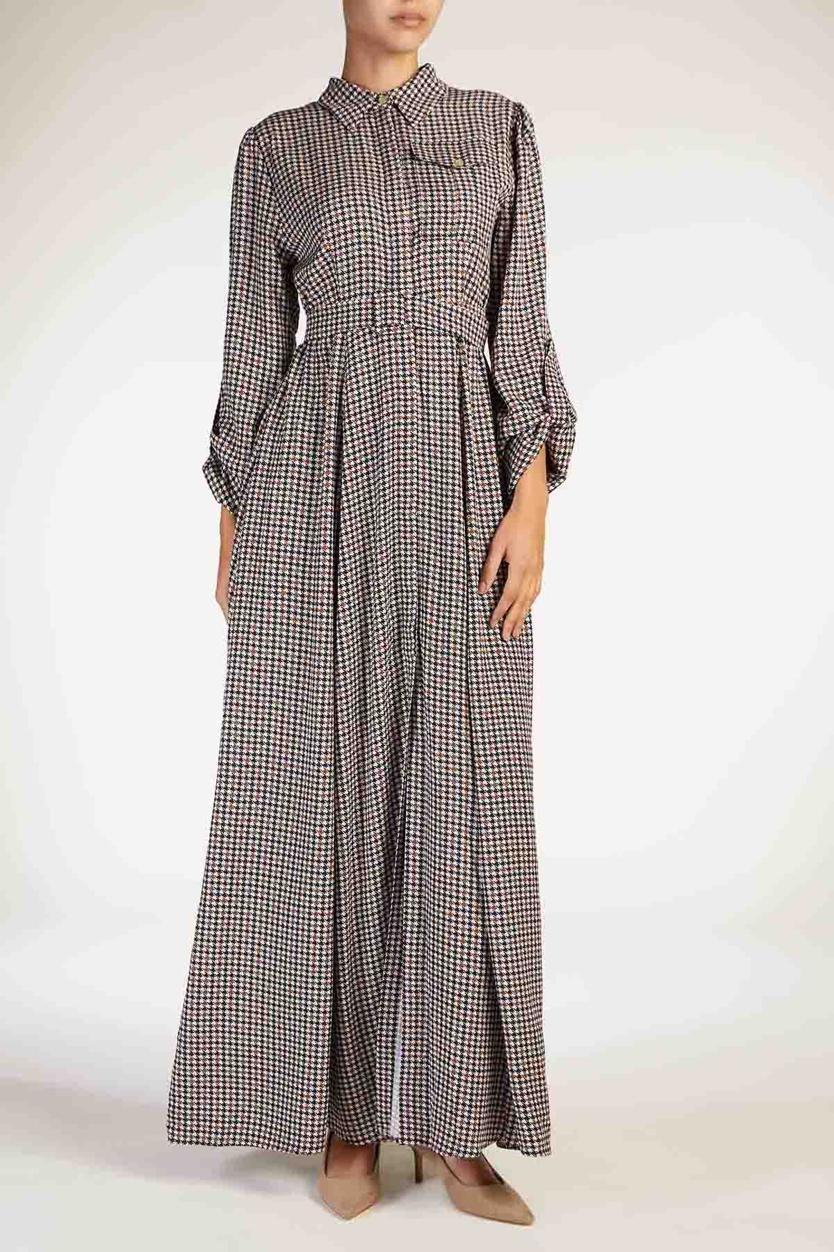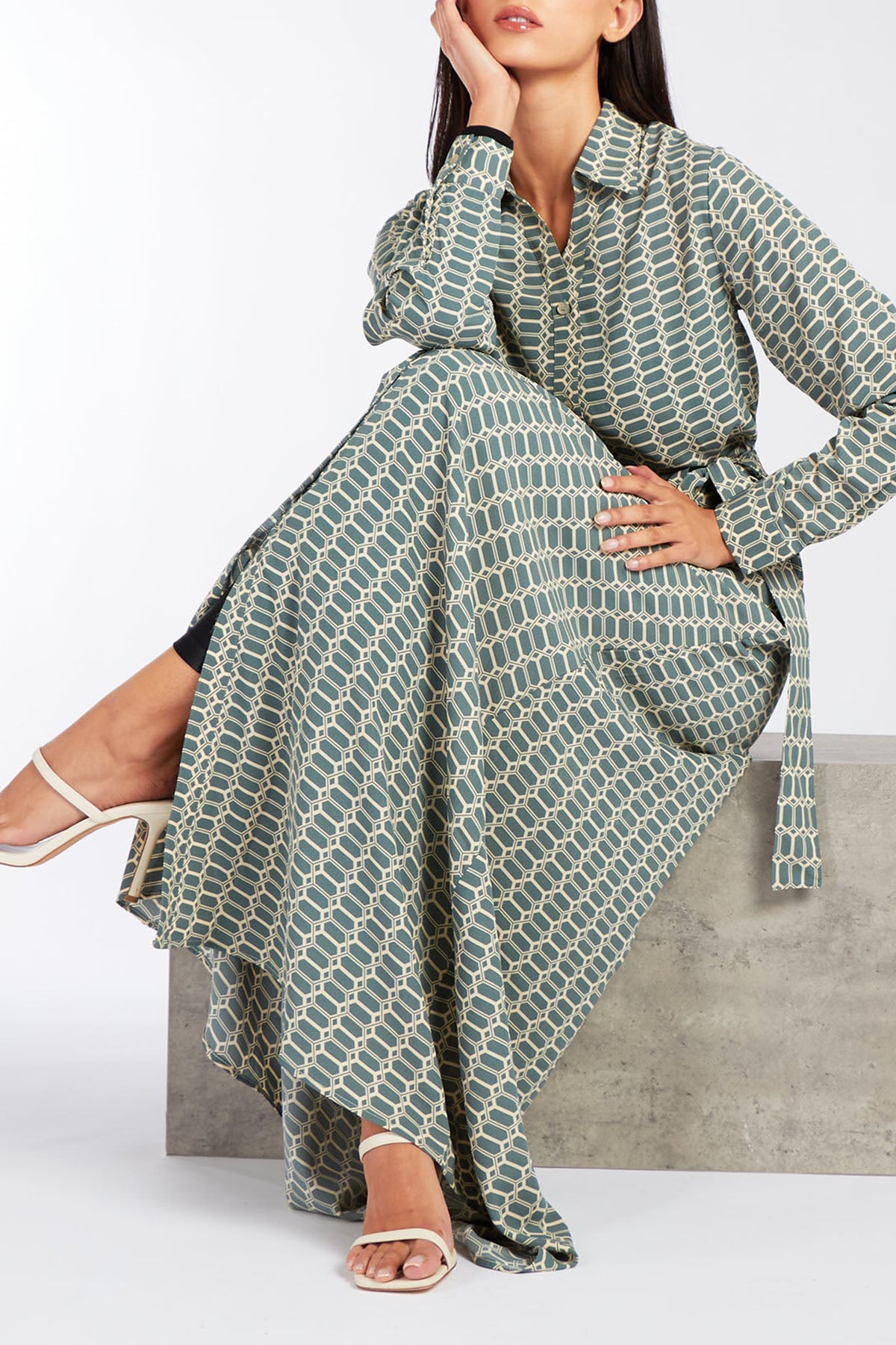 Lapel Collar Flap Pocket Belted Shirt Dress